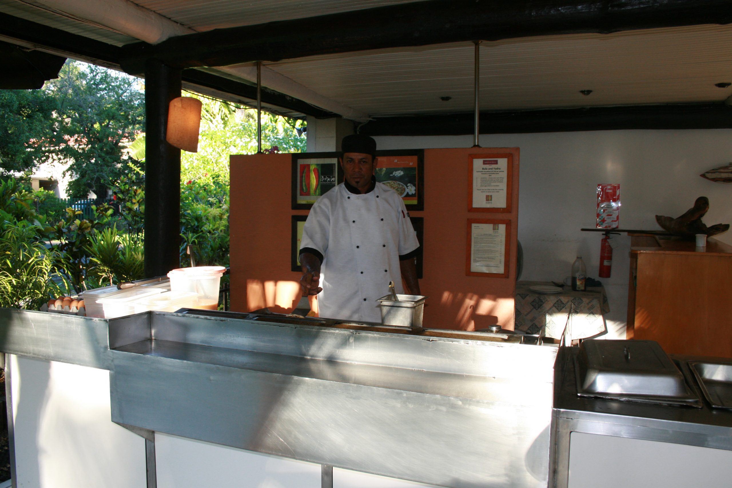 Nun heißt es, die Dame von „Rosies Holyday“zu finden und da war sie auch schon. Sie hängte uns auch eine Muschelkette um den Hals und bat uns, mit ins Büro zu kommen. Ich bat sie, einen Moment zu warten, da wir erst noch Geld brauchen. Das verlief hier noch problemlos. In ihrem Büro erhielten wir sämtliche Voucher für die Hotels und Pick Up’s. Ich bat noch um eine Karte, da bekamen wir nur ein A3 Blatt, darauf war die Ringstrasse eingezeichnet und die Pfeile, wo wir unsere Hotels finden sollten. Es gibt hier auf Fiji nur 2 Hauptstraßen, die Queensroad im Süden, die ist etwas besser und im Norden die Kingsroad. Über deren Zustand komme ich später. Das Auto ein Hunday Tucson, wir sollten den Blanco Scheck unterschreiben, die Kreditkarten wurden noch durch ein Ding gezogen von arno dazumal. Bei Norbert schrillten sämtliche Alarmglocken, er wollte das Auto erst einmal nach sämtliche Schwachstellen untersuchen, aber es gab keine. Man erklärte uns, wenn wir das Auto am 6. Tag wohlbehalten im Mercure Hotel um 1/2 11 wieder abgeben würden, vollgetankt, versteht sich. Ich schaute gleich nach dem Reiseplan, wo wir da herkommen, aus Rakiraki. Da fragte ich, wie weit weg das von hier ist, sie sagte 2 1/2 Stunden sind da einzuplanen. Da sagte ich, da müssen wir ja noch vor dem Aufstehen, aber so waren die Bedingungen. Als wir alles geklärt hatten, verstauten wir unsere Sachen in unser Auto, schon fast ein Van schönes Einsteigen. Wir wunderten uns, daß wir so einen großen, schicken Wagen bekommen hatten, später auf der Rundreise wussten wir warum. Hier wird wieder links gefahren, der Fahrer sitzt rechts. Norbert kam ziemlich schnell zurecht, er kannte das ja schon von Australien. Unterwegs kauften wir das erste bei ein paar Geschäften ein, wie Essen und Trinken. Die Geschäte waren aber gewöhnungsbedürftig, so finster und es gab einen Ladentisch, wie zu DDR Zeiten, man sagt, was man haben möchte und der Verkäufer holt es. Scheinbar gibt es keine Konkurenz, Milch ist Milch und Butter ist Butter. Unser erstes Hotel war das Mercurie in Nadi. Ein sehr schönes Hotel und ein superschönes Zimmer, mit Blick zum Pool und Garten, selbst das ist noch steigerungswürdig. Am nebenan liegenden Supermarkt wollen wir nochmal Geld abheben, da wir das erste Mal nur 200,-F$ geholt hatten und das meiste schon bei dem kleinen Einkauf drauf ging. Also Karte rein, wir wussten ja schon, welche Tasten wir drücken mussten, aber es kam kein Geld. Was nun? Norbert schaute immer wieder in den Schlitz, nichts. Wir waren ratlos. Als wir schon im Auto saßen, meinte Norbert, vielleicht ist es jetzt da, vielleicht arbeiten die Automaten hier auch langsamer. Ich stieg wieder aus. Mein Gedanke war, vielleicht hat der Automat auch kein Geld mehr, hatten wir ja schon mal in Australien erlebt. Doch nun kam eine Frau und holte Geld und sie bekam auch Geld. Ich hätte es ihr am liebsten aus der Hand gerissen und gesagt, dass das unser Geld ist, aber das ging ja auch nicht. Also mussten wir einen anderen ATM finden, am besten bei einer Bank, also fuhren wir in die Stadt und auch dort kam wieder nichts. Wir gingen nun in die Bank rein und fragten einen Angestellten, ob er mir direkt auszahlen kann oder uns helfen kann. Er steckte die Karte rein und wieder nichts, da wussten wir erst mal, daß wir nichts falsch gemacht haben. Er sagte, mit unserer Karte wäre was nicht in Ordnung, wir sollen unsere Bank anrufen. Ich habe den so blöd angeschaut, wenn es nicht zum Heulen gewesen wäre, ich hätte am Liebsten gelacht. Ich sagte ihm: „Wir sind hier in Fiji und unsere Bank ist in Deutschland, da ruft man nicht einfach mal an und es gibt 11 Stunden Zeitverschiebung. Nun überlegten wir wieder, wie wir an Geld kommen. Langsam nervt es, da kam ich auf die Idee zurück zum Flughafen zu fahren, denn dort hatten wir ja am Morgen Glück und so machten wir es auch, zurück zum Flughafen, Karte rein, doch von Geld weit und breit keine Spur. Nun nahm ich Norbert seine Karte und wir bekommen Geld, da waren wir aber froh. Das musste nun warten, bis wir wieder zu Hause sind, ich war über die DKB wütend. Nun fuhren wir wieder in die Stadt, schlenderten ein wenig, besuchten den Indischen Tempel, da gab es aber nicht viel zu sehen, als Ausländer konnten wir nicht rein, der war nur für die Hindus. In einem asiatischen Restaurant aßen wir noch eine Kleinigkeit für ganz wenig Geld (Ca. 3€) für beide. In unserem Hotel ging ich noch eine Runde schwimmen und wir gingen zeitig ins Bett, der Jetlag macht uns noch sehr zu dchaffen.