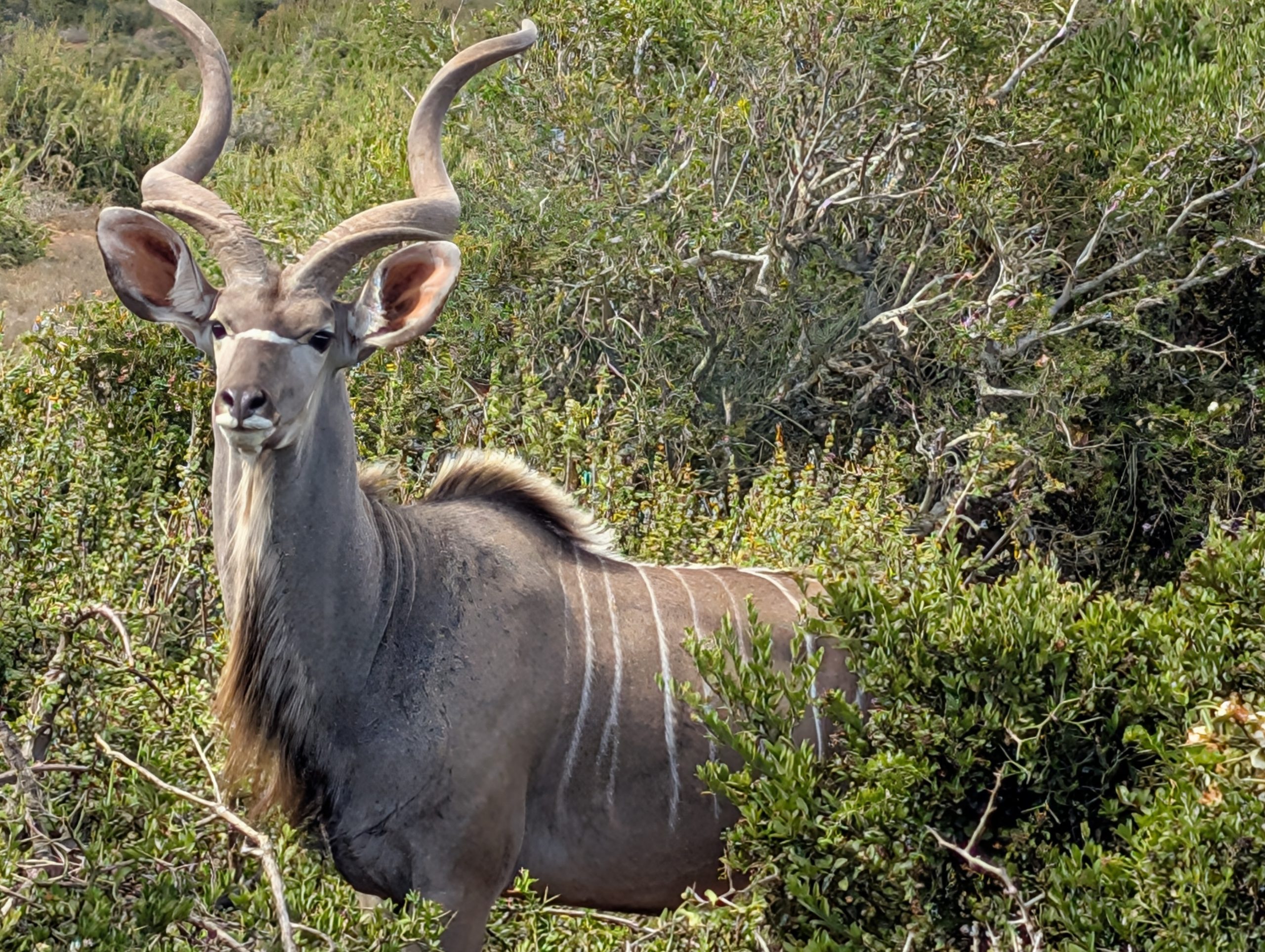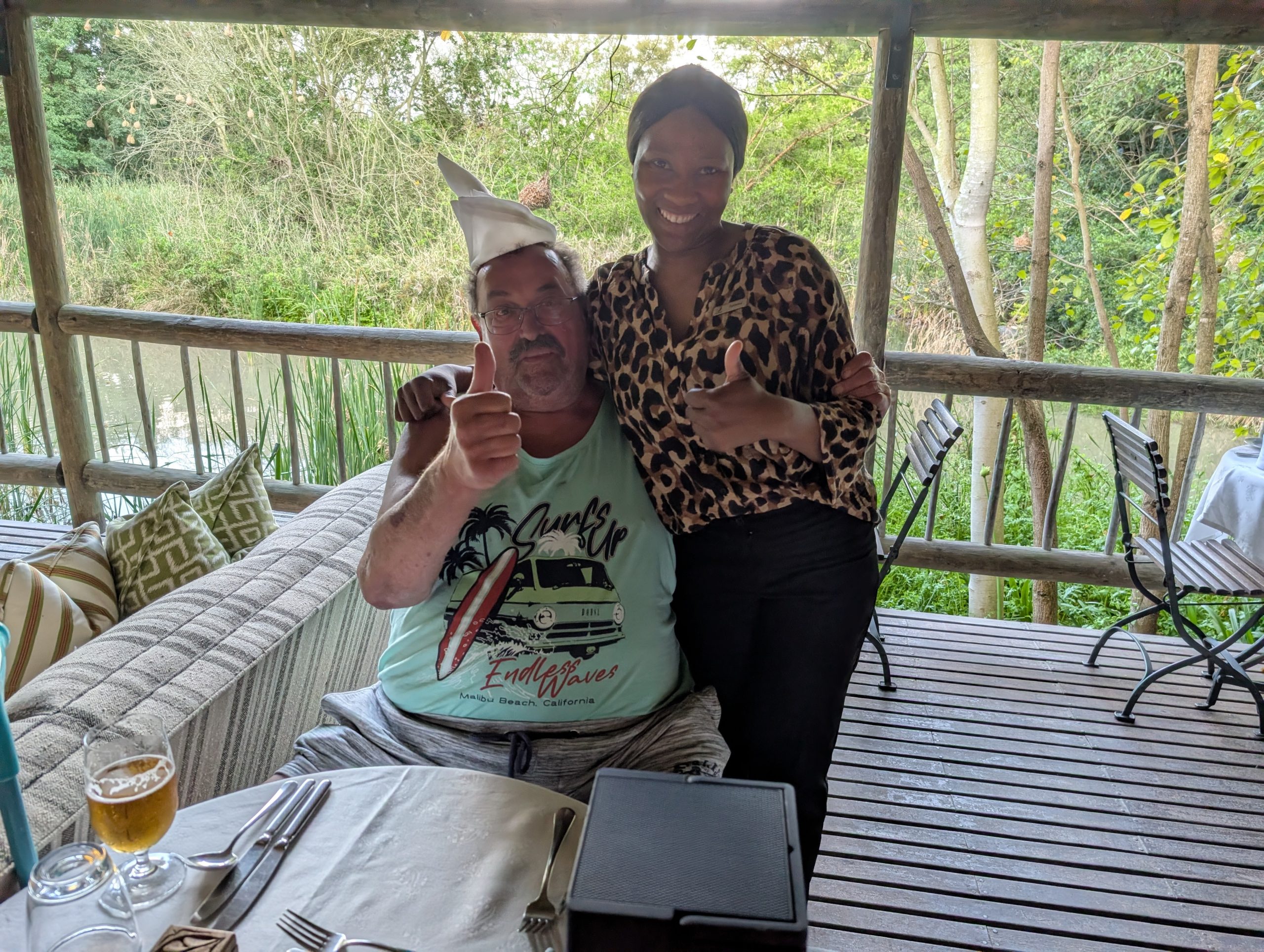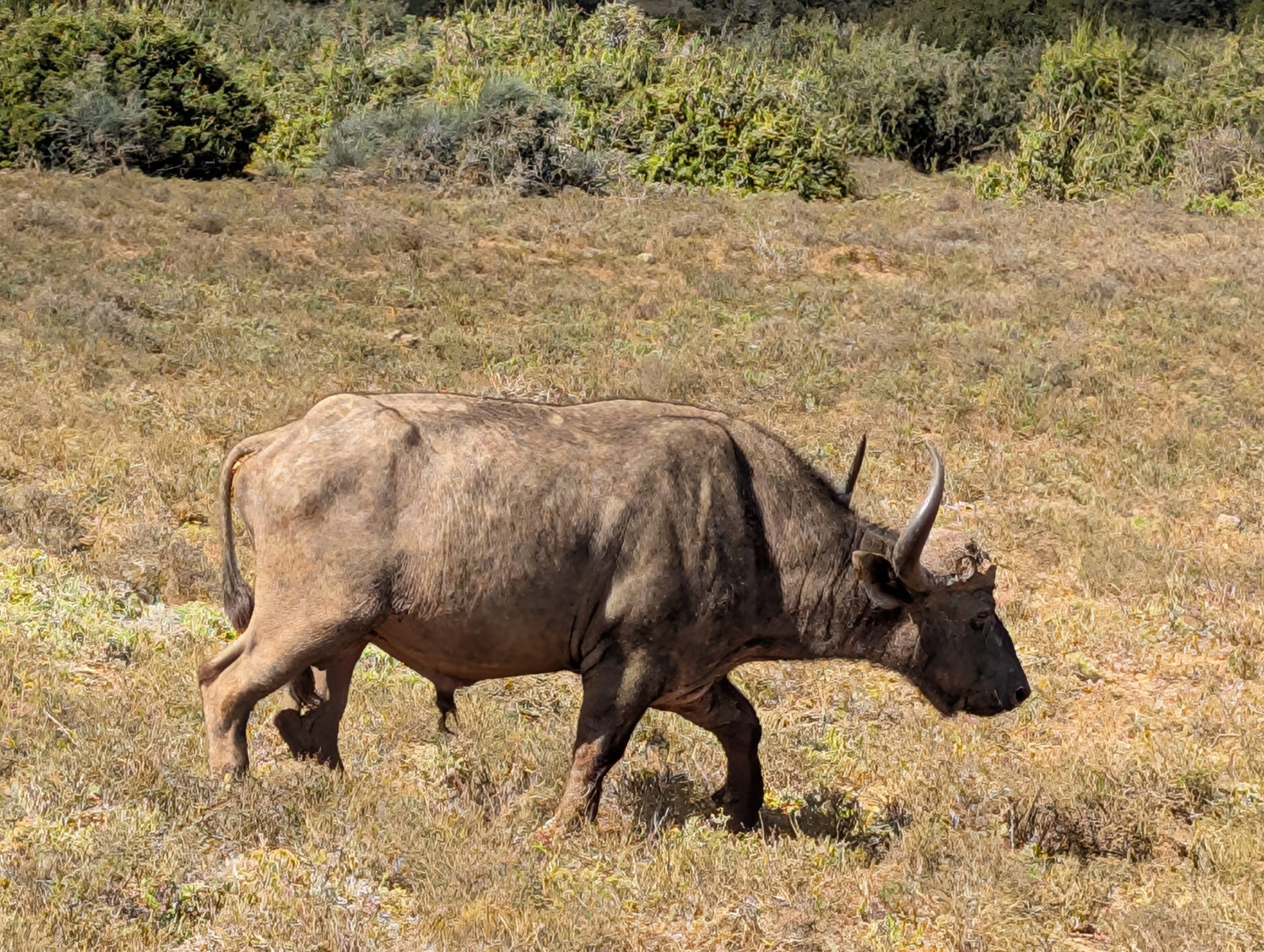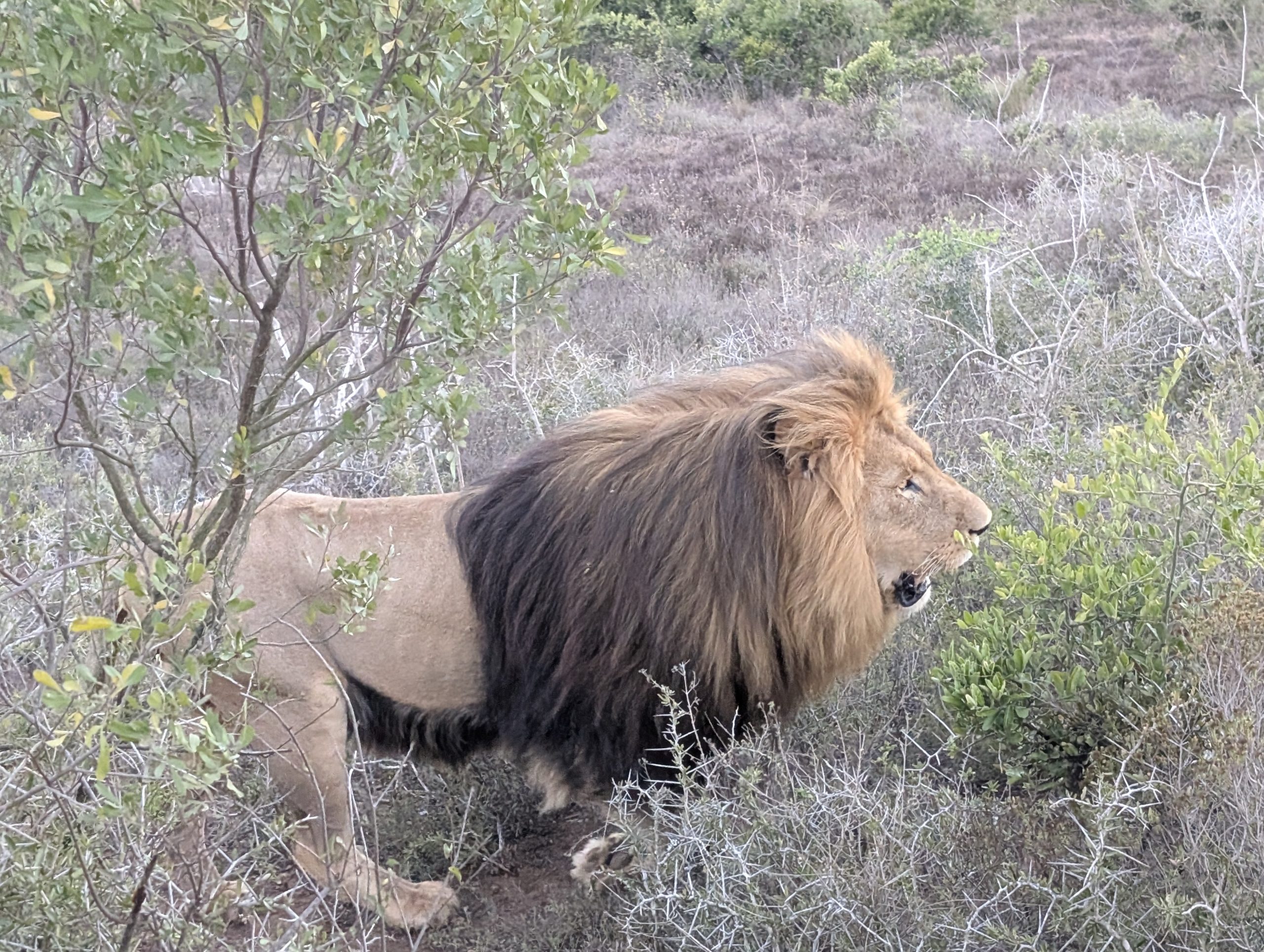 Die Anfahrt vom Tsitsikamma NP hierher zum Addo NP war mit knapp 4 Stunden ziemlich weit. Von Melanie bekamen wir die Info, uns nicht auf Google Maps zu verlassen, sondern aus Sicherheitsgründen die N2 nach Port Elizabeth zu nehmen. Hier kommt man mit dem Flugzeug an, wenn man Südafrika in einer Reise das alles vereint. Die N2, die weiter nach Durban geht, verlassen wir und fahren weiter auf der N 10 nach Paterson. Hier wird es Bevölkerungsärmer und viel Landwirtschaft. Am späten Nachmittag erreichen wir unsere Lodge. Die Zufahrt will Norbert nicht glauben, das ist bei uns eine Fahrt ins Maisfeld. Überall sind Haine mit Zitronen 🍋 und Limetten 🍋🟩. Die Lodge ist der Wahnsinn. Die Dame hat uns soviel gezeigt, der Spa Bereich, das Restaurant mit Fitnessraum, an der Rezeption ist ein Pool und dann kommt unser Zimmer. Ein großer Aufenthaltsraum, ein großes Schlafzimmer mit Moskitonetz, ein noch größeres Bad mit Riesendusche, Außendusche, eine schöne Terrasse mit Liegestühle und eigenen Pool. Das Abendessen ist der Wahnsinn, ein 3 Gänge Menü. Tomatensuppe, Lammkeule und Eis. Mir reißt es den Bauch fast ab, das bin ich nicht mehr gewöhnt. Am Tag 2 ist Treffen an der Rezeption. Dort kann man Kaffee trinken, Kekse essen oder Muffins. Pünktlich ½8 geht es los mit einem frisch gewaschenen Jeep. Auch die anderen Autos sind gewaschen worden. Unser Guide heißt Goldwin. Wir fahren zum Addo NP. Viele Tiere haben wir gesehen, von Buffalo, Antilope, Zebras, Schildkröte 🐢, Tausendfüßler, Bamboos (Paviane) Vögel und sehr viele Elefanten. Gegen 10 Uhr führen wir zum Picnic Areal. Dort gab es Kaffee, Saft, Joghurt, Müsli, Obst und Rührei eingepackt. Gegen Mittag waren wir wieder in der lodge. Dort wartete ein Hydro Aroma Therapie Bad auf uns. Da man nicht rechtzeitig beginnen könnte, gab es als Entschädigung 1 Flasche Champagner. Die Wanne war ein Whirlpool, überall Rosenblätter verstreut und Kerzenlicht. Total romantisch. Danach hatten wir Lunchtime, eine hübsch verpackte Semmel mit Salat. Abend gab es wieder das 3 Gänge Menü. Mir ist das eigentlich alles zuviel, aber will man das nicht, fasst es der Koch auf, als würde es nicht schmecken, aber das ist so was von lecker. Heute gibt es 🍄🟫 Suppe, Kingklipfish, sehr lecker und caramelisiertes Eis. Ich trinke einen Sauvignon Blanc aus Stellenbosch und Norbert einen Bacardi Rum.