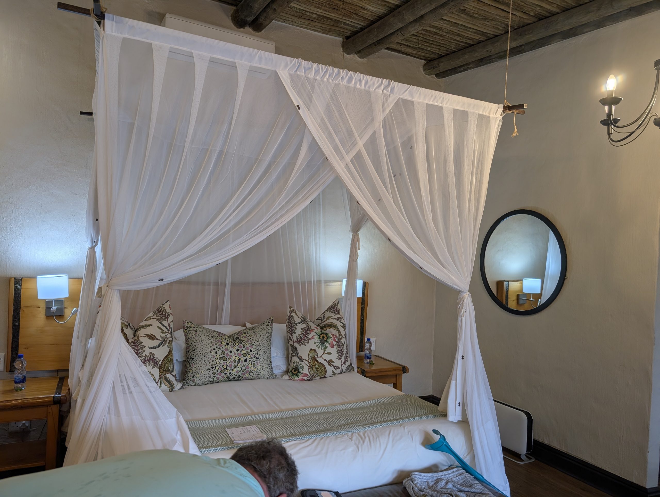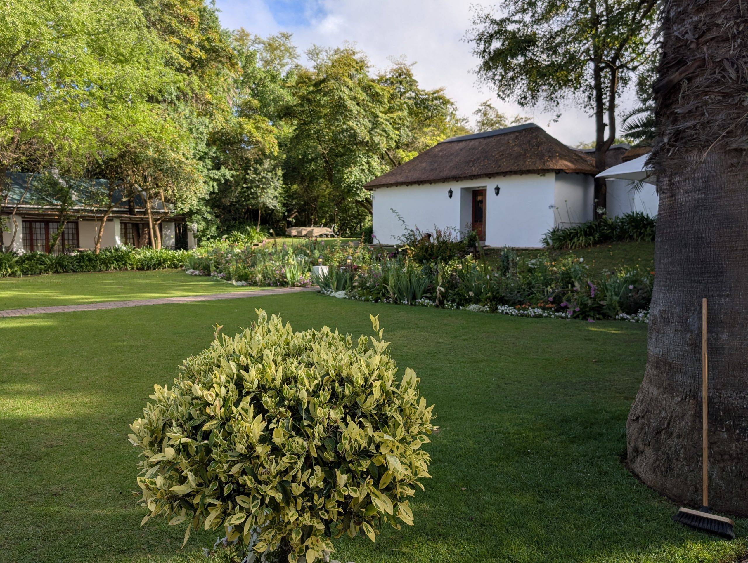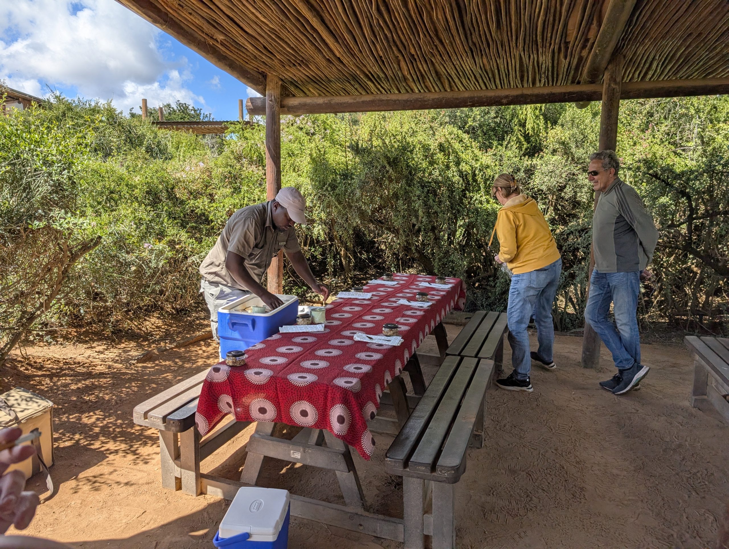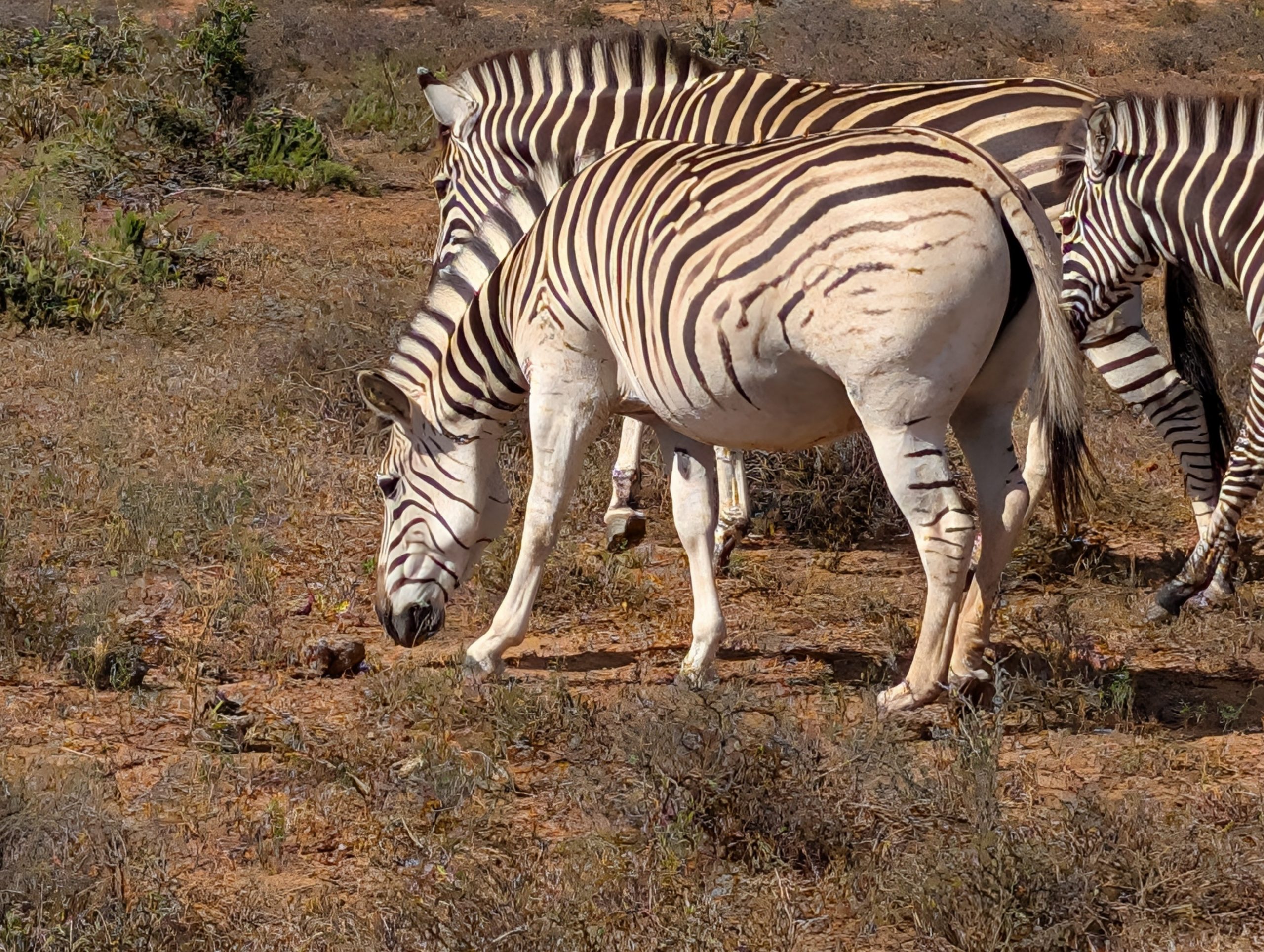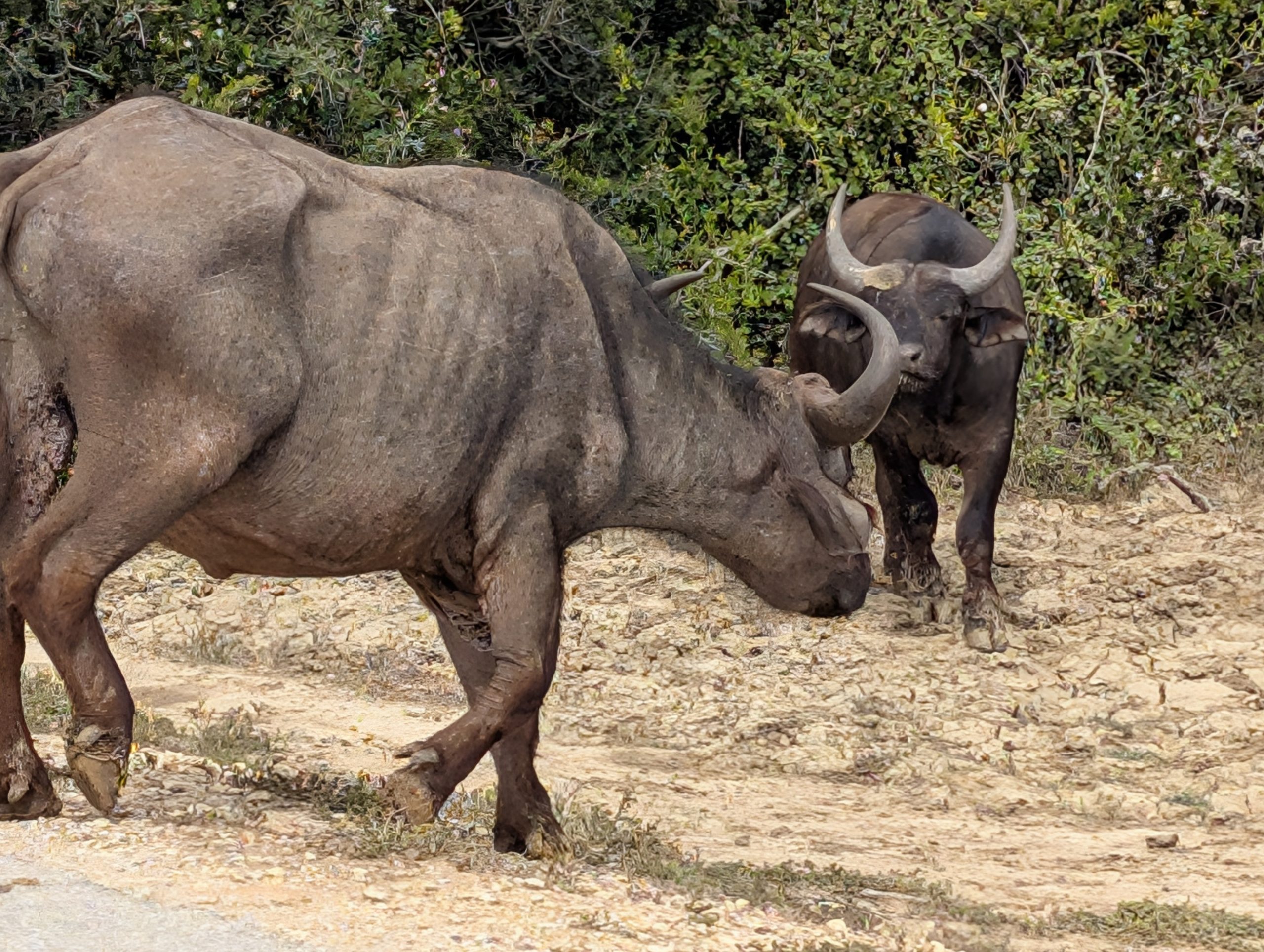 Die Anfahrt vom Tsitsikamma NP hierher zum Addo NP war mit knapp 4 Stunden ziemlich weit. Von Melanie bekamen wir die Info, uns nicht auf Google Maps zu verlassen, sondern aus Sicherheitsgründen die N2 nach Port Elizabeth zu nehmen. Hier kommt man mit dem Flugzeug an, wenn man Südafrika in einer Reise das alles vereint. Die N2, die weiter nach Durban geht, verlassen wir und fahren weiter auf der N 10 nach Paterson. Hier wird es Bevölkerungsärmer und viel Landwirtschaft. Am späten Nachmittag erreichen wir unsere Lodge. Die Zufahrt will Norbert nicht glauben, das ist bei uns eine Fahrt ins Maisfeld. Überall sind Haine mit Zitronen 🍋 und Limetten 🍋🟩. Die Lodge ist der Wahnsinn. Die Dame hat uns soviel gezeigt, der Spa Bereich, das Restaurant mit Fitnessraum, an der Rezeption ist ein Pool und dann kommt unser Zimmer. Ein großer Aufenthaltsraum, ein großes Schlafzimmer mit Moskitonetz, ein noch größeres Bad mit Riesendusche, Außendusche, eine schöne Terrasse mit Liegestühle und eigenen Pool. Das Abendessen ist der Wahnsinn, ein 3 Gänge Menü. Tomatensuppe, Lammkeule und Eis. Mir reißt es den Bauch fast ab, das bin ich nicht mehr gewöhnt. Am Tag 2 ist Treffen an der Rezeption. Dort kann man Kaffee trinken, Kekse essen oder Muffins. Pünktlich ½8 geht es los mit einem frisch gewaschenen Jeep. Auch die anderen Autos sind gewaschen worden. Unser Guide heißt Goldwin. Wir fahren zum Addo NP. Viele Tiere haben wir gesehen, von Buffalo, Antilope, Zebras, Schildkröte 🐢, Tausendfüßler, Bamboos (Paviane) Vögel und sehr viele Elefanten. Gegen 10 Uhr führen wir zum Picnic Areal. Dort gab es Kaffee, Saft, Joghurt, Müsli, Obst und Rührei eingepackt. Gegen Mittag waren wir wieder in der lodge. Dort wartete ein Hydro Aroma Therapie Bad auf uns. Da man nicht rechtzeitig beginnen könnte, gab es als Entschädigung 1 Flasche Champagner. Die Wanne war ein Whirlpool, überall Rosenblätter verstreut und Kerzenlicht. Total romantisch. Danach hatten wir Lunchtime, eine hübsch verpackte Semmel mit Salat. Abend gab es wieder das 3 Gänge Menü. Mir ist das eigentlich alles zuviel, aber will man das nicht, fasst es der Koch auf, als würde es nicht schmecken, aber das ist so was von lecker. Heute gibt es 🍄🟫 Suppe, Kingklipfish, sehr lecker und caramelisiertes Eis. Ich trinke einen Sauvignon Blanc aus Stellenbosch und Norbert einen Bacardi Rum.