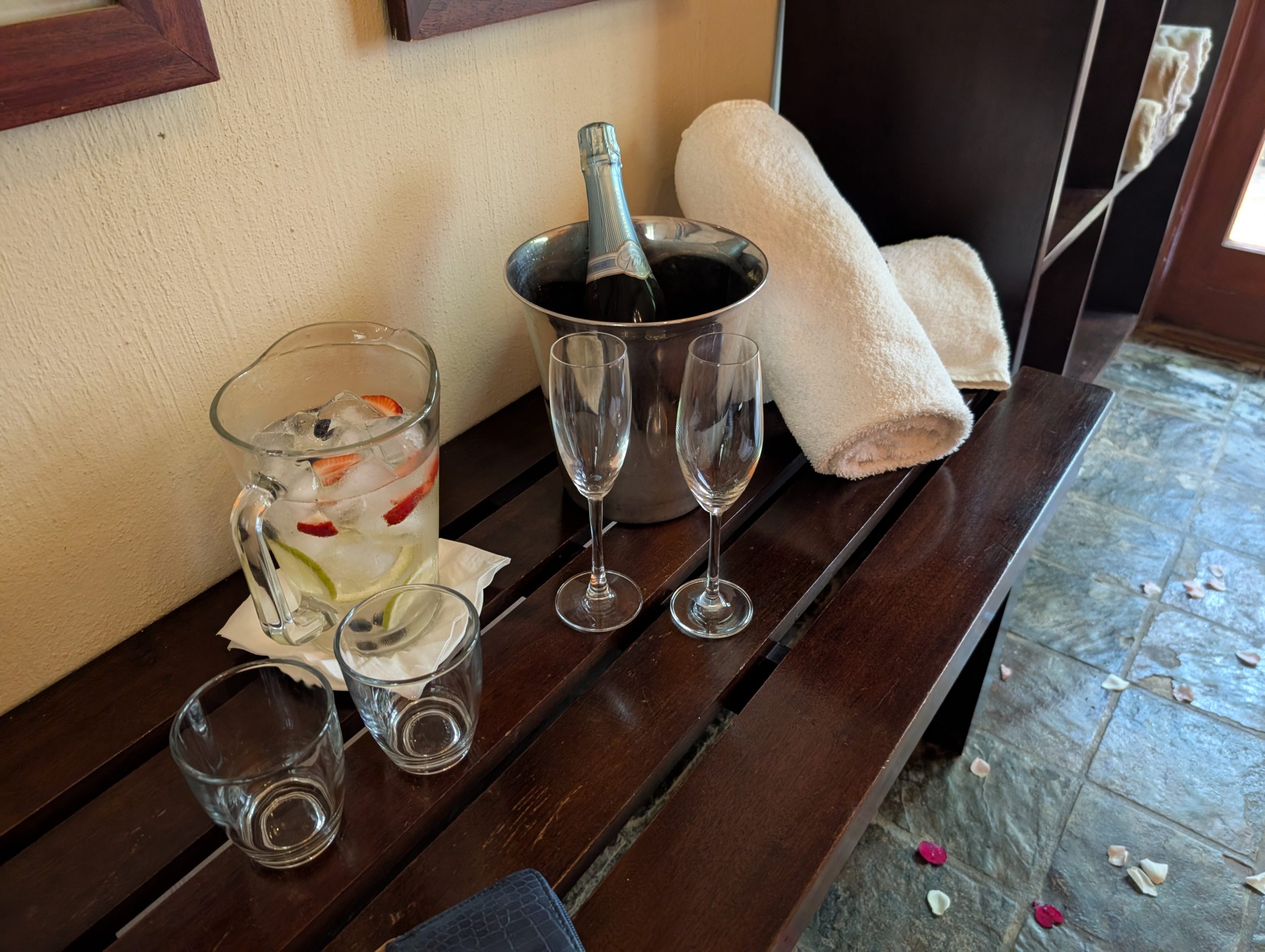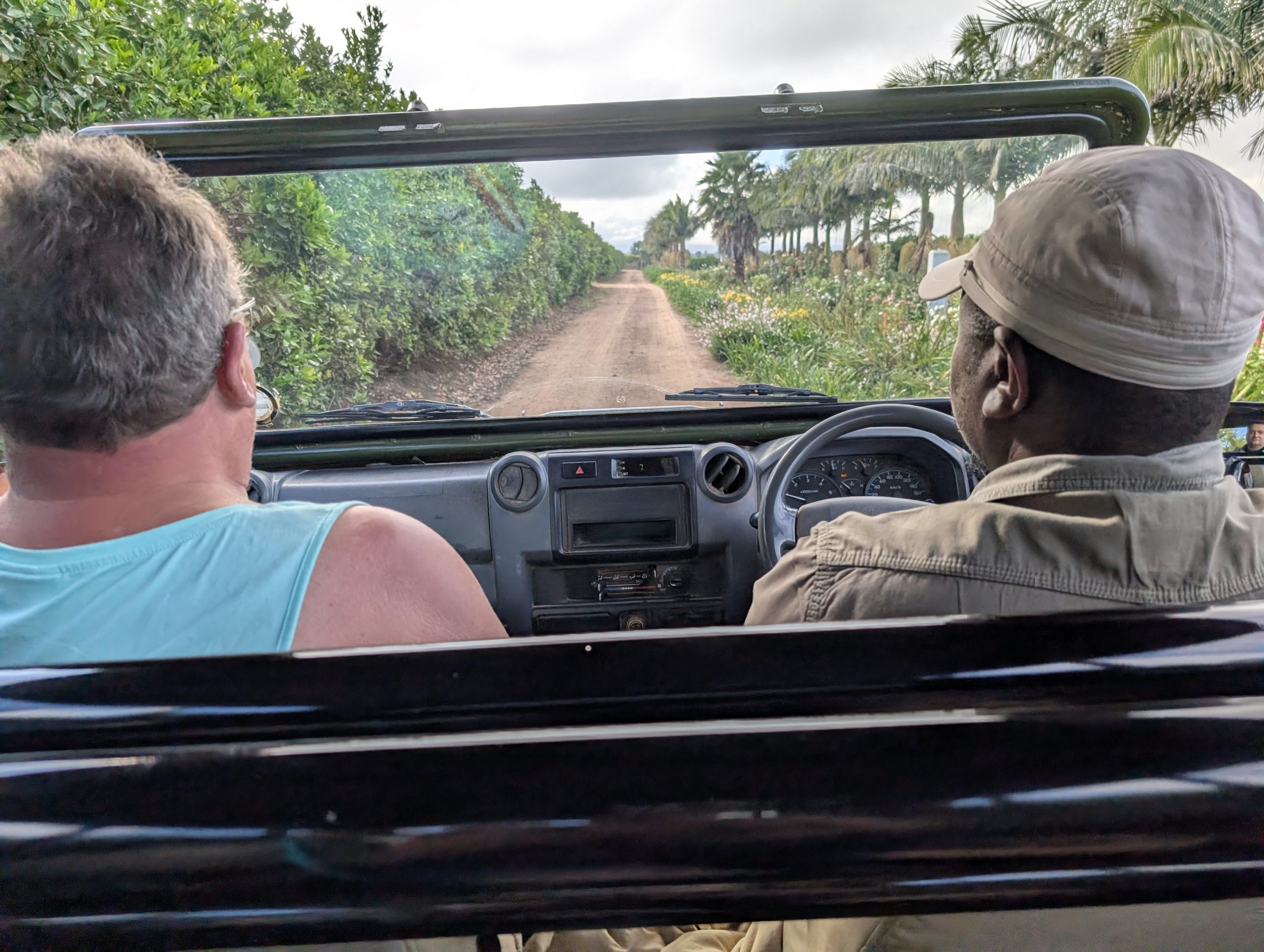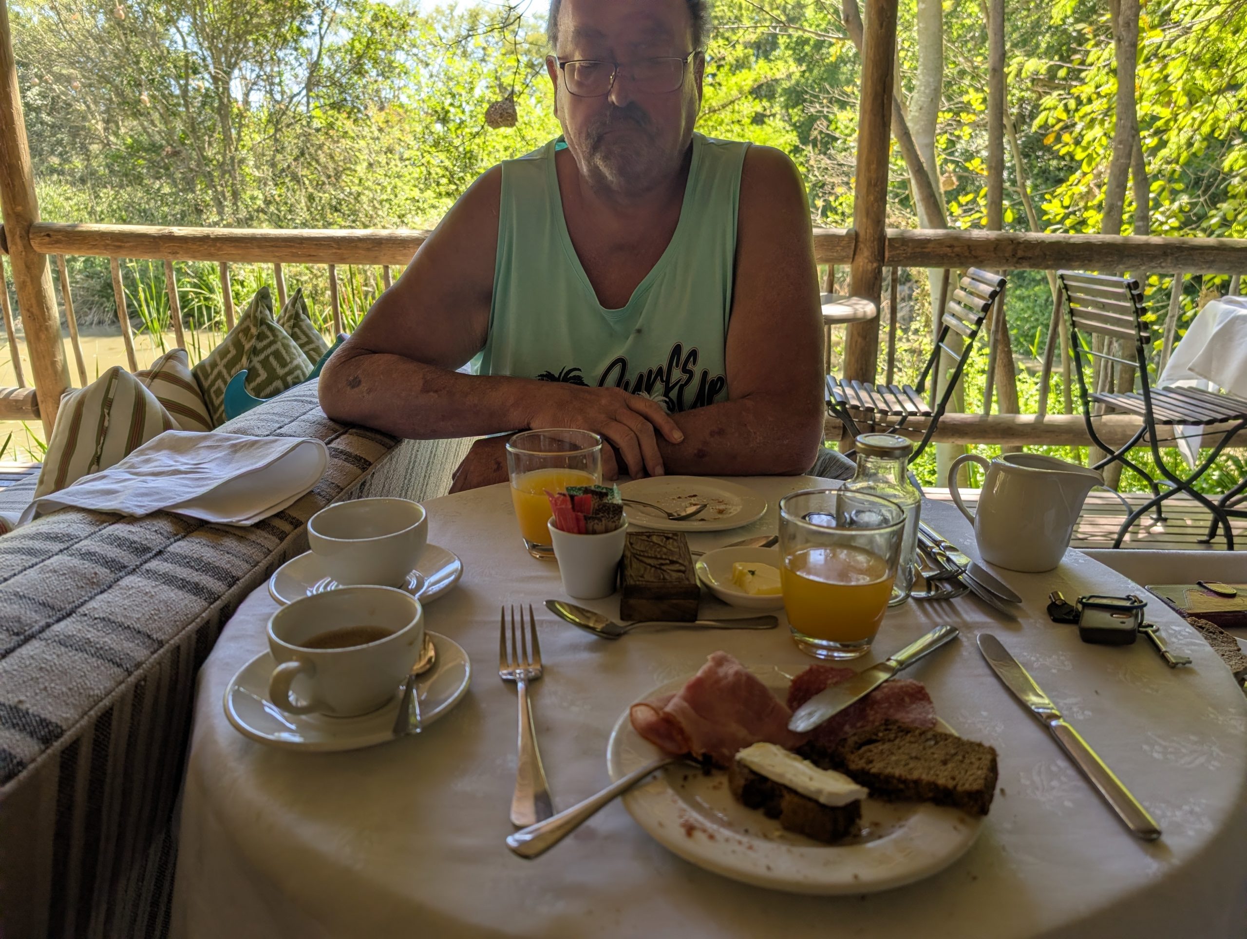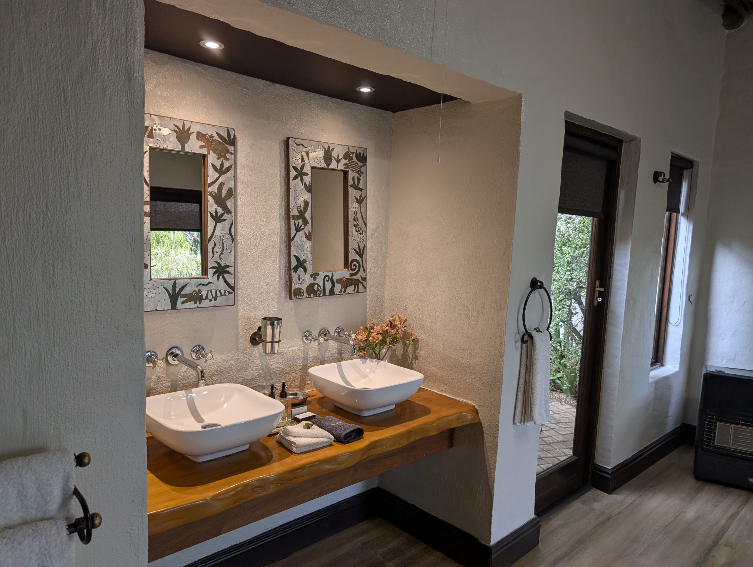 Die Anfahrt vom Tsitsikamma NP hierher zum Addo NP war mit knapp 4 Stunden ziemlich weit. Von Melanie bekamen wir die Info, uns nicht auf Google Maps zu verlassen, sondern aus Sicherheitsgründen die N2 nach Port Elizabeth zu nehmen. Hier kommt man mit dem Flugzeug an, wenn man Südafrika in einer Reise das alles vereint. Die N2, die weiter nach Durban geht, verlassen wir und fahren weiter auf der N 10 nach Paterson. Hier wird es Bevölkerungsärmer und viel Landwirtschaft. Am späten Nachmittag erreichen wir unsere Lodge. Die Zufahrt will Norbert nicht glauben, das ist bei uns eine Fahrt ins Maisfeld. Überall sind Haine mit Zitronen 🍋 und Limetten 🍋🟩. Die Lodge ist der Wahnsinn. Die Dame hat uns soviel gezeigt, der Spa Bereich, das Restaurant mit Fitnessraum, an der Rezeption ist ein Pool und dann kommt unser Zimmer. Ein großer Aufenthaltsraum, ein großes Schlafzimmer mit Moskitonetz, ein noch größeres Bad mit Riesendusche, Außendusche, eine schöne Terrasse mit Liegestühle und eigenen Pool. Das Abendessen ist der Wahnsinn, ein 3 Gänge Menü. Tomatensuppe, Lammkeule und Eis. Mir reißt es den Bauch fast ab, das bin ich nicht mehr gewöhnt. Am Tag 2 ist Treffen an der Rezeption. Dort kann man Kaffee trinken, Kekse essen oder Muffins. Pünktlich ½8 geht es los mit einem frisch gewaschenen Jeep. Auch die anderen Autos sind gewaschen worden. Unser Guide heißt Goldwin. Wir fahren zum Addo NP. Viele Tiere haben wir gesehen, von Buffalo, Antilope, Zebras, Schildkröte 🐢, Tausendfüßler, Bamboos (Paviane) Vögel und sehr viele Elefanten. Gegen 10 Uhr führen wir zum Picnic Areal. Dort gab es Kaffee, Saft, Joghurt, Müsli, Obst und Rührei eingepackt. Gegen Mittag waren wir wieder in der lodge. Dort wartete ein Hydro Aroma Therapie Bad auf uns. Da man nicht rechtzeitig beginnen könnte, gab es als Entschädigung 1 Flasche Champagner. Die Wanne war ein Whirlpool, überall Rosenblätter verstreut und Kerzenlicht. Total romantisch. Danach hatten wir Lunchtime, eine hübsch verpackte Semmel mit Salat. Abend gab es wieder das 3 Gänge Menü. Mir ist das eigentlich alles zuviel, aber will man das nicht, fasst es der Koch auf, als würde es nicht schmecken, aber das ist so was von lecker. Heute gibt es 🍄🟫 Suppe, Kingklipfish, sehr lecker und caramelisiertes Eis. Ich trinke einen Sauvignon Blanc aus Stellenbosch und Norbert einen Bacardi Rum.