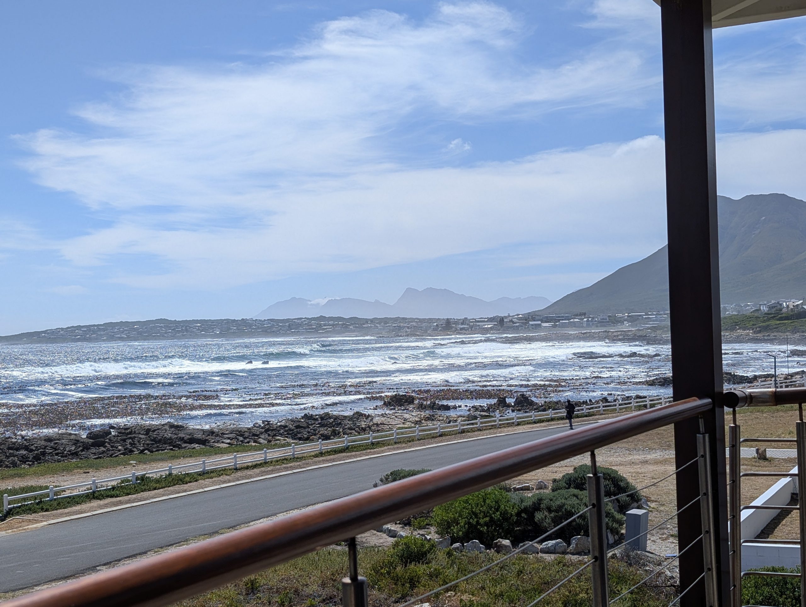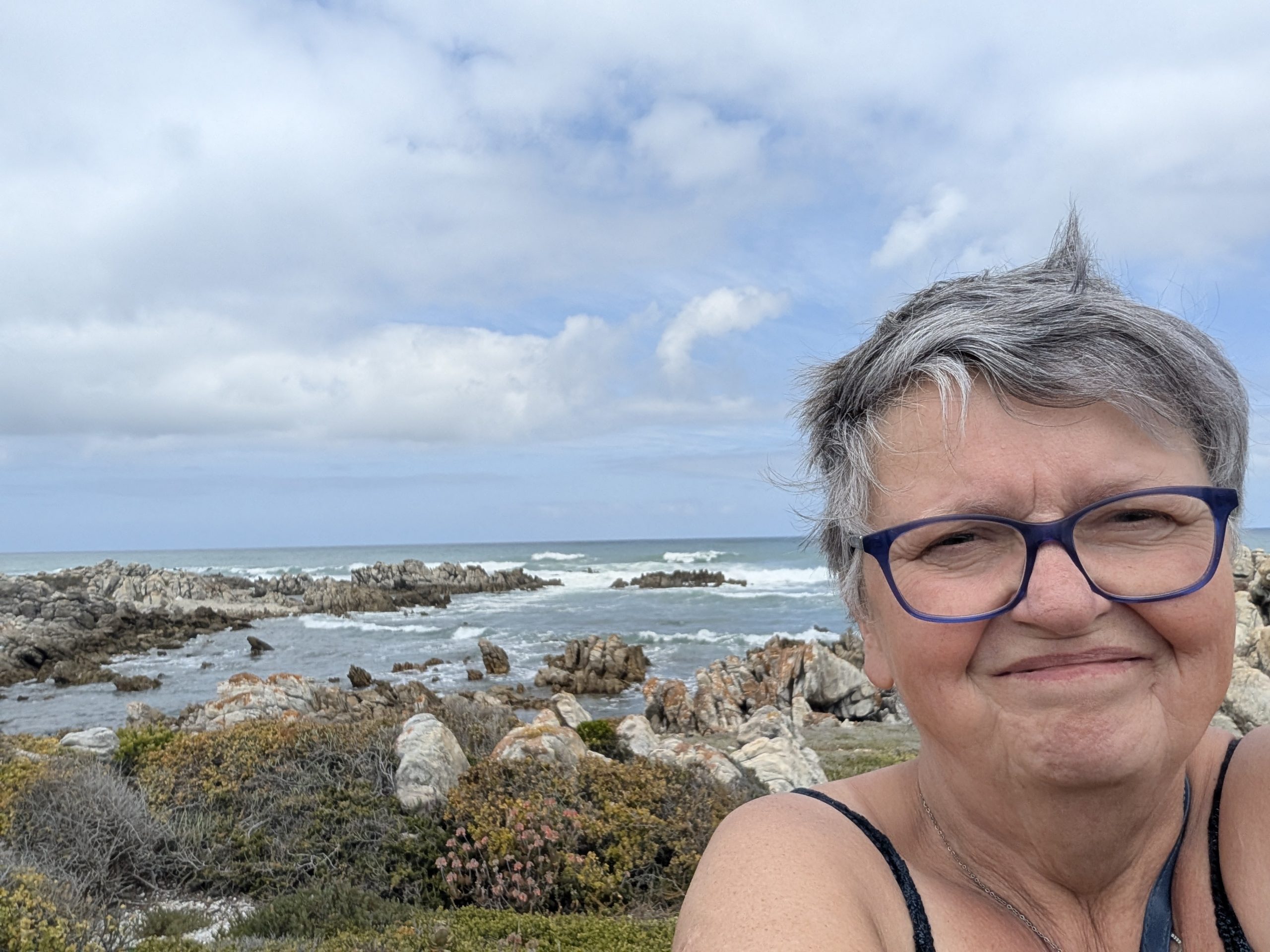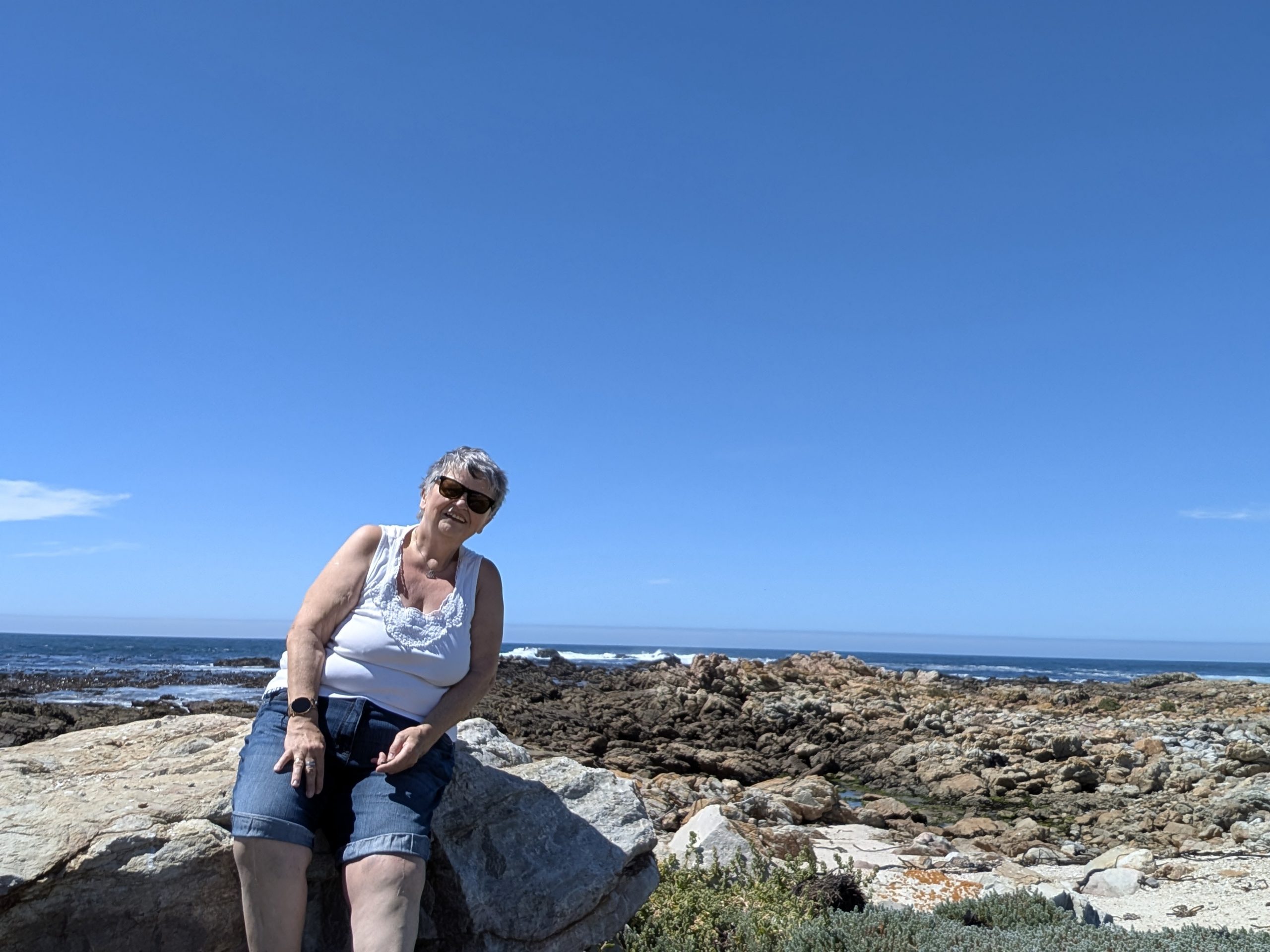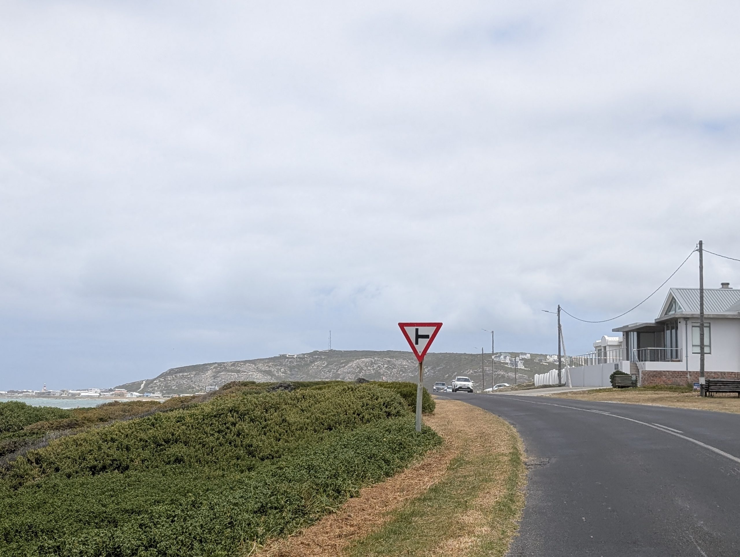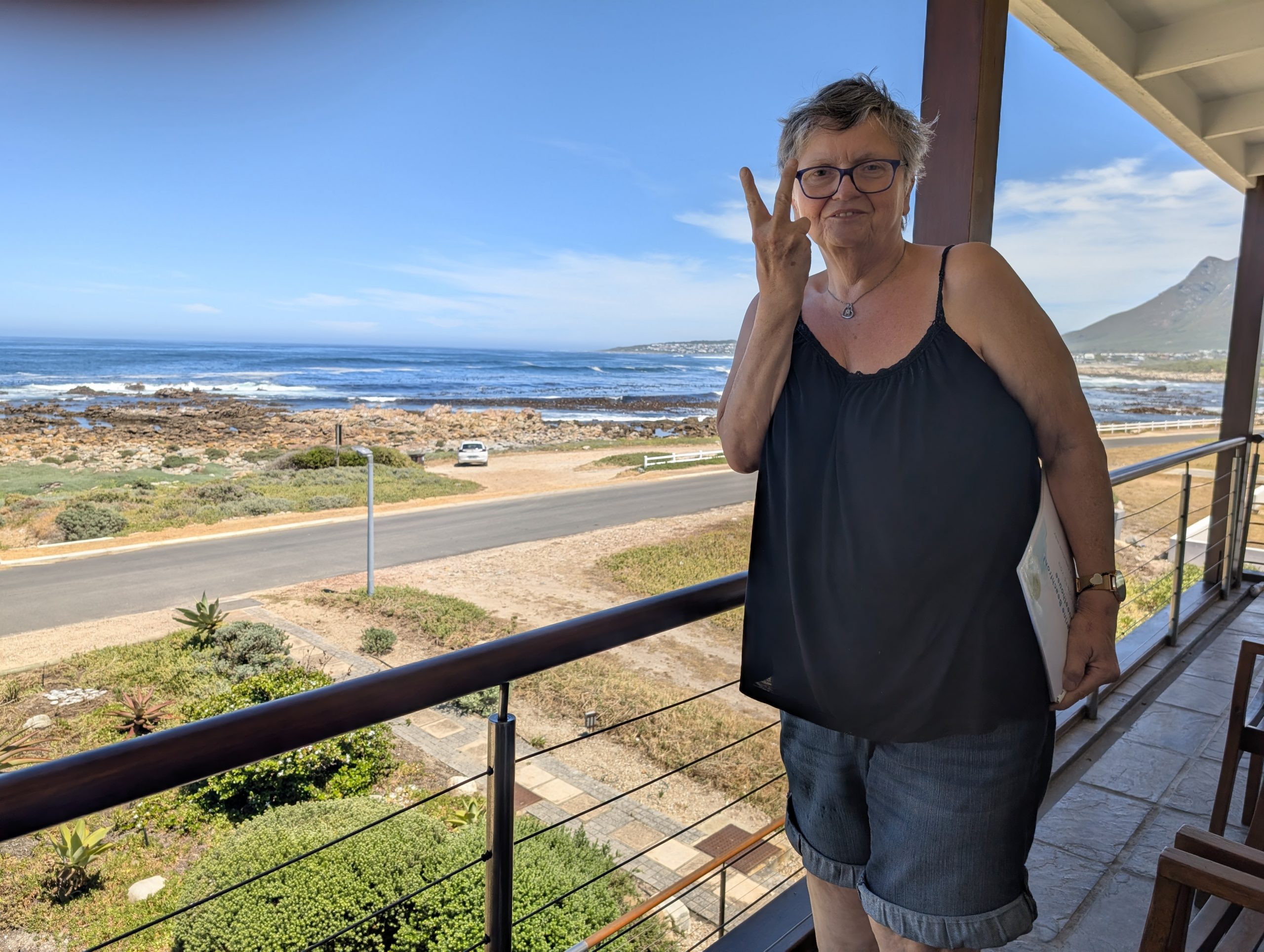 Nun müssen wir schon wieder weiter ziehen. Von unserer Gastwirtin erfuhren wir noch, dass wir unbedingt zum Cape Agulhas sollen, da es auf unserem Weg nach Wilderness liegt. Denn dort ist das Kap der guten Hoffnung, der southermost Point of Afrika. Viele denken nämlich, der ist an der Südspitze der Kaphalbinsel. Natürlich sind wir dahin, das stand eh auf meinem Wunschzettel. Ich dachte aber auch nicht, dass das so weit weg von der Kaphalbinsel ist. Ich habe noch schnell Melanie angeschrieben, ob wir das auf unserer Tour auf der Kaphalbinsel mit sehen, doch sie klärte mich auf, dass das viel zu weit weg ist. Wir fuhren also hin und es war ein toller Weg aus Brettern. Ich bin los gelaufen. Norbert meinte, dass er das nicht schaffen werde. Ich soll mir wieder Zeit lassen. Die Schmerzen von dem Sturz diese Woche waren schon gewaltig. Der Weg war ca. 3 km, für Gesunde gar kein Problem. Zwischendurch waren auch noch große Steine, ich bin wie auf rohen Eiern gelaufen. Ich hatte so eine Angst wieder zu fallen. Doch irgendwann habe ich den Punkt erreicht und es machte mich stolz. Es war eine Riesensteinplatte gewesen, die den Kontinent Afrika zeigte. In der Mitte an der Ostseite waren 2 Erhebungen, man erkannte den Kilimandscharo in Tansania und den Mt. kenia in Kenia genau auf dem Äquator. Weiter vorn waren 2 Schriftplatten, die rechte zeigte den Atlantik und die linke zeigte den indischen Ozean an. Das war nun das Kap der guten Hoffnung, eine sehr schwere Schiffspassage. Hier sind schon unzählige Schiffe gesunken, trotz des Leuchtturmes Agulhas, der älteste von Afrika. Nun wird es aber Zeit, den Rückzug anzutreten, wir haben heute noch eine weite Strecke zu fahren. Norbert hat mich sogar abgeholt, dort wo der Steinweg war. Ich war froh und dankbar, dass ich da nicht nochmal drüber musste. In dem Ort haben wir noch Kaffee getrunken und ein Eis gegessen. Nun wurde es aber Zeit. Das Navi sagte uns, noch 4,5 Stunden sind zu fahren. 17:30 erreichen wir den Ort Wilderness und unsere Lodge, das Dune Beach House. Wir haben mehrere Male geklingelt, keiner machte auf. Da sagte Norbert, ich soll Mal anrufen, Gott sei Dank habe ich ja eine afrikanische SIM Karte. Wir haben uns schnell eingerichtet. Wir haben die Gastwirtin gefragt, wo wir Abendessen gehen können, da hat hat sie uns sogar einen Fahrer mit angeboten. Das haben wir gerne angenommen. Die Gaststätte war toll. Norbert aß wieder Seafood, irgendwas mit Calamar und mir hat der Kellner Antilope empfohlen. Ich aß ein Steak mit Antilope und ein Steak mit Strauß, absolute Spitze. Als wir fertig waren, ließen wir den Fahrer wieder kommen und er fuhr uns wieder nach Hause. Wir waren ganz schön fertig und gingen beizeiten schlafen.