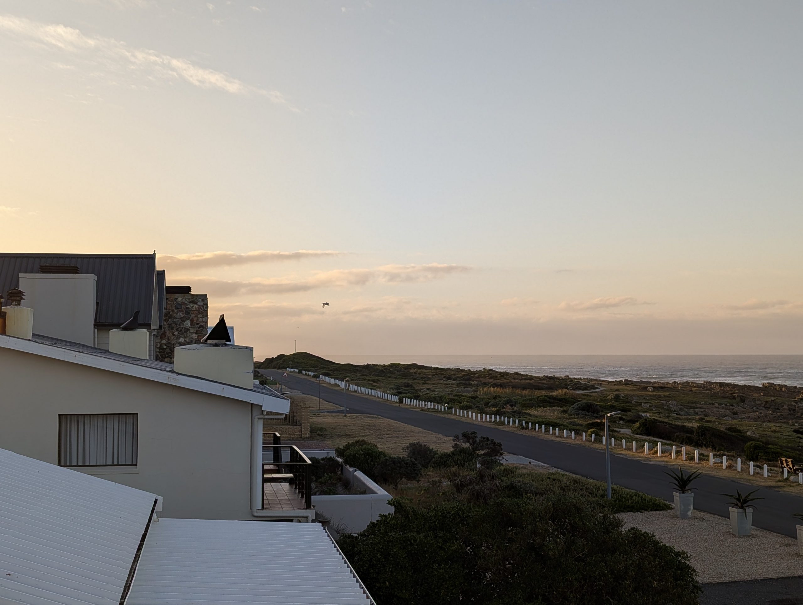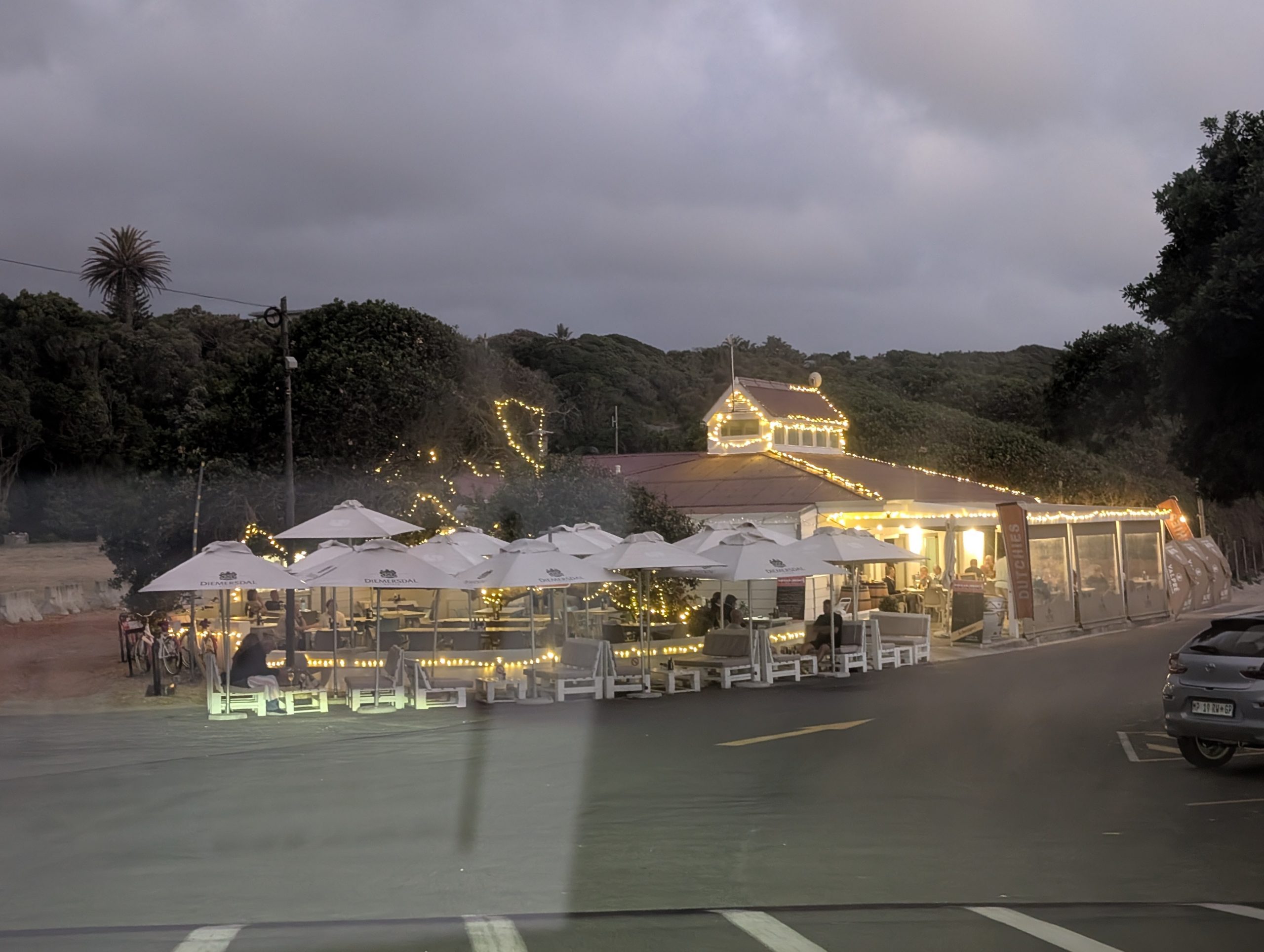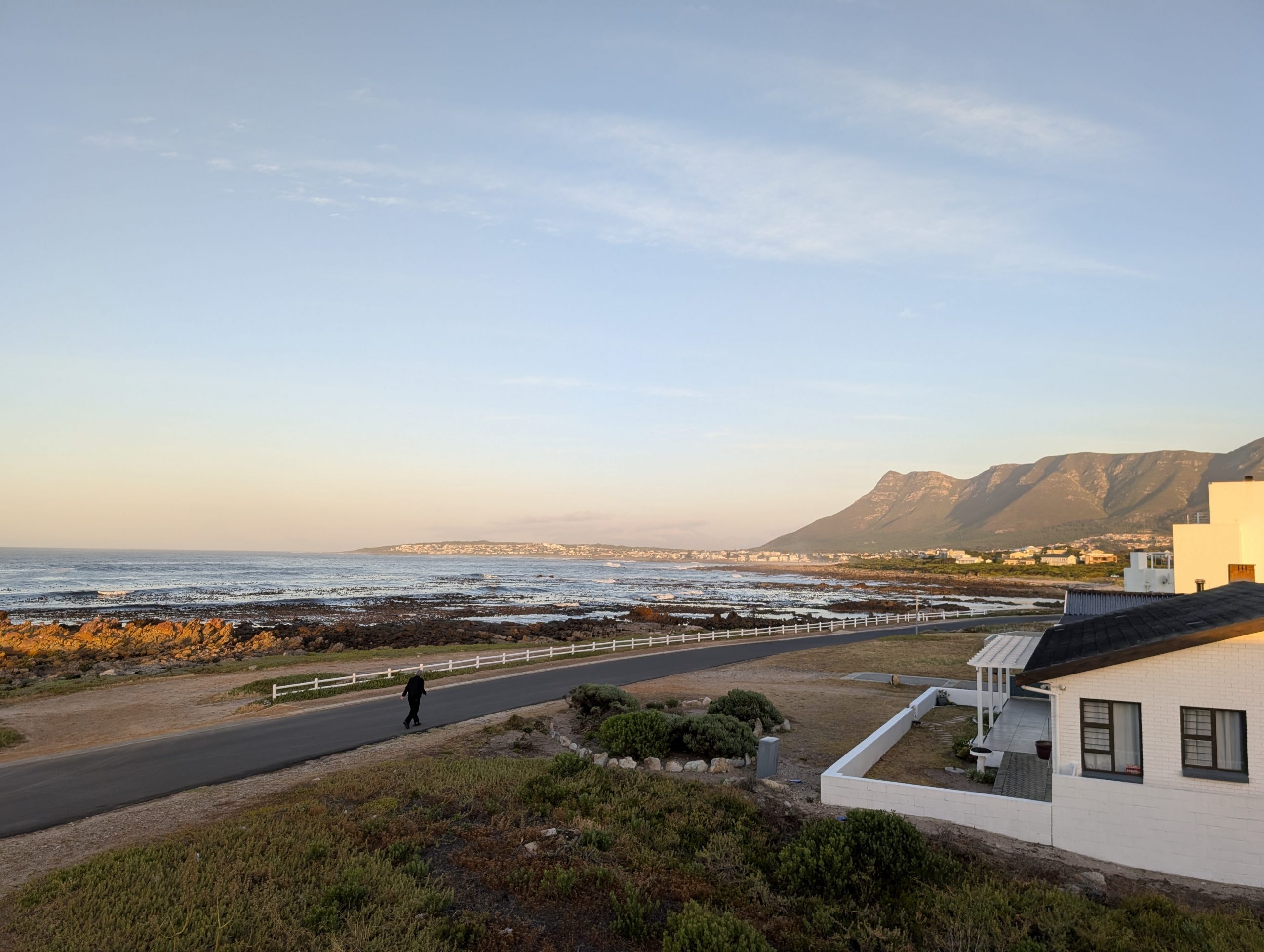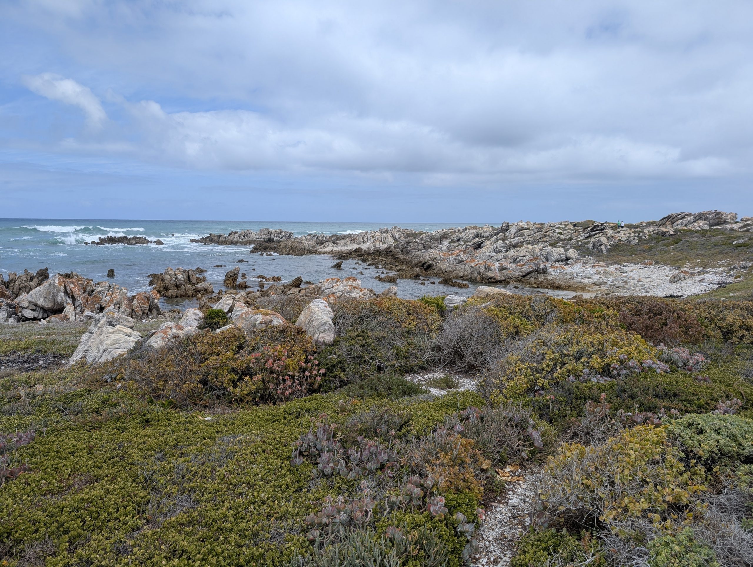 Nun müssen wir schon wieder weiter ziehen. Von unserer Gastwirtin erfuhren wir noch, dass wir unbedingt zum Cape Agulhas sollen, da es auf unserem Weg nach Wilderness liegt. Denn dort ist das Kap der guten Hoffnung, der southermost Point of Afrika. Viele denken nämlich, der ist an der Südspitze der Kaphalbinsel. Natürlich sind wir dahin, das stand eh auf meinem Wunschzettel. Ich dachte aber auch nicht, dass das so weit weg von der Kaphalbinsel ist. Ich habe noch schnell Melanie angeschrieben, ob wir das auf unserer Tour auf der Kaphalbinsel mit sehen, doch sie klärte mich auf, dass das viel zu weit weg ist. Wir fuhren also hin und es war ein toller Weg aus Brettern. Ich bin los gelaufen. Norbert meinte, dass er das nicht schaffen werde. Ich soll mir wieder Zeit lassen. Die Schmerzen von dem Sturz diese Woche waren schon gewaltig. Der Weg war ca. 3 km, für Gesunde gar kein Problem. Zwischendurch waren auch noch große Steine, ich bin wie auf rohen Eiern gelaufen. Ich hatte so eine Angst wieder zu fallen. Doch irgendwann habe ich den Punkt erreicht und es machte mich stolz. Es war eine Riesensteinplatte gewesen, die den Kontinent Afrika zeigte. In der Mitte an der Ostseite waren 2 Erhebungen, man erkannte den Kilimandscharo in Tansania und den Mt. kenia in Kenia genau auf dem Äquator. Weiter vorn waren 2 Schriftplatten, die rechte zeigte den Atlantik und die linke zeigte den indischen Ozean an. Das war nun das Kap der guten Hoffnung, eine sehr schwere Schiffspassage. Hier sind schon unzählige Schiffe gesunken, trotz des Leuchtturmes Agulhas, der älteste von Afrika. Nun wird es aber Zeit, den Rückzug anzutreten, wir haben heute noch eine weite Strecke zu fahren. Norbert hat mich sogar abgeholt, dort wo der Steinweg war. Ich war froh und dankbar, dass ich da nicht nochmal drüber musste. In dem Ort haben wir noch Kaffee getrunken und ein Eis gegessen. Nun wurde es aber Zeit. Das Navi sagte uns, noch 4,5 Stunden sind zu fahren. 17:30 erreichen wir den Ort Wilderness und unsere Lodge, das Dune Beach House. Wir haben mehrere Male geklingelt, keiner machte auf. Da sagte Norbert, ich soll Mal anrufen, Gott sei Dank habe ich ja eine afrikanische SIM Karte. Wir haben uns schnell eingerichtet. Wir haben die Gastwirtin gefragt, wo wir Abendessen gehen können, da hat hat sie uns sogar einen Fahrer mit angeboten. Das haben wir gerne angenommen. Die Gaststätte war toll. Norbert aß wieder Seafood, irgendwas mit Calamar und mir hat der Kellner Antilope empfohlen. Ich aß ein Steak mit Antilope und ein Steak mit Strauß, absolute Spitze. Als wir fertig waren, ließen wir den Fahrer wieder kommen und er fuhr uns wieder nach Hause. Wir waren ganz schön fertig und gingen beizeiten schlafen.