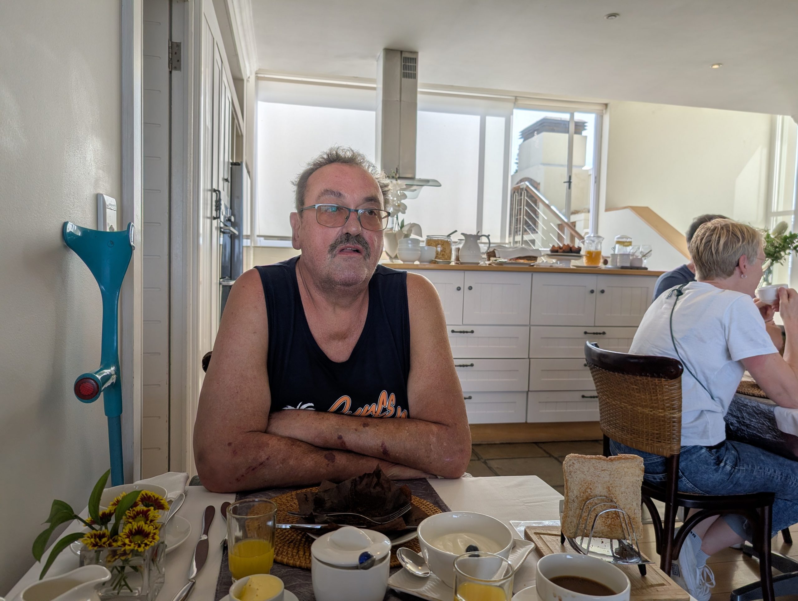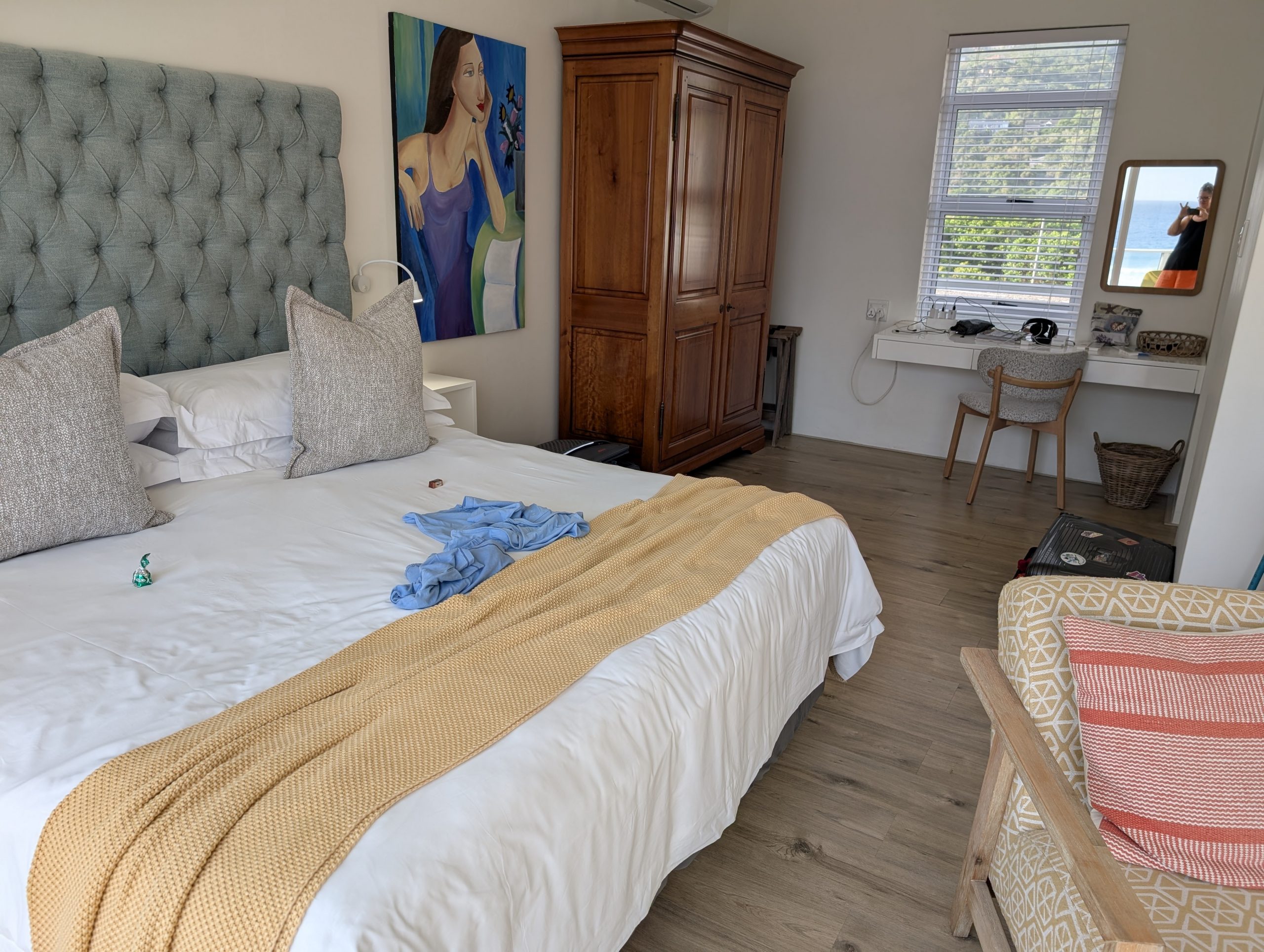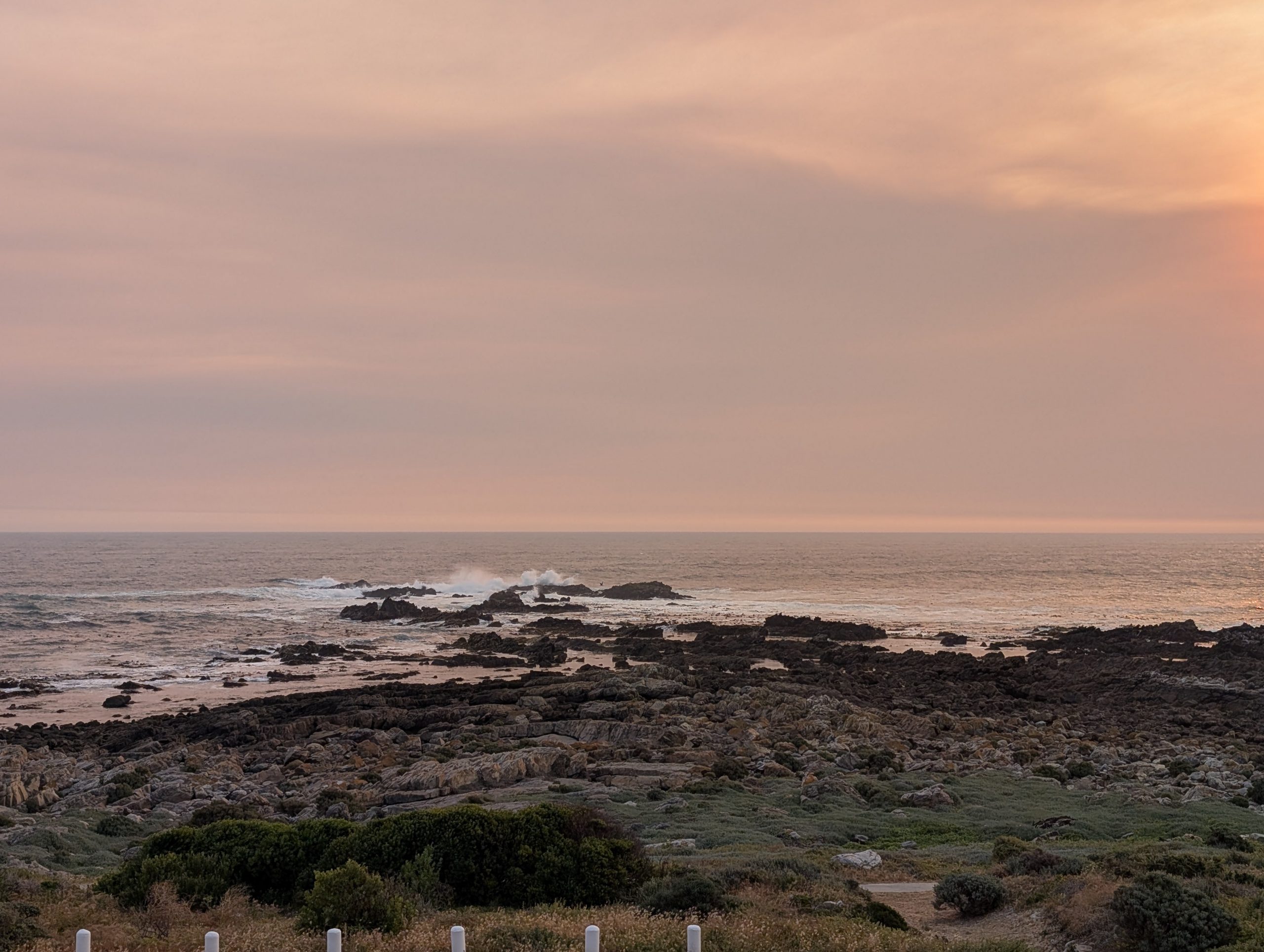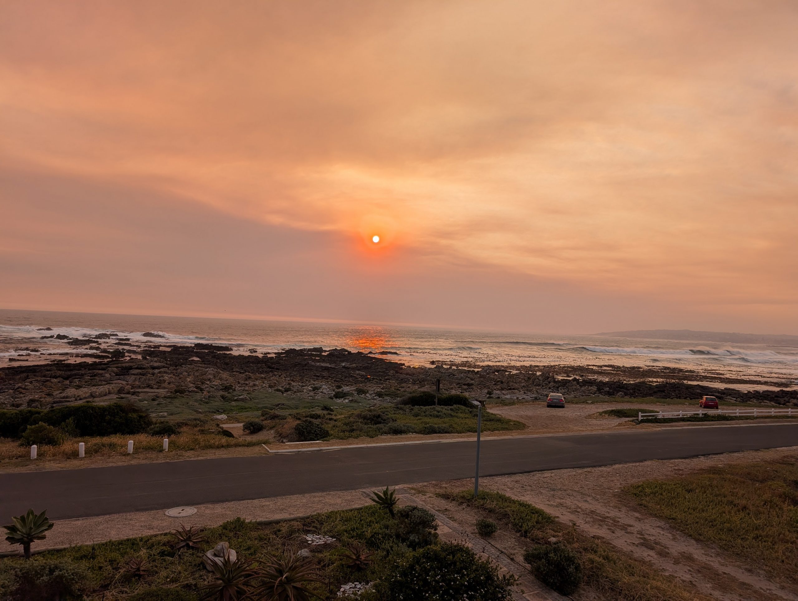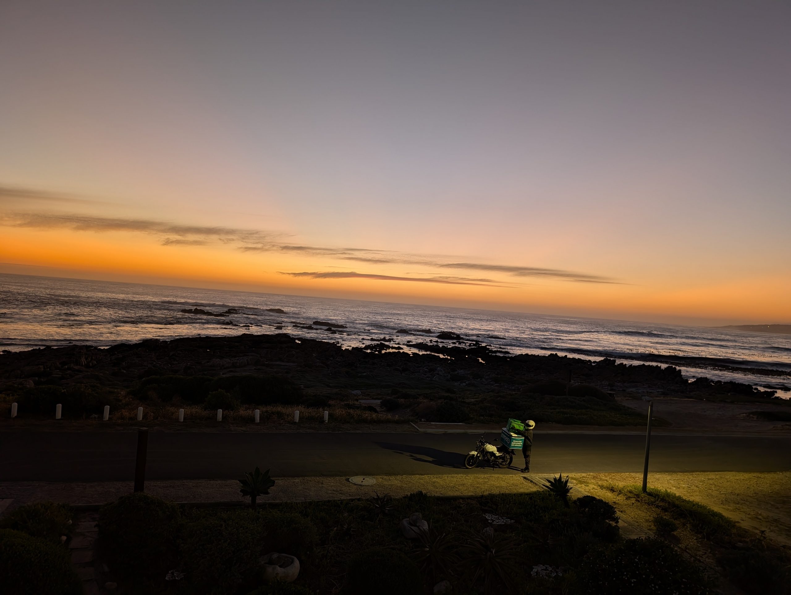 Nun müssen wir schon wieder weiter ziehen. Von unserer Gastwirtin erfuhren wir noch, dass wir unbedingt zum Cape Agulhas sollen, da es auf unserem Weg nach Wilderness liegt. Denn dort ist das Kap der guten Hoffnung, der southermost Point of Afrika. Viele denken nämlich, der ist an der Südspitze der Kaphalbinsel. Natürlich sind wir dahin, das stand eh auf meinem Wunschzettel. Ich dachte aber auch nicht, dass das so weit weg von der Kaphalbinsel ist. Ich habe noch schnell Melanie angeschrieben, ob wir das auf unserer Tour auf der Kaphalbinsel mit sehen, doch sie klärte mich auf, dass das viel zu weit weg ist. Wir fuhren also hin und es war ein toller Weg aus Brettern. Ich bin los gelaufen. Norbert meinte, dass er das nicht schaffen werde. Ich soll mir wieder Zeit lassen. Die Schmerzen von dem Sturz diese Woche waren schon gewaltig. Der Weg war ca. 3 km, für Gesunde gar kein Problem. Zwischendurch waren auch noch große Steine, ich bin wie auf rohen Eiern gelaufen. Ich hatte so eine Angst wieder zu fallen. Doch irgendwann habe ich den Punkt erreicht und es machte mich stolz. Es war eine Riesensteinplatte gewesen, die den Kontinent Afrika zeigte. In der Mitte an der Ostseite waren 2 Erhebungen, man erkannte den Kilimandscharo in Tansania und den Mt. kenia in Kenia genau auf dem Äquator. Weiter vorn waren 2 Schriftplatten, die rechte zeigte den Atlantik und die linke zeigte den indischen Ozean an. Das war nun das Kap der guten Hoffnung, eine sehr schwere Schiffspassage. Hier sind schon unzählige Schiffe gesunken, trotz des Leuchtturmes Agulhas, der älteste von Afrika. Nun wird es aber Zeit, den Rückzug anzutreten, wir haben heute noch eine weite Strecke zu fahren. Norbert hat mich sogar abgeholt, dort wo der Steinweg war. Ich war froh und dankbar, dass ich da nicht nochmal drüber musste. In dem Ort haben wir noch Kaffee getrunken und ein Eis gegessen. Nun wurde es aber Zeit. Das Navi sagte uns, noch 4,5 Stunden sind zu fahren. 17:30 erreichen wir den Ort Wilderness und unsere Lodge, das Dune Beach House. Wir haben mehrere Male geklingelt, keiner machte auf. Da sagte Norbert, ich soll Mal anrufen, Gott sei Dank habe ich ja eine afrikanische SIM Karte. Wir haben uns schnell eingerichtet. Wir haben die Gastwirtin gefragt, wo wir Abendessen gehen können, da hat hat sie uns sogar einen Fahrer mit angeboten. Das haben wir gerne angenommen. Die Gaststätte war toll. Norbert aß wieder Seafood, irgendwas mit Calamar und mir hat der Kellner Antilope empfohlen. Ich aß ein Steak mit Antilope und ein Steak mit Strauß, absolute Spitze. Als wir fertig waren, ließen wir den Fahrer wieder kommen und er fuhr uns wieder nach Hause. Wir waren ganz schön fertig und gingen beizeiten schlafen.