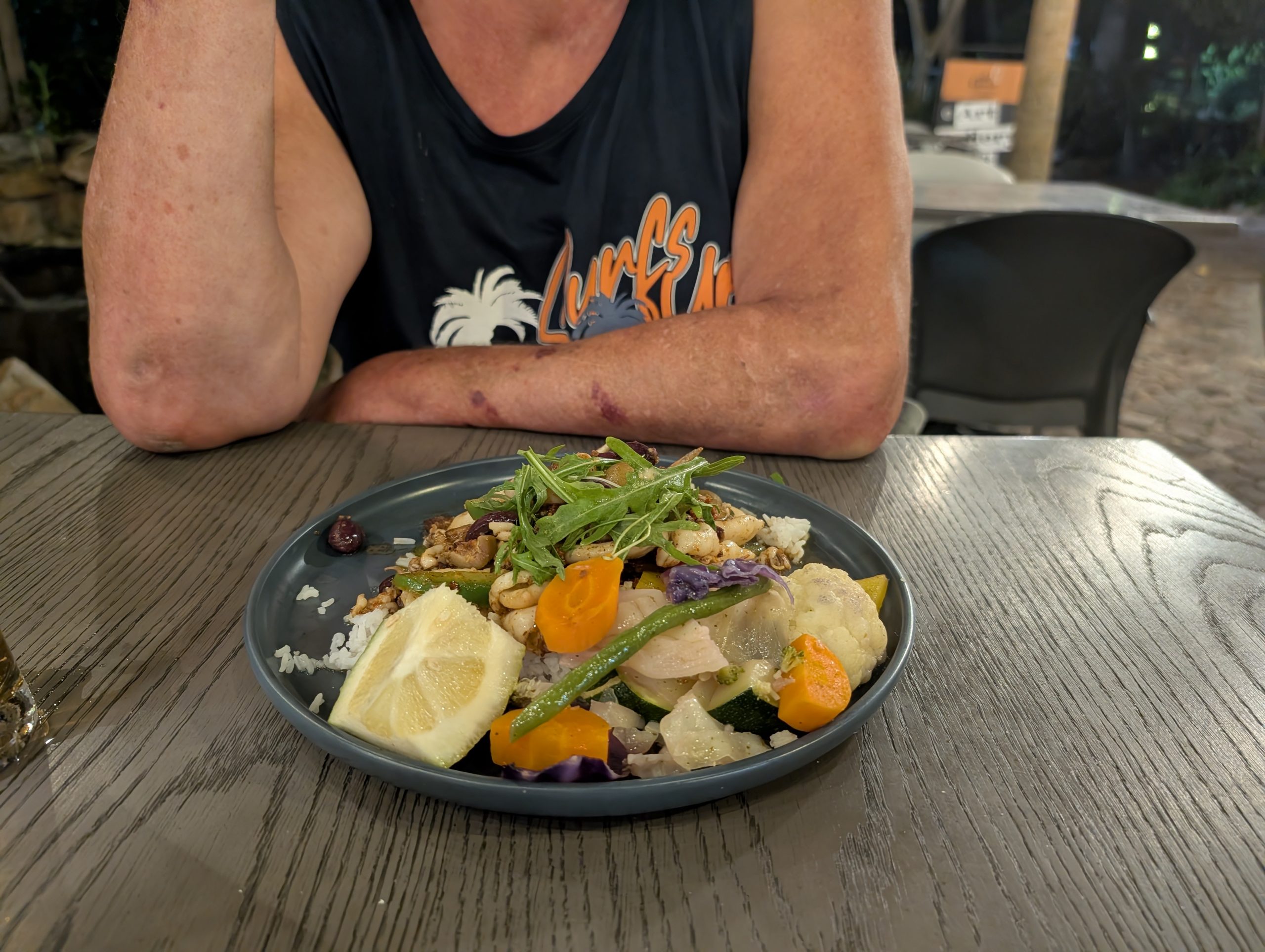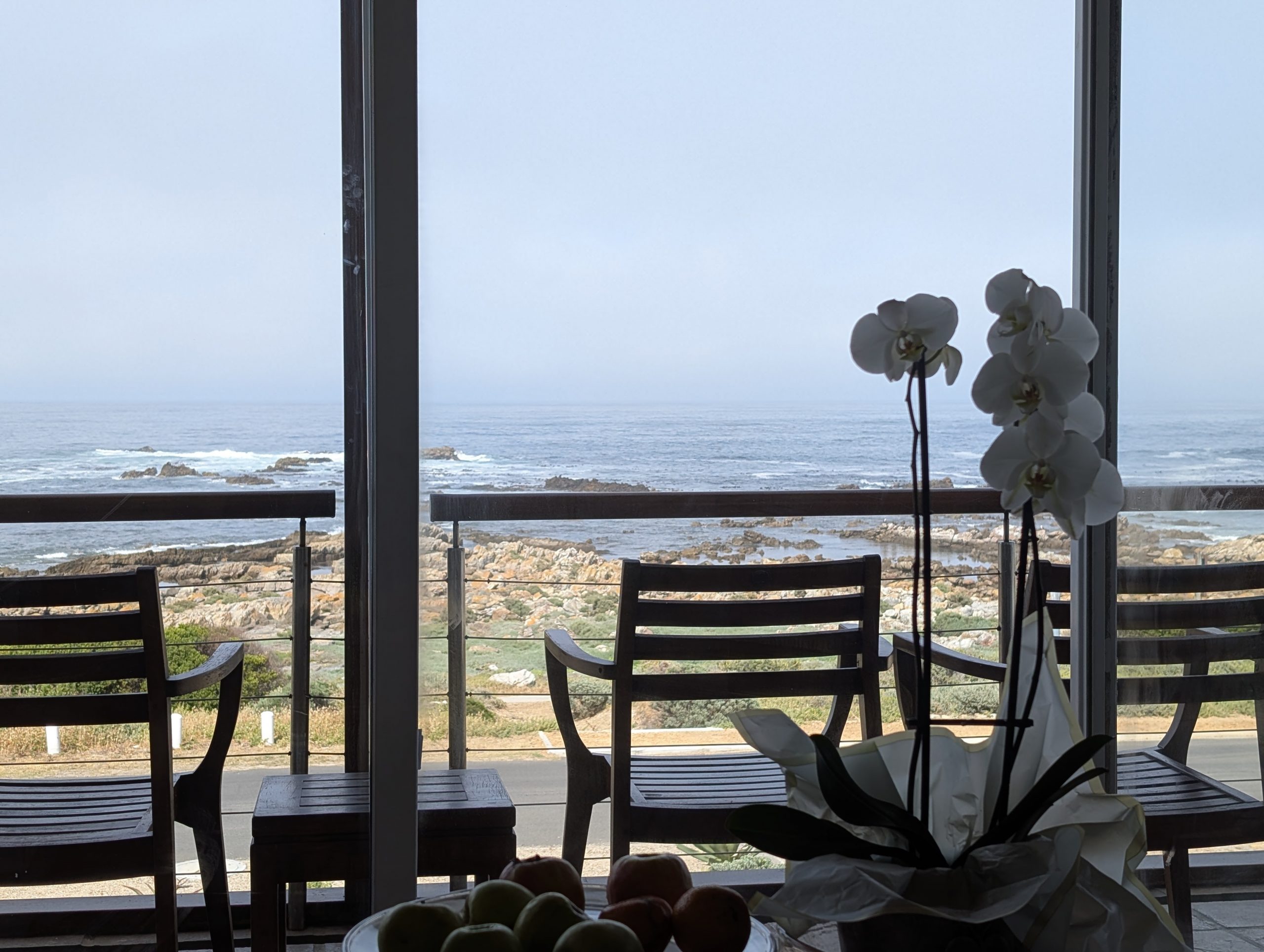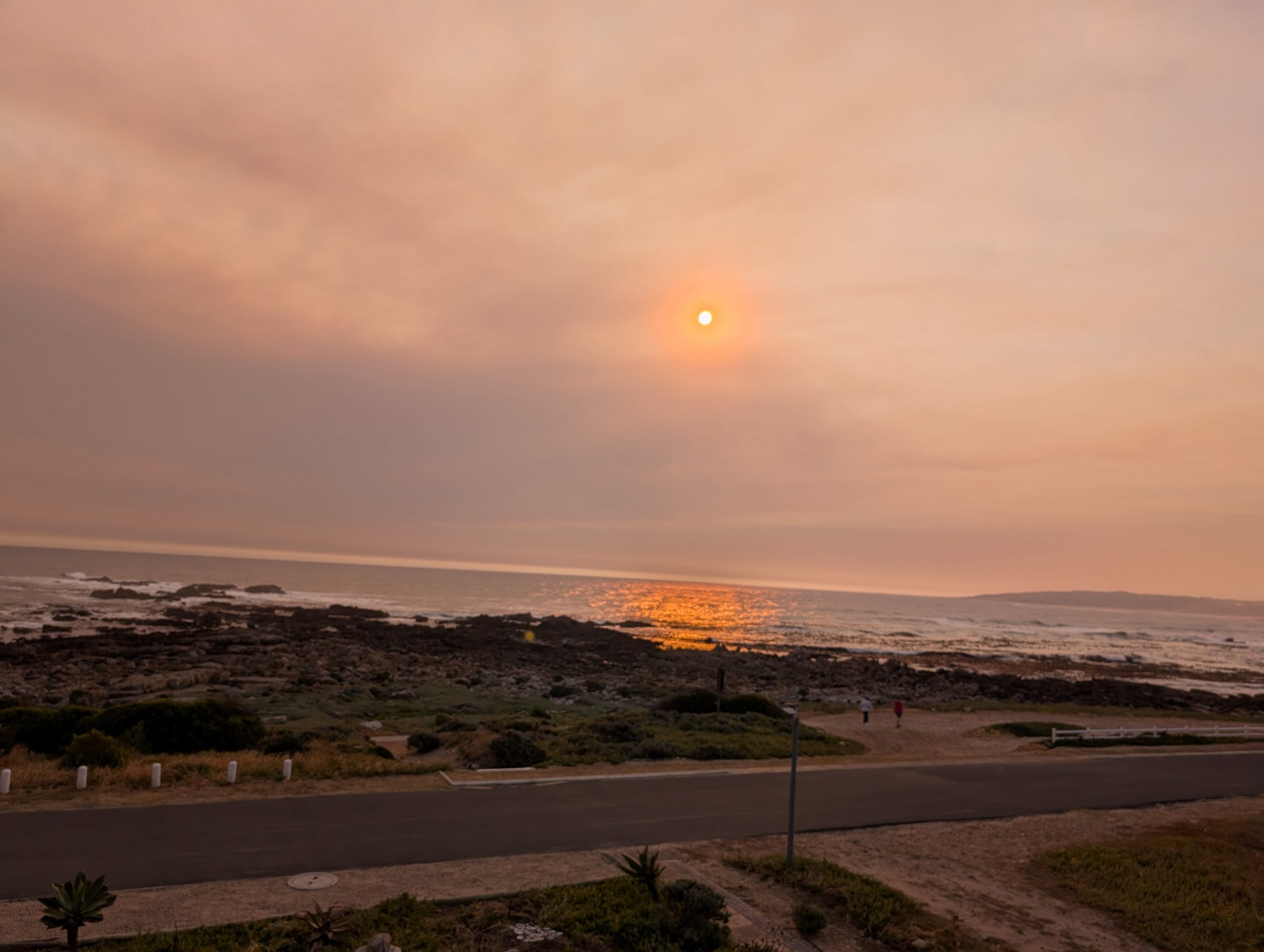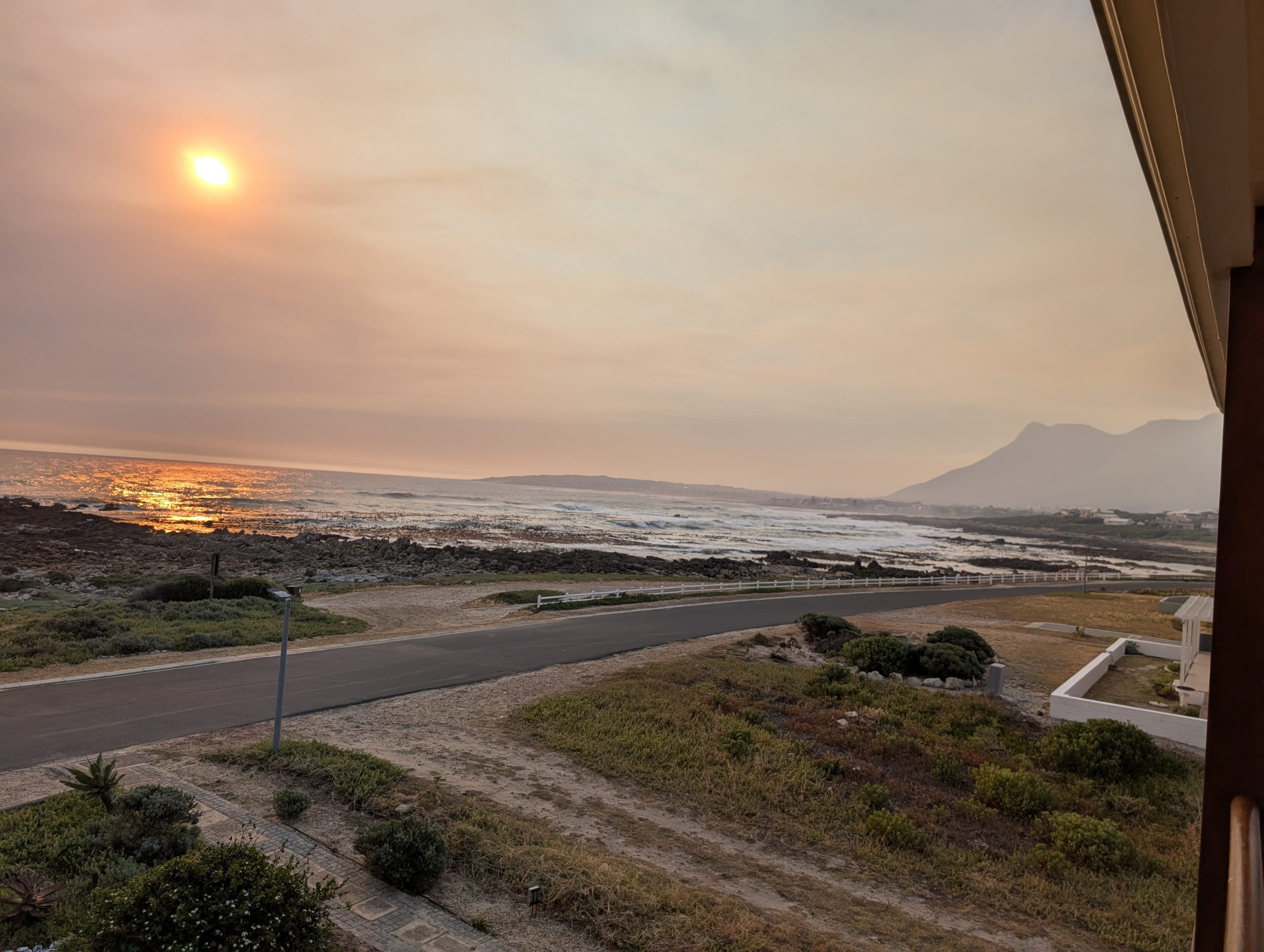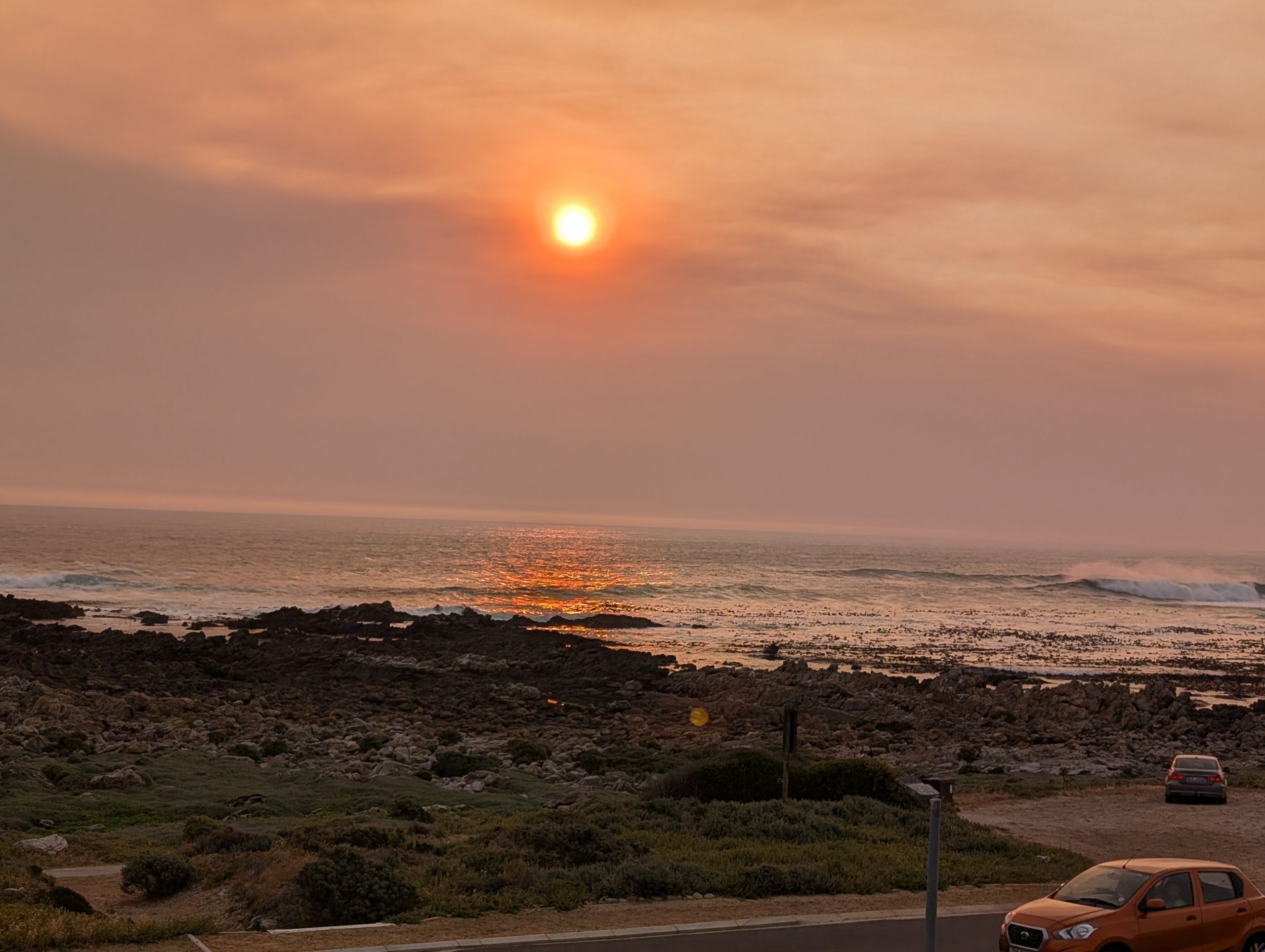 Nun müssen wir schon wieder weiter ziehen. Von unserer Gastwirtin erfuhren wir noch, dass wir unbedingt zum Cape Agulhas sollen, da es auf unserem Weg nach Wilderness liegt. Denn dort ist das Kap der guten Hoffnung, der southermost Point of Afrika. Viele denken nämlich, der ist an der Südspitze der Kaphalbinsel. Natürlich sind wir dahin, das stand eh auf meinem Wunschzettel. Ich dachte aber auch nicht, dass das so weit weg von der Kaphalbinsel ist. Ich habe noch schnell Melanie angeschrieben, ob wir das auf unserer Tour auf der Kaphalbinsel mit sehen, doch sie klärte mich auf, dass das viel zu weit weg ist. Wir fuhren also hin und es war ein toller Weg aus Brettern. Ich bin los gelaufen. Norbert meinte, dass er das nicht schaffen werde. Ich soll mir wieder Zeit lassen. Die Schmerzen von dem Sturz diese Woche waren schon gewaltig. Der Weg war ca. 3 km, für Gesunde gar kein Problem. Zwischendurch waren auch noch große Steine, ich bin wie auf rohen Eiern gelaufen. Ich hatte so eine Angst wieder zu fallen. Doch irgendwann habe ich den Punkt erreicht und es machte mich stolz. Es war eine Riesensteinplatte gewesen, die den Kontinent Afrika zeigte. In der Mitte an der Ostseite waren 2 Erhebungen, man erkannte den Kilimandscharo in Tansania und den Mt. kenia in Kenia genau auf dem Äquator. Weiter vorn waren 2 Schriftplatten, die rechte zeigte den Atlantik und die linke zeigte den indischen Ozean an. Das war nun das Kap der guten Hoffnung, eine sehr schwere Schiffspassage. Hier sind schon unzählige Schiffe gesunken, trotz des Leuchtturmes Agulhas, der älteste von Afrika. Nun wird es aber Zeit, den Rückzug anzutreten, wir haben heute noch eine weite Strecke zu fahren. Norbert hat mich sogar abgeholt, dort wo der Steinweg war. Ich war froh und dankbar, dass ich da nicht nochmal drüber musste. In dem Ort haben wir noch Kaffee getrunken und ein Eis gegessen. Nun wurde es aber Zeit. Das Navi sagte uns, noch 4,5 Stunden sind zu fahren. 17:30 erreichen wir den Ort Wilderness und unsere Lodge, das Dune Beach House. Wir haben mehrere Male geklingelt, keiner machte auf. Da sagte Norbert, ich soll Mal anrufen, Gott sei Dank habe ich ja eine afrikanische SIM Karte. Wir haben uns schnell eingerichtet. Wir haben die Gastwirtin gefragt, wo wir Abendessen gehen können, da hat hat sie uns sogar einen Fahrer mit angeboten. Das haben wir gerne angenommen. Die Gaststätte war toll. Norbert aß wieder Seafood, irgendwas mit Calamar und mir hat der Kellner Antilope empfohlen. Ich aß ein Steak mit Antilope und ein Steak mit Strauß, absolute Spitze. Als wir fertig waren, ließen wir den Fahrer wieder kommen und er fuhr uns wieder nach Hause. Wir waren ganz schön fertig und gingen beizeiten schlafen.