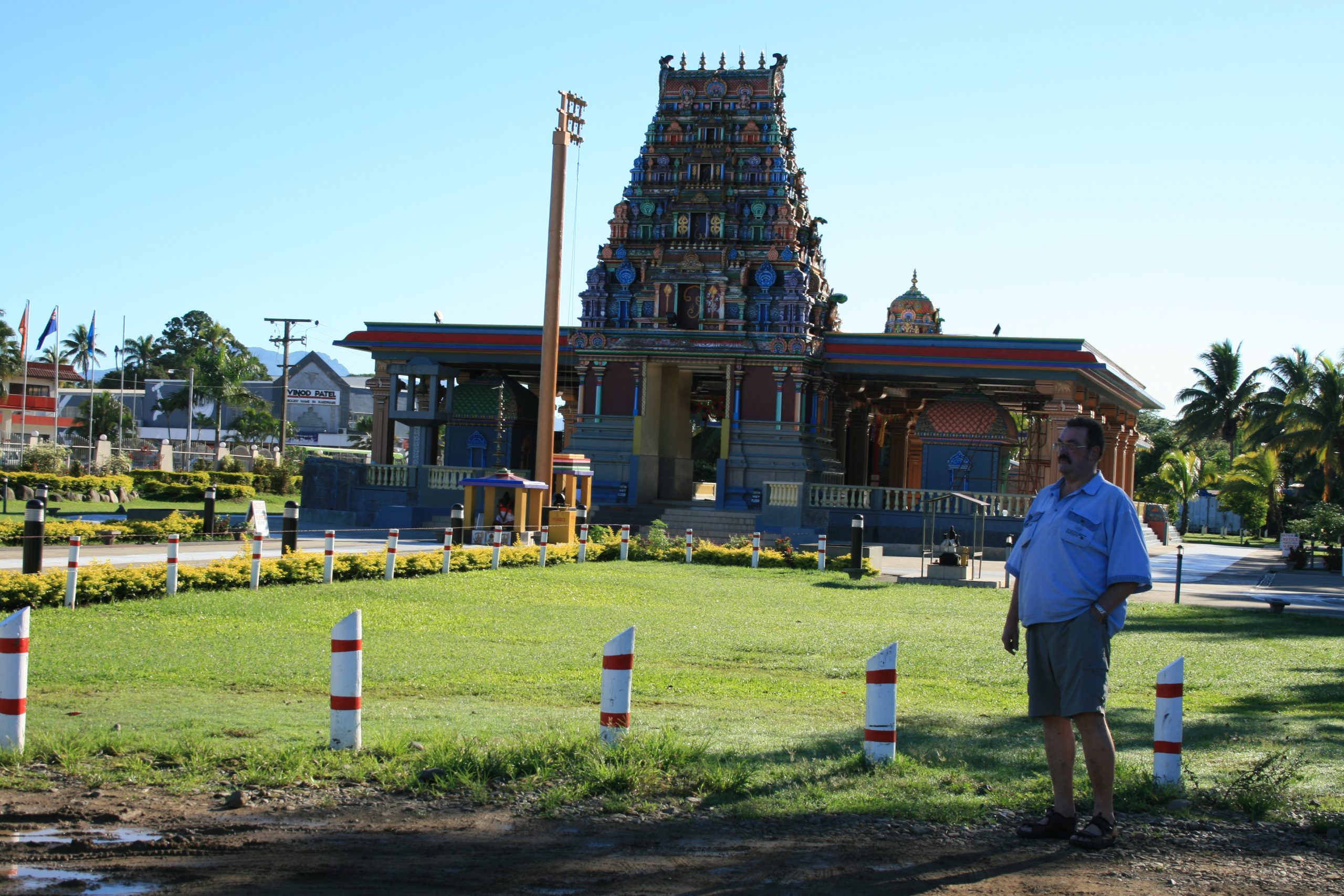 Als erstes auf unserer Weiterfahrt auf der Kingsroad kamen wir nach Tavua und dort trafen wir ein paar Schulkinder. Diese tragen hier eine Schuluniform und die sahen hier hübsch aus und da gibt es keine Hänselleien, wie bei uns, die einen tragen Markenklamotten und andere können das nicht. An einer Holzbrücke sahen wir, wie ein kleiner Sugartrain seine Ladung verloren hat und mitsamten Wagon in den Fluss gestürzt war. Norbert wollte dem ganzen Treiben mal fotografieren. Alle haben sie erst einmal blöd in den Fluss geschaut und es tat sich nichts. Wer weiß, wieviele Stunden, Tage, Wochen dabei drauf gingen. Als er wieder kam, musste ich lachen, er lief breitbeinig, als ob er in die Hosen gepinkelt hat. Als ich ihn fragte, warum er so gelaufen ist, da sagte er, in der Brücke haben sämtliche Bretter gefehlt und er ist nur auf den Pfosten lang gelaufen. In Deutschland hätte man so eine Brücke schon längst gesperrt, aber hier stört das niemandem.. Weiter geht es nach Ba, eine wunderschöne Stadt, wo sogar in den Fluss ein indischer Tempel gebaut war. Mitten durch die Stadt schlängelte sich ein riesenlanger Sugartrain. Keine Absperrung nichts trug zur Vorsicht bei. Aber nun mussten wir etwas schneller machen, denn die Zeit bis zur Abgabe wurde knapp. Von weitem sahen wir ein riesengroßes Kreuzfahrtschiff im Hafen von Lautoka liegen. Am Airport von Nadi fragten wir nochmal nach, was uns ein Verlängerungstag kosten würde, doch der Preis war uns zu utopisch. Wir mussten auch noch voll tanken, doch nun verfuhren wir uns auch noch in Nadi, wir bogen am Kreisverkehr die falsche Ausfahrt raus. Wir kamen von der falschen Seite nach Nadi und es wurde immer enger, wir waren schon total nervös, aber die Dame von Roses Hollydays sah das sehr locker. Leider konnten wir unser Zimmer im Hotel noch nicht beziehen, erst ab 2 Uhr. Da gingen wir noch einmal zum Supermarkt rüber, um uns für die kommende Woche noch einzudecken. Im Hotel bekamen wir ein Superior Deluxe Suite, ein sehr schönes großes Zimmer mit Terrasse zum Pool. Mit einem Taxi fuhren wir noch zum Port Denarau, von hier starten die kleineren Schiffe zur Kreuzfahrt durch die Südsee. Wir aßen noch ein leckeres Eis, Norbert sogar ein After Eight. Nach 2 Stunden fuhren wir wieder zurück. Bei einem schönen Bad im Pool ließen wir den schönen Tag ausklingen.
