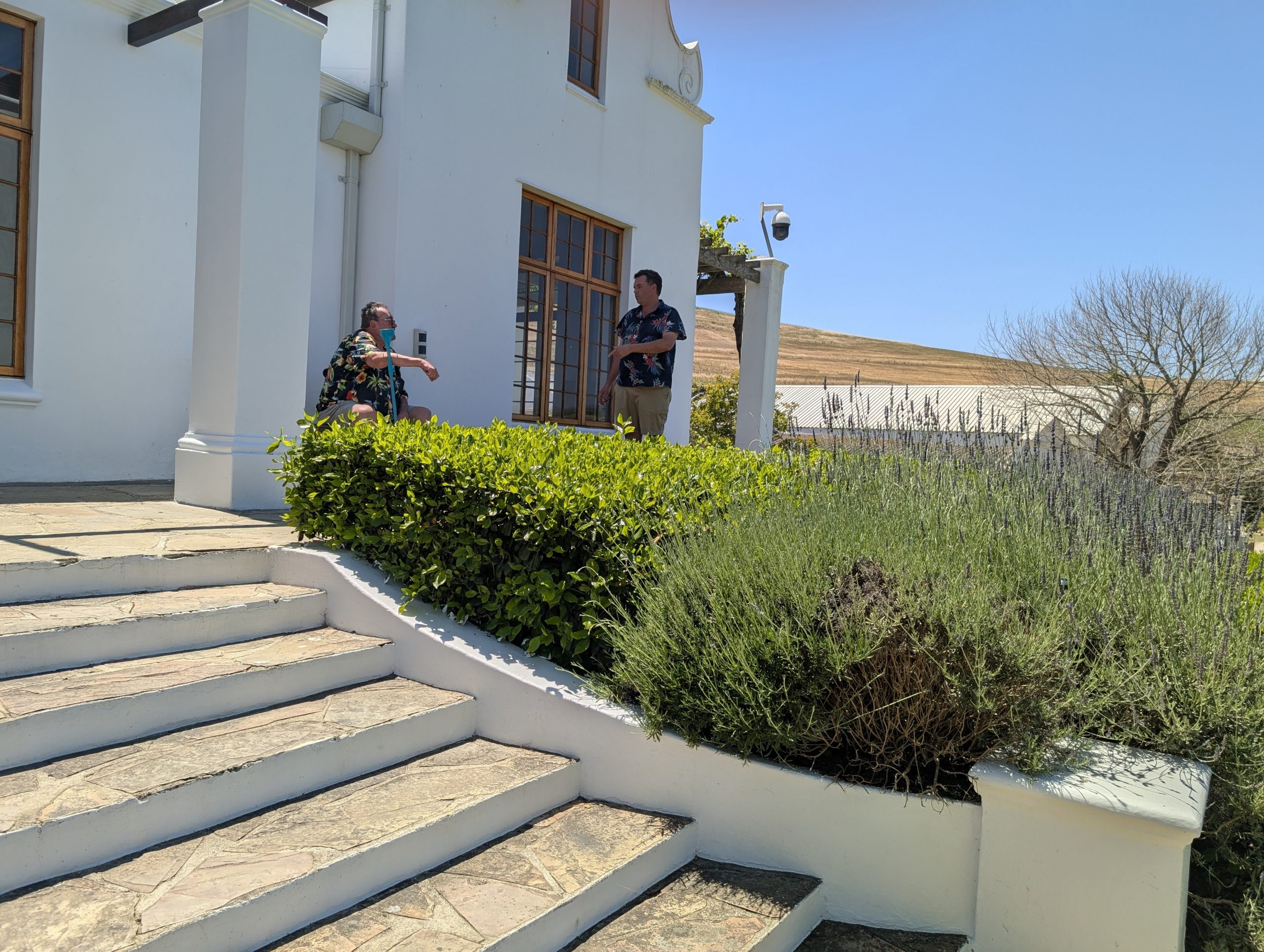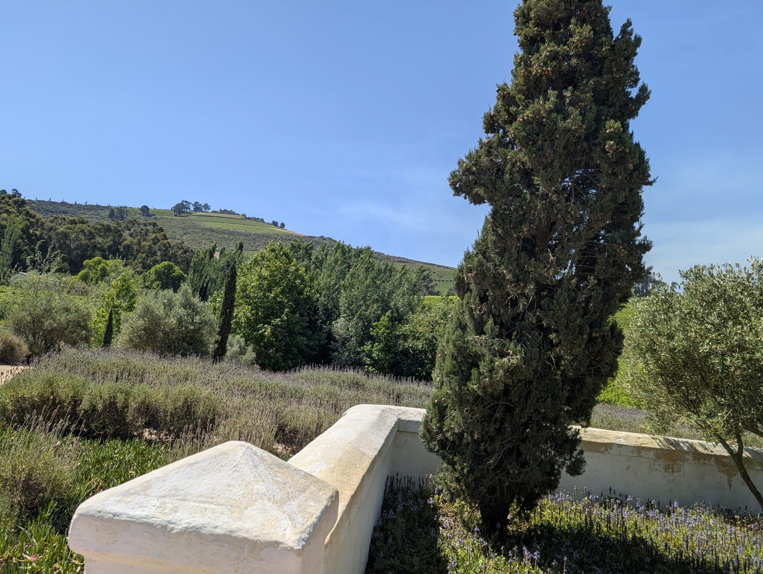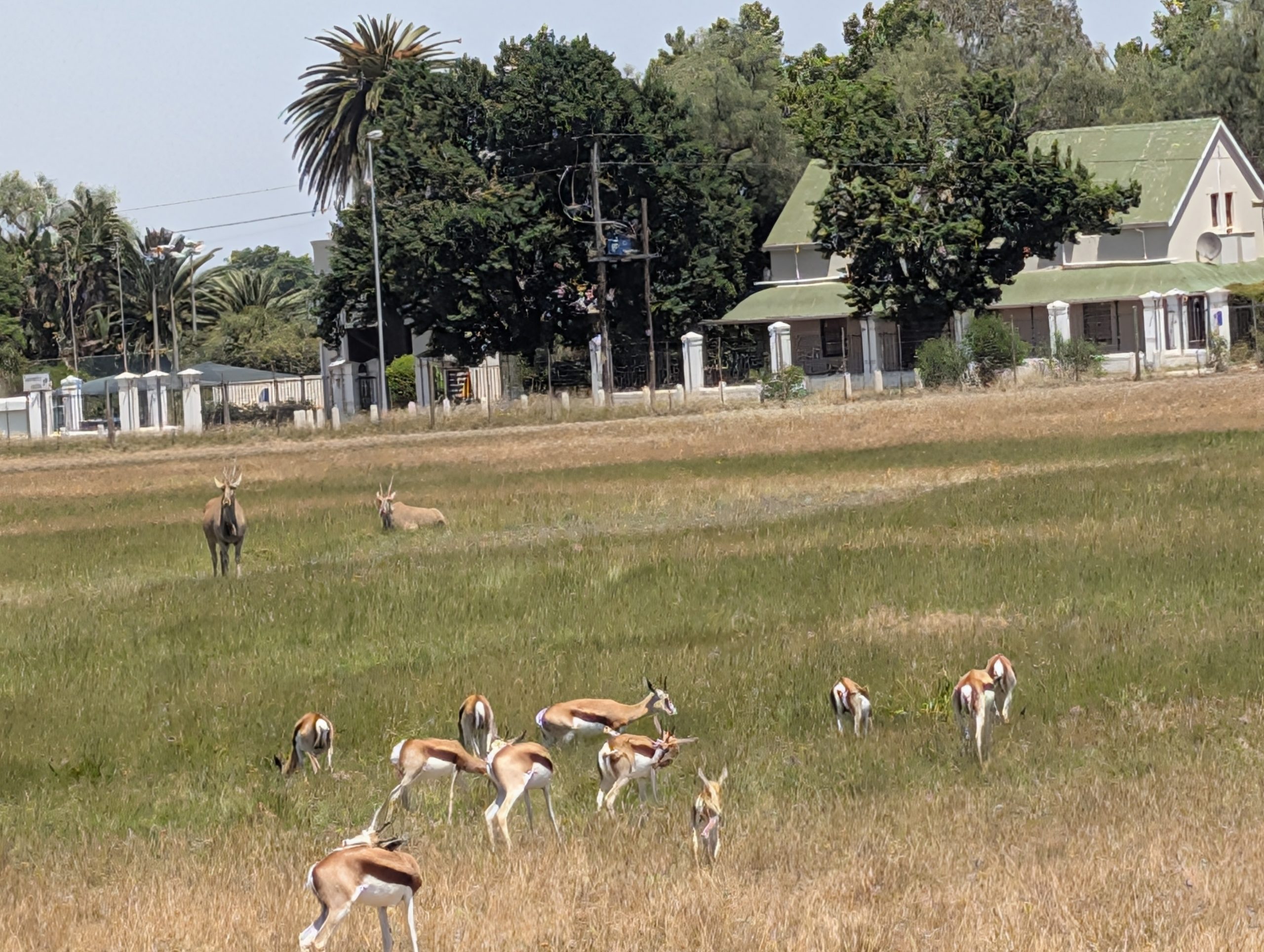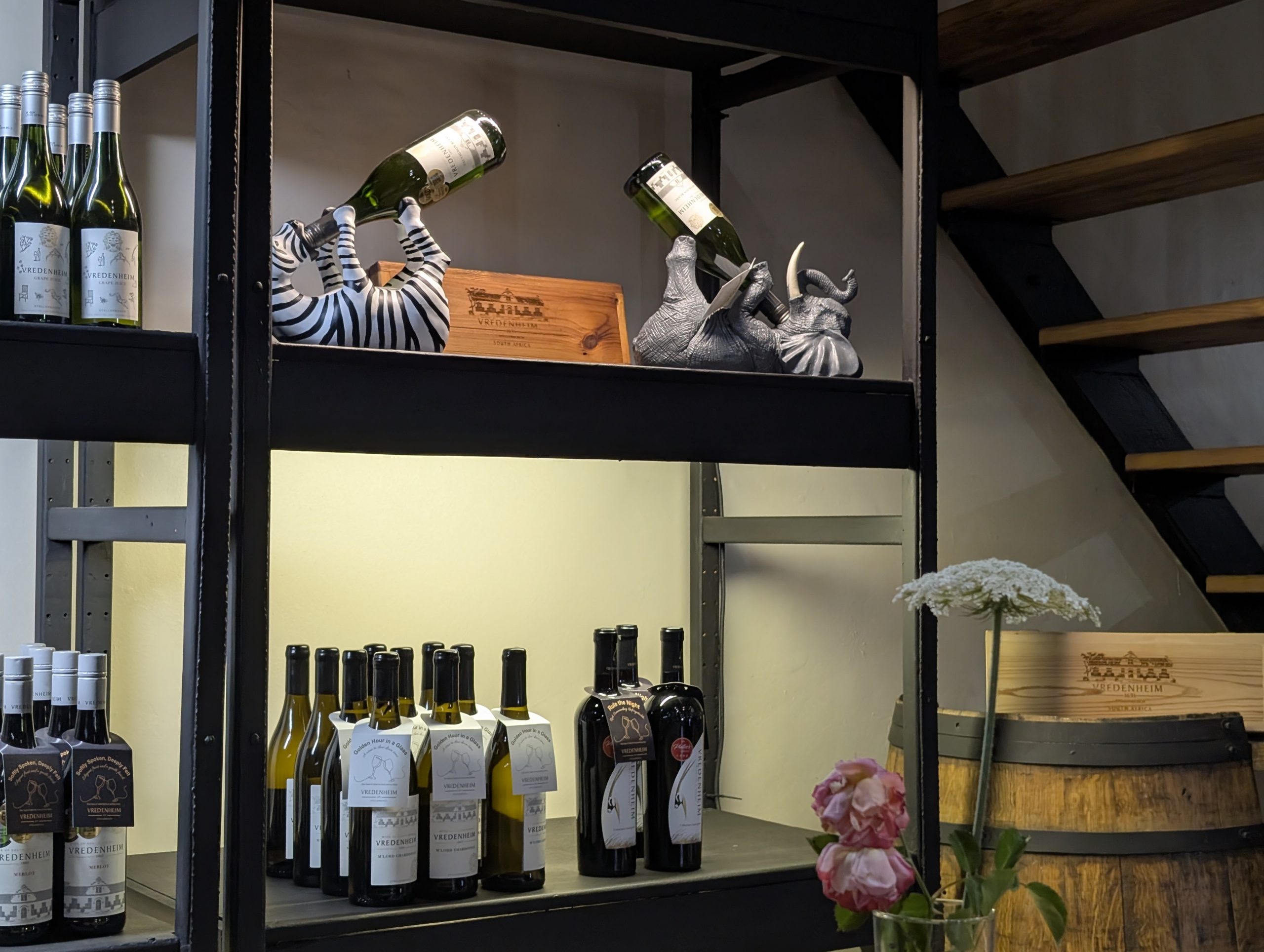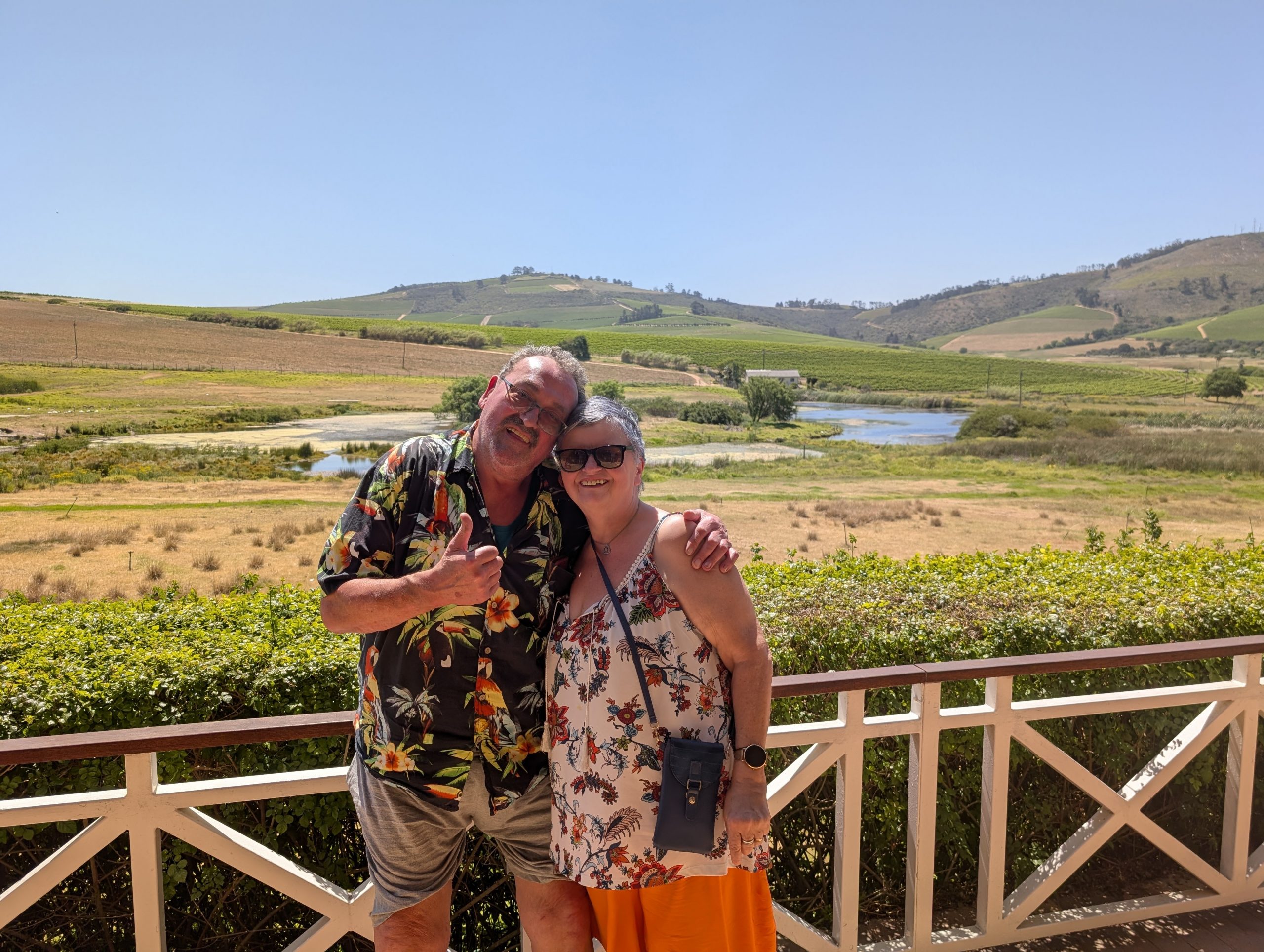 Melanie hat uns mitgeteilt, dass wir heute schon ¼ Stunde eher abgeholt werden. Leider haben wir es auch ein wenig verschlafen. Nun haben wir es eilig zum Frühstück zu kommen. Kaum haben wir uns gesetzt, kam einer auf mich zu. Ich fragte ihn, ob er unser Driver ist, er bejahte. Es war doch erst ¼ 10, also haben wir noch eine ½ Stunde. Das Frühstück war fantastisch. ¾10 kam ein weißer auf mich zu und fragte mich, ob ich Monika bin. Da habe ich ihn gefragt, ob er unser Driver ist und er hat ja gesagt. Wir fuhren zu einer anderen Lodge, die auch schon ein Weingut war. Dort stieg ein Ehepaar aus Hamburg ein, die auch mit Melanie unterwegs sind. Melanie hat im Vorfeld gefragt, ob wir was dagegen haben, wenn noch ein Paar mitfährt. Wir waren damit einverstanden und bekamen 40€ wieder zurück. Wir fuhren erstmal zum Weingut Grangehurst. Es war ein fantastisches Weingut. Wir bekamen 4 Weine zum probieren. Die Frau erklärte uns, dass in unmittelbarer Nähe in erster Linie der Pinotage angebaut wird, da er eine ganz besondere Note hat. Ich war eigentlich schon nach dem ersten Glas hin. Der letzte war 17 Jahre alt aus dem Jahr 2008. Dann ging es zum nächsten Gut, das, Reyneke. Es befindet sich gerade viel im Umbau, doch das Herrenhaus konnte Gäste zur Weinprobe empfangen. Hier baut man sehr auf Nachhaltigkeit und baut alles mit Hilfe von Tieren biologisch an. Von ihr haben wir erfahren, dass das Holz für die Weinfässer unbedingt französische Eiche sein muss. Die südafrikanische Eiche eignet sich dafür, weil sie zu schnell wächst. Auch hat die Kork Industrie Probleme, deswegen steigt man auf Glasverschlüsse um.