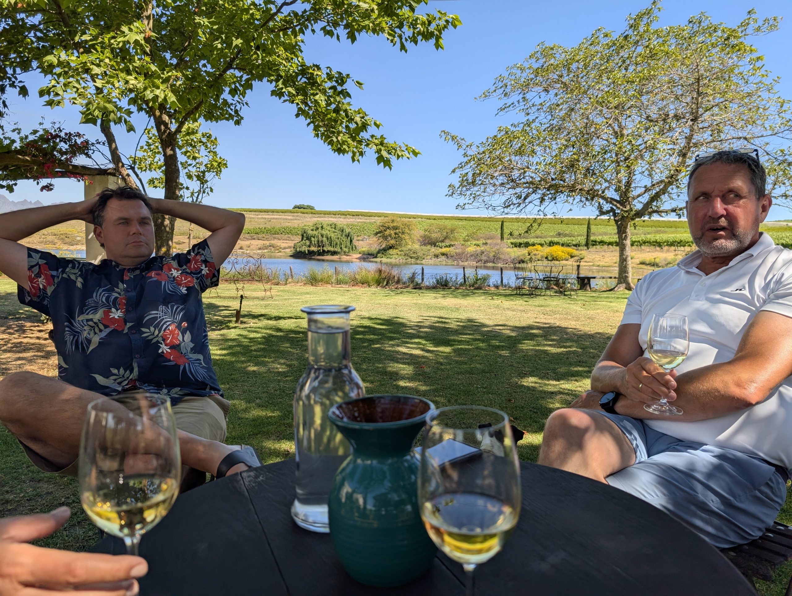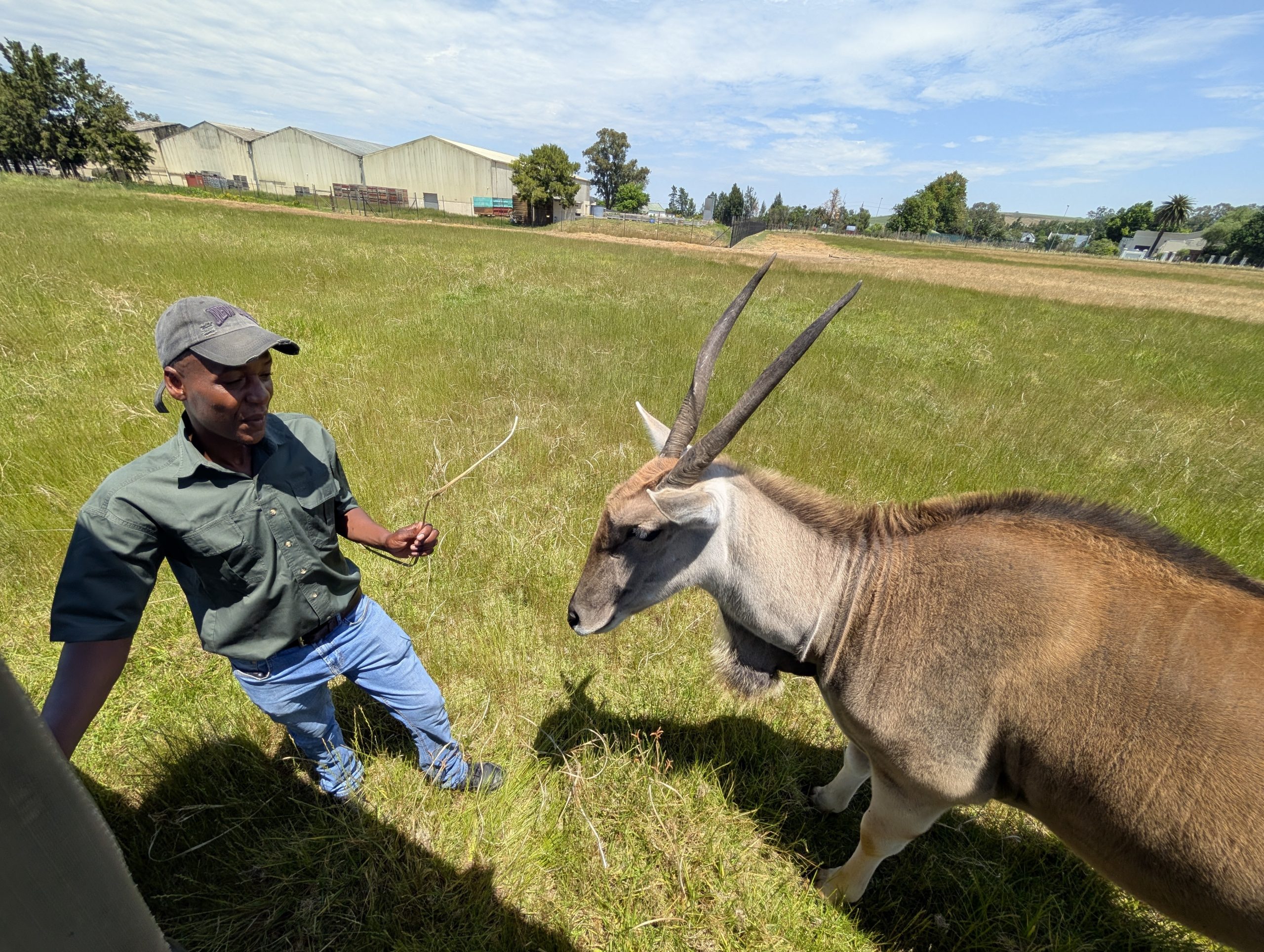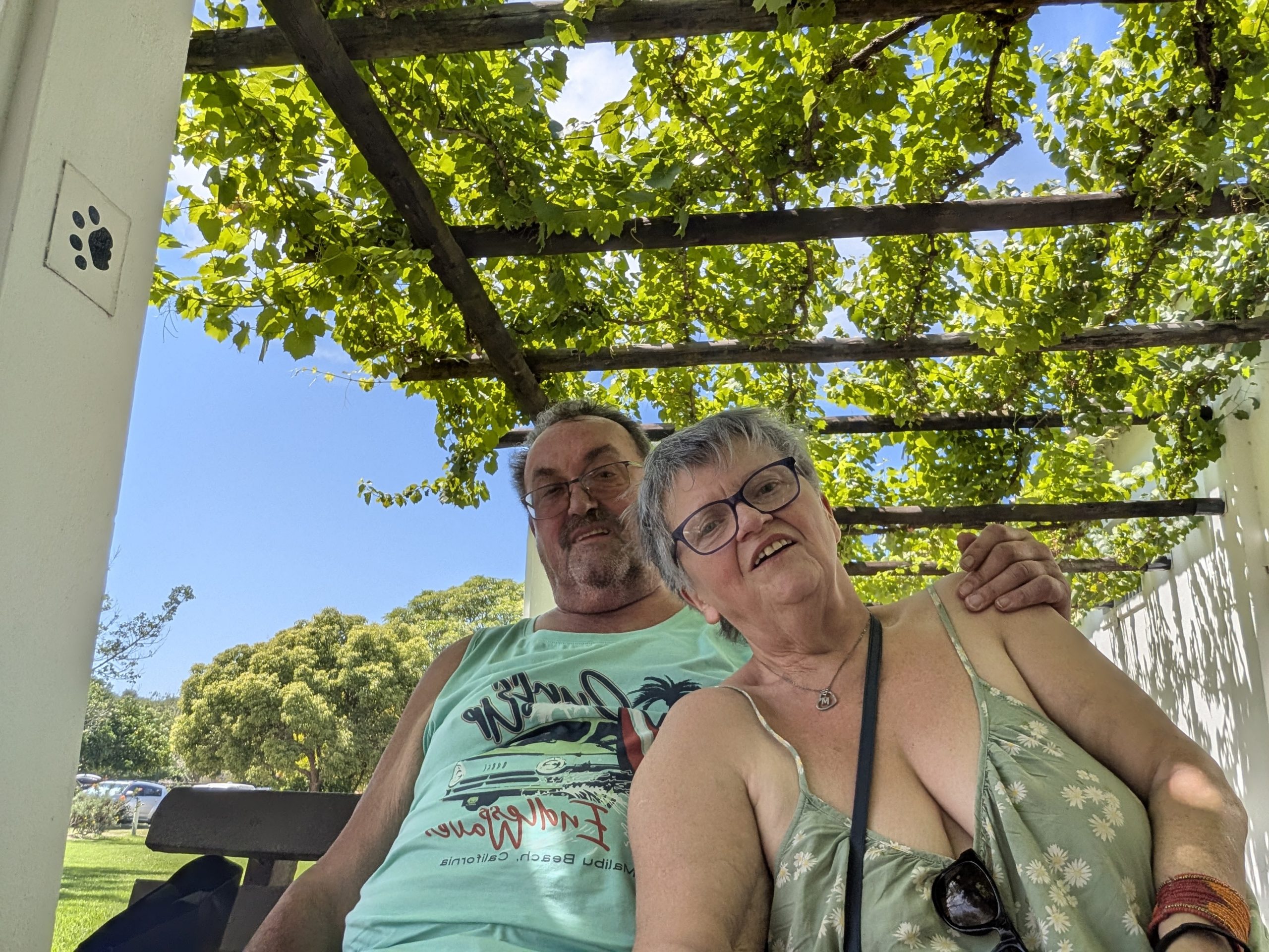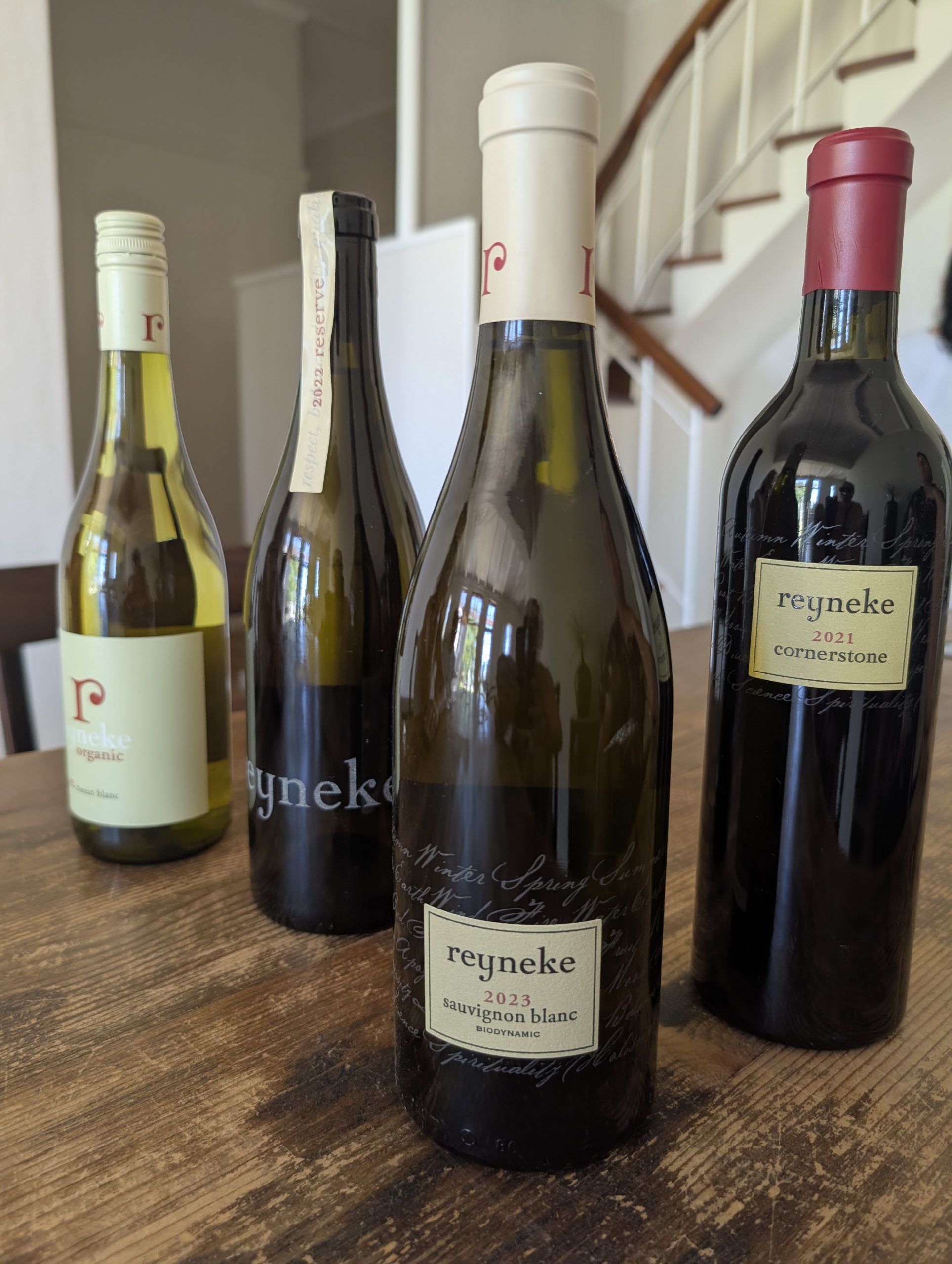 Melanie hat uns mitgeteilt, dass wir heute schon ¼ Stunde eher abgeholt werden. Leider haben wir es auch ein wenig verschlafen. Nun haben wir es eilig zum Frühstück zu kommen. Kaum haben wir uns gesetzt, kam einer auf mich zu. Ich fragte ihn, ob er unser Driver ist, er bejahte. Es war doch erst ¼ 10, also haben wir noch eine ½ Stunde. Das Frühstück war fantastisch. ¾10 kam ein weißer auf mich zu und fragte mich, ob ich Monika bin. Da habe ich ihn gefragt, ob er unser Driver ist und er hat ja gesagt. Wir fuhren zu einer anderen Lodge, die auch schon ein Weingut war. Dort stieg ein Ehepaar aus Hamburg ein, die auch mit Melanie unterwegs sind. Melanie hat im Vorfeld gefragt, ob wir was dagegen haben, wenn noch ein Paar mitfährt. Wir waren damit einverstanden und bekamen 40€ wieder zurück. Wir fuhren erstmal zum Weingut Grangehurst. Es war ein fantastisches Weingut. Wir bekamen 4 Weine zum probieren. Die Frau erklärte uns, dass in unmittelbarer Nähe in erster Linie der Pinotage angebaut wird, da er eine ganz besondere Note hat. Ich war eigentlich schon nach dem ersten Glas hin. Der letzte war 17 Jahre alt aus dem Jahr 2008. Dann ging es zum nächsten Gut, das, Reyneke. Es befindet sich gerade viel im Umbau, doch das Herrenhaus konnte Gäste zur Weinprobe empfangen. Hier baut man sehr auf Nachhaltigkeit und baut alles mit Hilfe von Tieren biologisch an. Von ihr haben wir erfahren, dass das Holz für die Weinfässer unbedingt französische Eiche sein muss. Die südafrikanische Eiche eignet sich dafür, weil sie zu schnell wächst. Auch hat die Kork Industrie Probleme, deswegen steigt man auf Glasverschlüsse um.