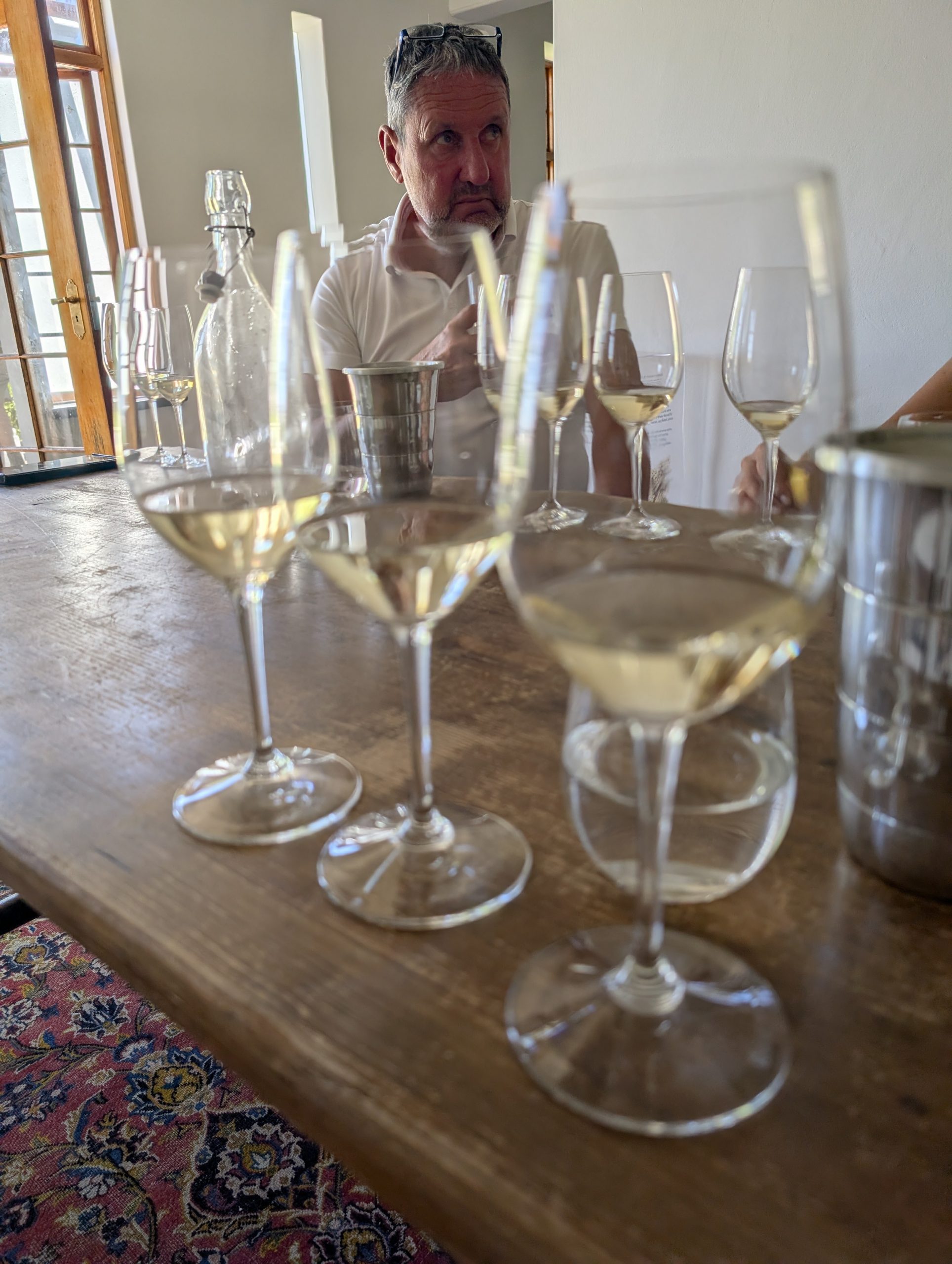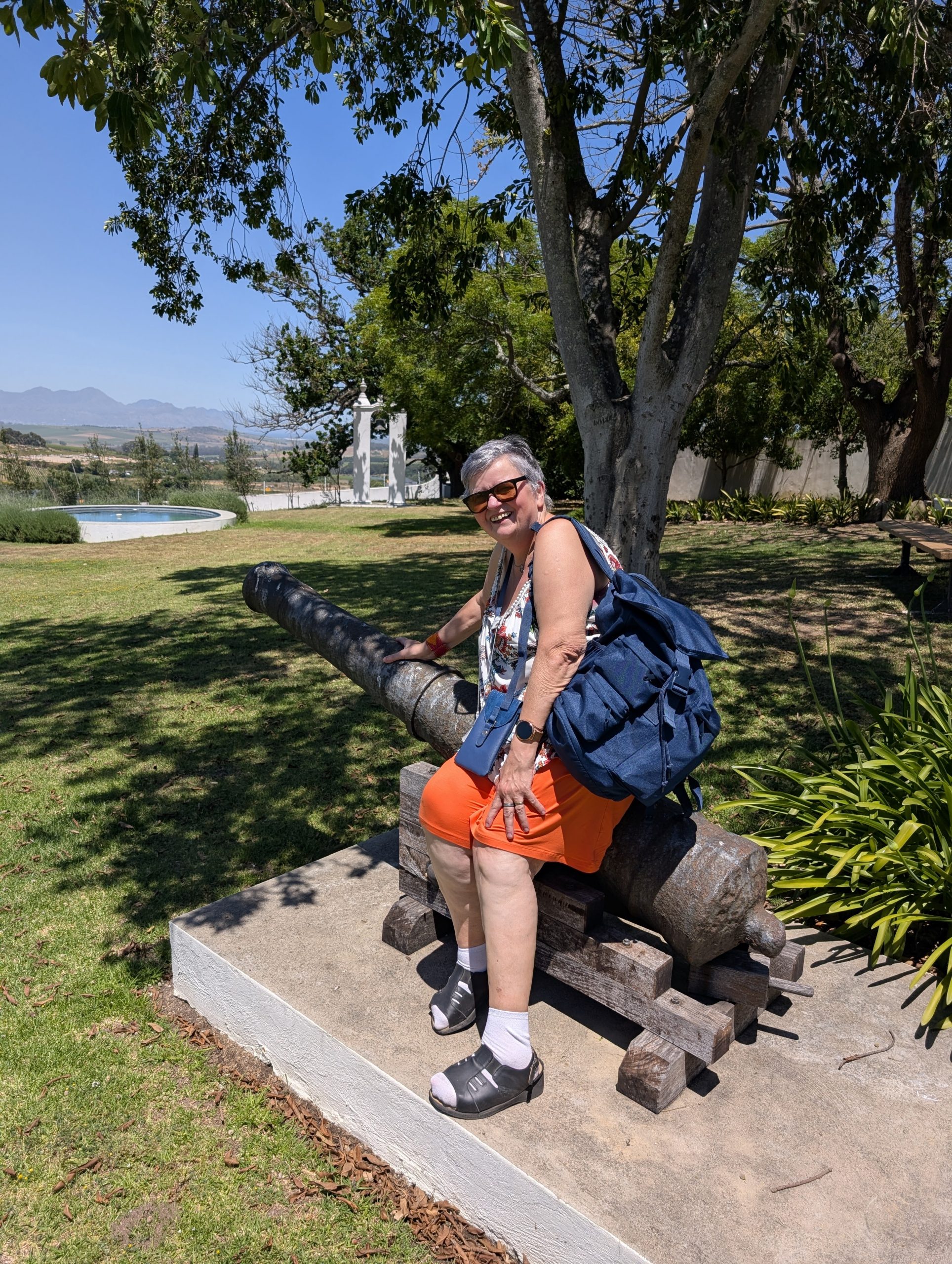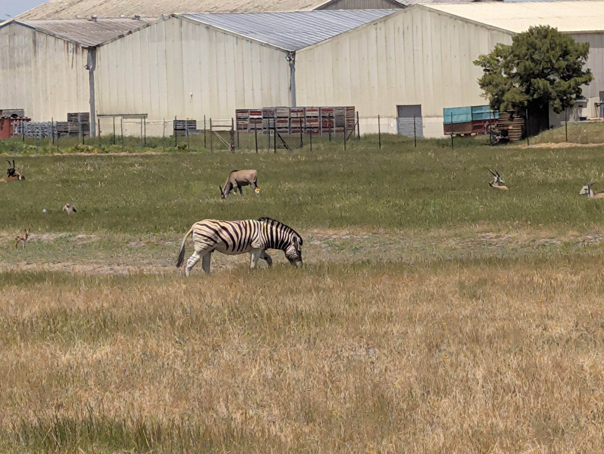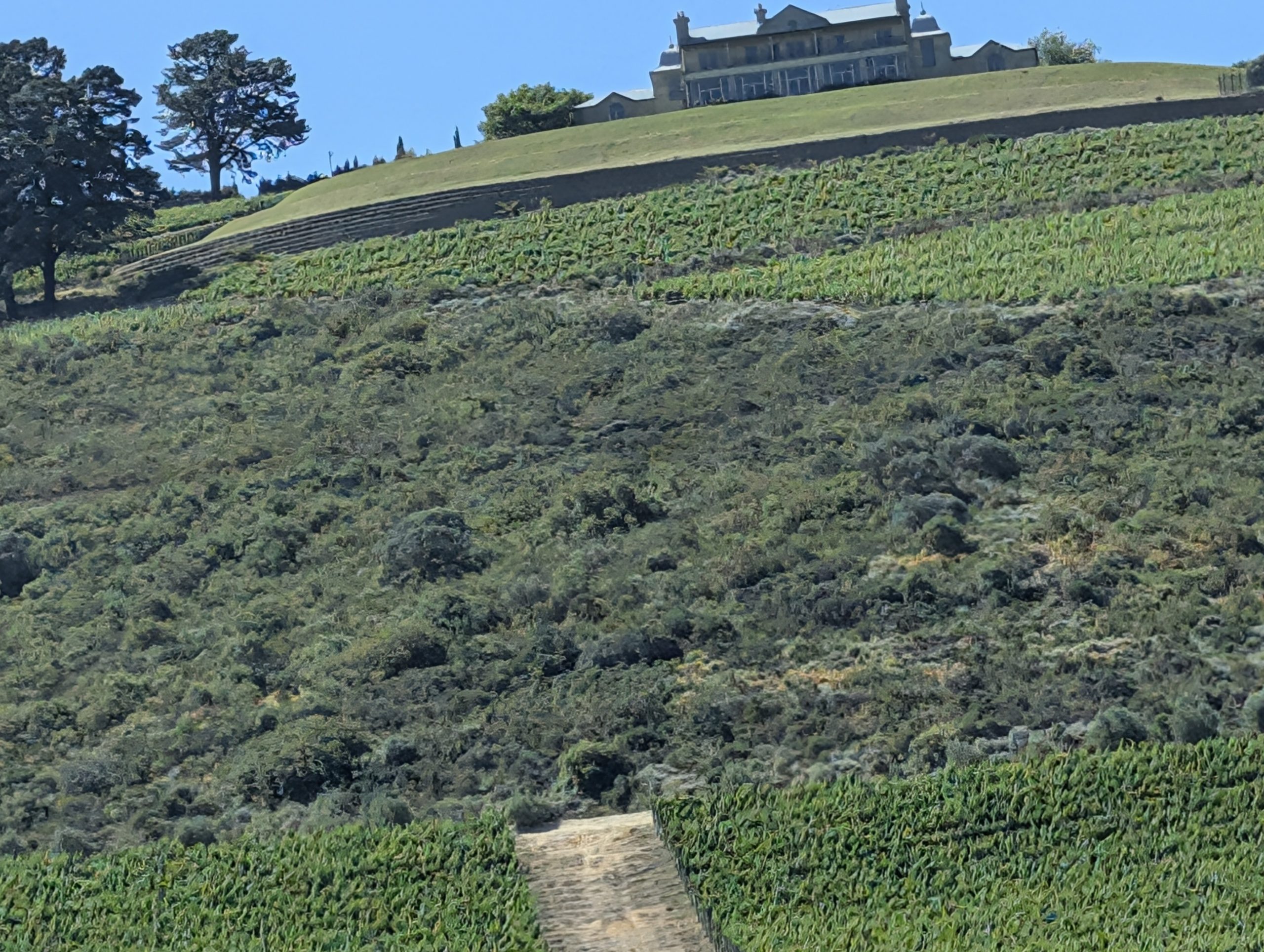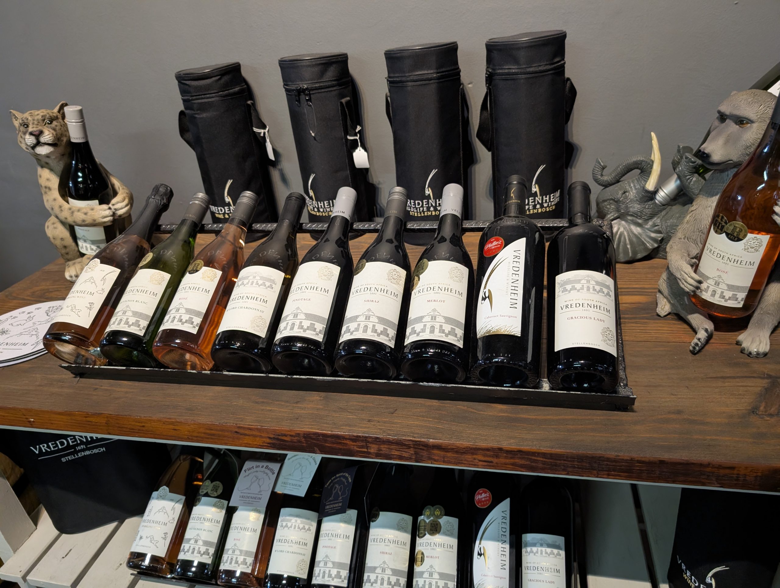 Melanie hat uns mitgeteilt, dass wir heute schon ¼ Stunde eher abgeholt werden. Leider haben wir es auch ein wenig verschlafen. Nun haben wir es eilig zum Frühstück zu kommen. Kaum haben wir uns gesetzt, kam einer auf mich zu. Ich fragte ihn, ob er unser Driver ist, er bejahte. Es war doch erst ¼ 10, also haben wir noch eine ½ Stunde. Das Frühstück war fantastisch. ¾10 kam ein weißer auf mich zu und fragte mich, ob ich Monika bin. Da habe ich ihn gefragt, ob er unser Driver ist und er hat ja gesagt. Wir fuhren zu einer anderen Lodge, die auch schon ein Weingut war. Dort stieg ein Ehepaar aus Hamburg ein, die auch mit Melanie unterwegs sind. Melanie hat im Vorfeld gefragt, ob wir was dagegen haben, wenn noch ein Paar mitfährt. Wir waren damit einverstanden und bekamen 40€ wieder zurück. Wir fuhren erstmal zum Weingut Grangehurst. Es war ein fantastisches Weingut. Wir bekamen 4 Weine zum probieren. Die Frau erklärte uns, dass in unmittelbarer Nähe in erster Linie der Pinotage angebaut wird, da er eine ganz besondere Note hat. Ich war eigentlich schon nach dem ersten Glas hin. Der letzte war 17 Jahre alt aus dem Jahr 2008. Dann ging es zum nächsten Gut, das, Reyneke. Es befindet sich gerade viel im Umbau, doch das Herrenhaus konnte Gäste zur Weinprobe empfangen. Hier baut man sehr auf Nachhaltigkeit und baut alles mit Hilfe von Tieren biologisch an. Von ihr haben wir erfahren, dass das Holz für die Weinfässer unbedingt französische Eiche sein muss. Die südafrikanische Eiche eignet sich dafür, weil sie zu schnell wächst. Auch hat die Kork Industrie Probleme, deswegen steigt man auf Glasverschlüsse um.