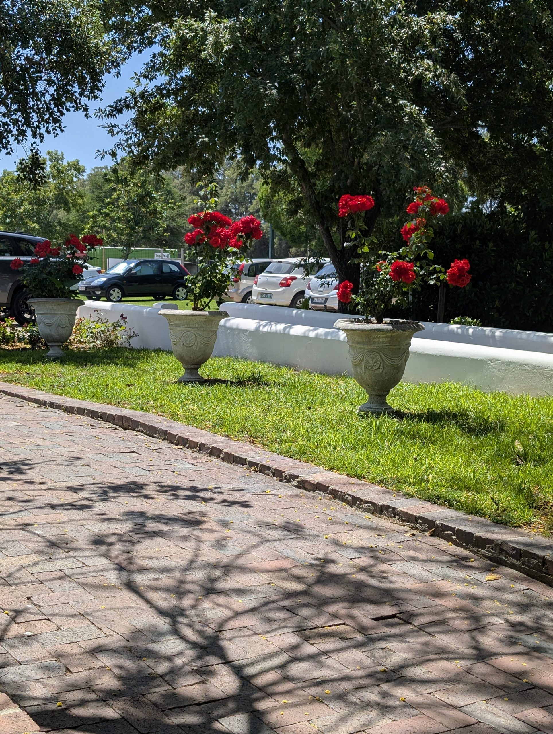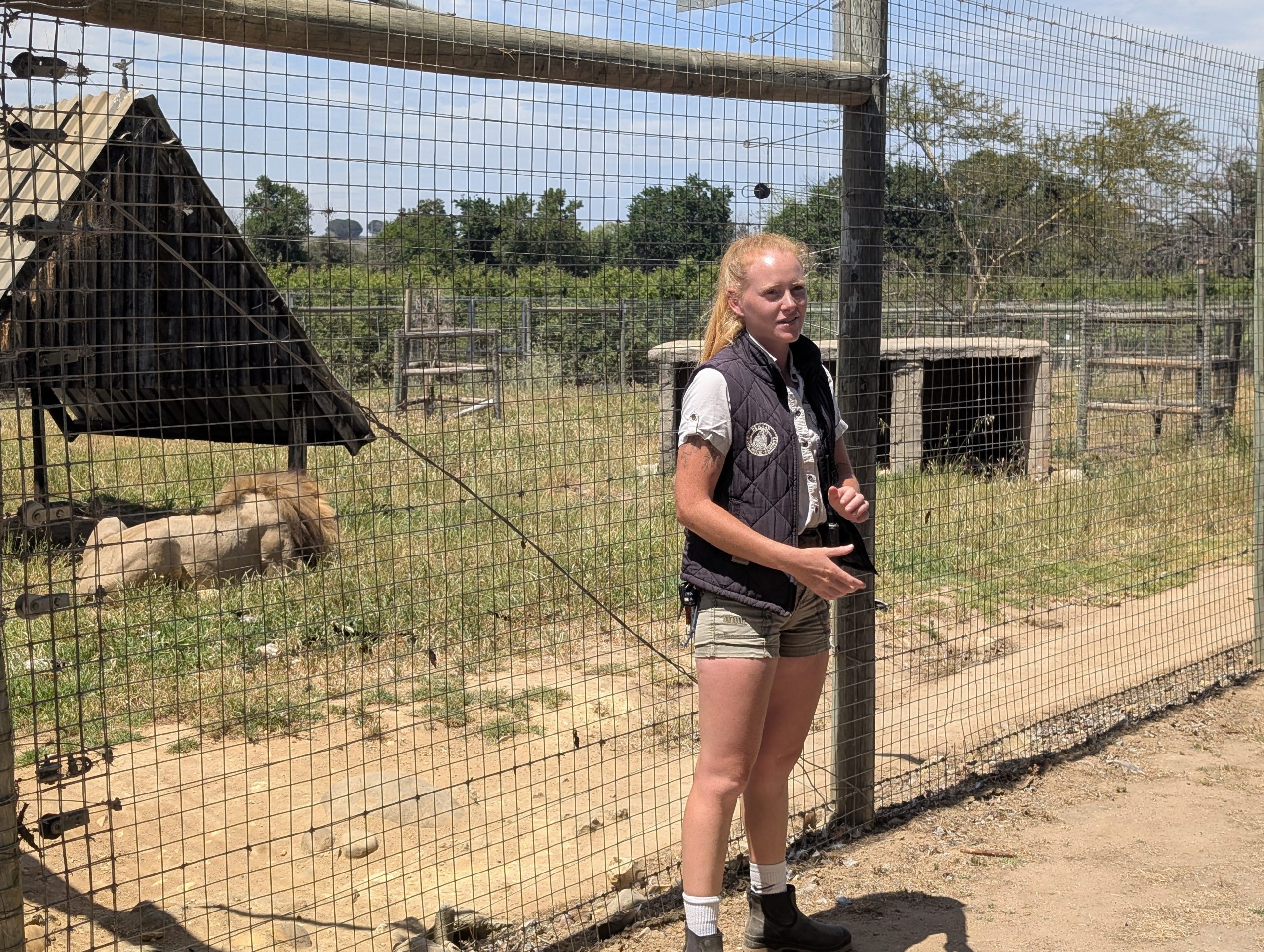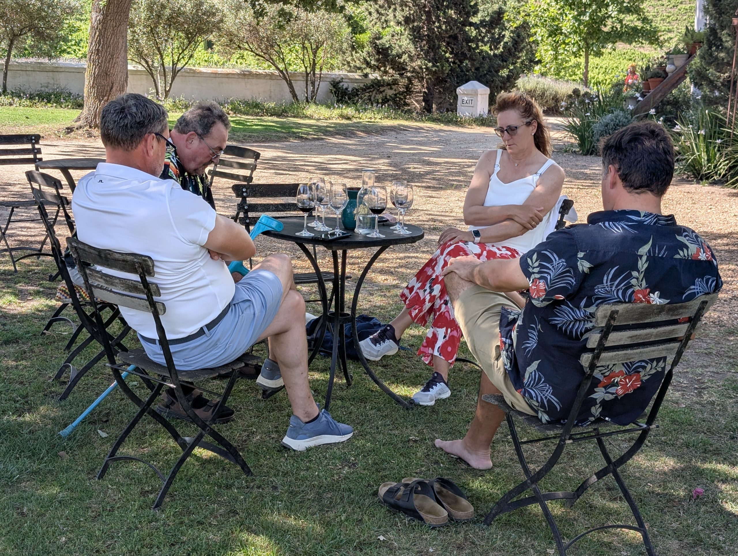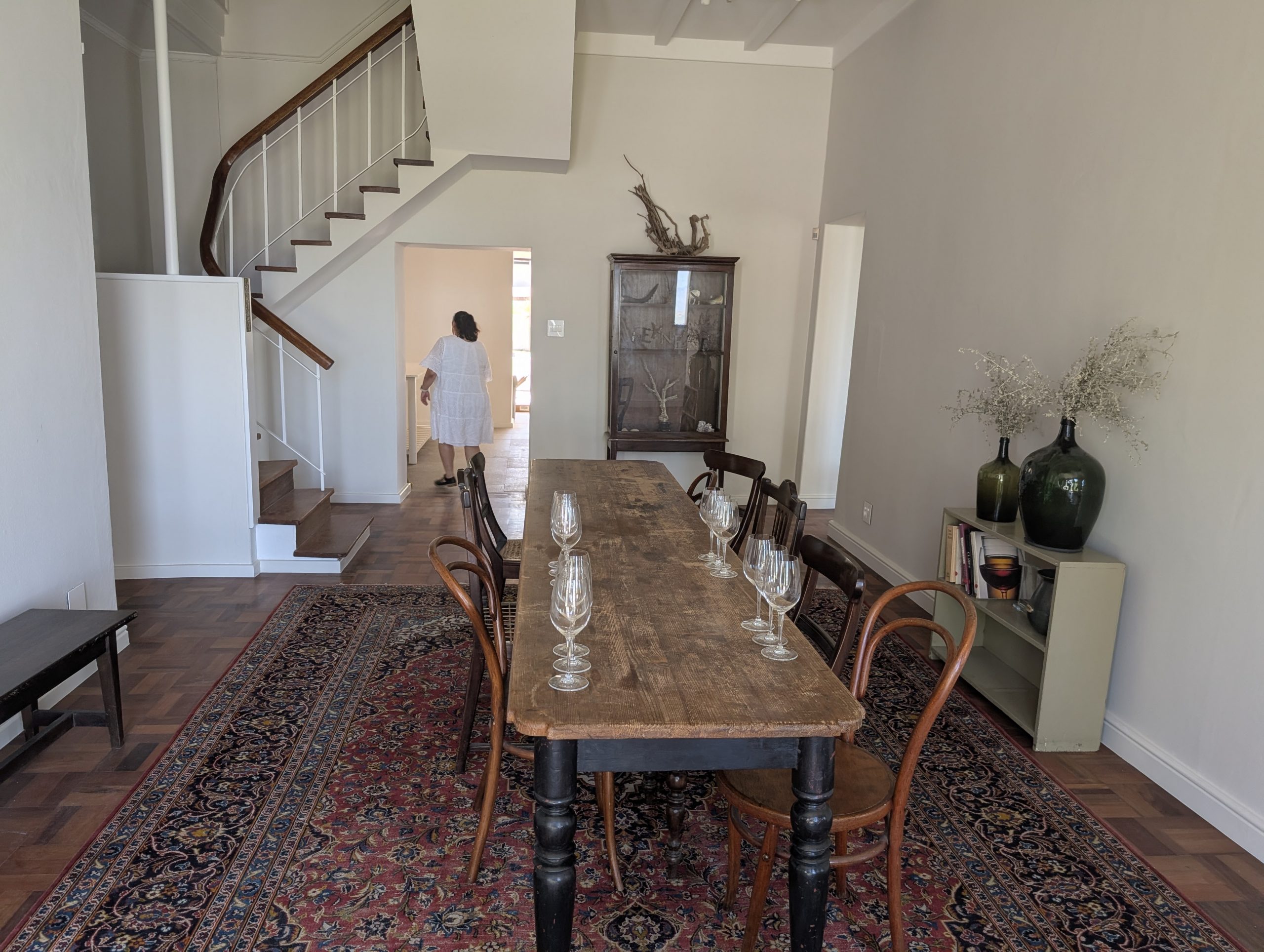 Melanie hat uns mitgeteilt, dass wir heute schon ¼ Stunde eher abgeholt werden. Leider haben wir es auch ein wenig verschlafen. Nun haben wir es eilig zum Frühstück zu kommen. Kaum haben wir uns gesetzt, kam einer auf mich zu. Ich fragte ihn, ob er unser Driver ist, er bejahte. Es war doch erst ¼ 10, also haben wir noch eine ½ Stunde. Das Frühstück war fantastisch. ¾10 kam ein weißer auf mich zu und fragte mich, ob ich Monika bin. Da habe ich ihn gefragt, ob er unser Driver ist und er hat ja gesagt. Wir fuhren zu einer anderen Lodge, die auch schon ein Weingut war. Dort stieg ein Ehepaar aus Hamburg ein, die auch mit Melanie unterwegs sind. Melanie hat im Vorfeld gefragt, ob wir was dagegen haben, wenn noch ein Paar mitfährt. Wir waren damit einverstanden und bekamen 40€ wieder zurück. Wir fuhren erstmal zum Weingut Grangehurst. Es war ein fantastisches Weingut. Wir bekamen 4 Weine zum probieren. Die Frau erklärte uns, dass in unmittelbarer Nähe in erster Linie der Pinotage angebaut wird, da er eine ganz besondere Note hat. Ich war eigentlich schon nach dem ersten Glas hin. Der letzte war 17 Jahre alt aus dem Jahr 2008. Dann ging es zum nächsten Gut, das, Reyneke. Es befindet sich gerade viel im Umbau, doch das Herrenhaus konnte Gäste zur Weinprobe empfangen. Hier baut man sehr auf Nachhaltigkeit und baut alles mit Hilfe von Tieren biologisch an. Von ihr haben wir erfahren, dass das Holz für die Weinfässer unbedingt französische Eiche sein muss. Die südafrikanische Eiche eignet sich dafür, weil sie zu schnell wächst. Auch hat die Kork Industrie Probleme, deswegen steigt man auf Glasverschlüsse um.