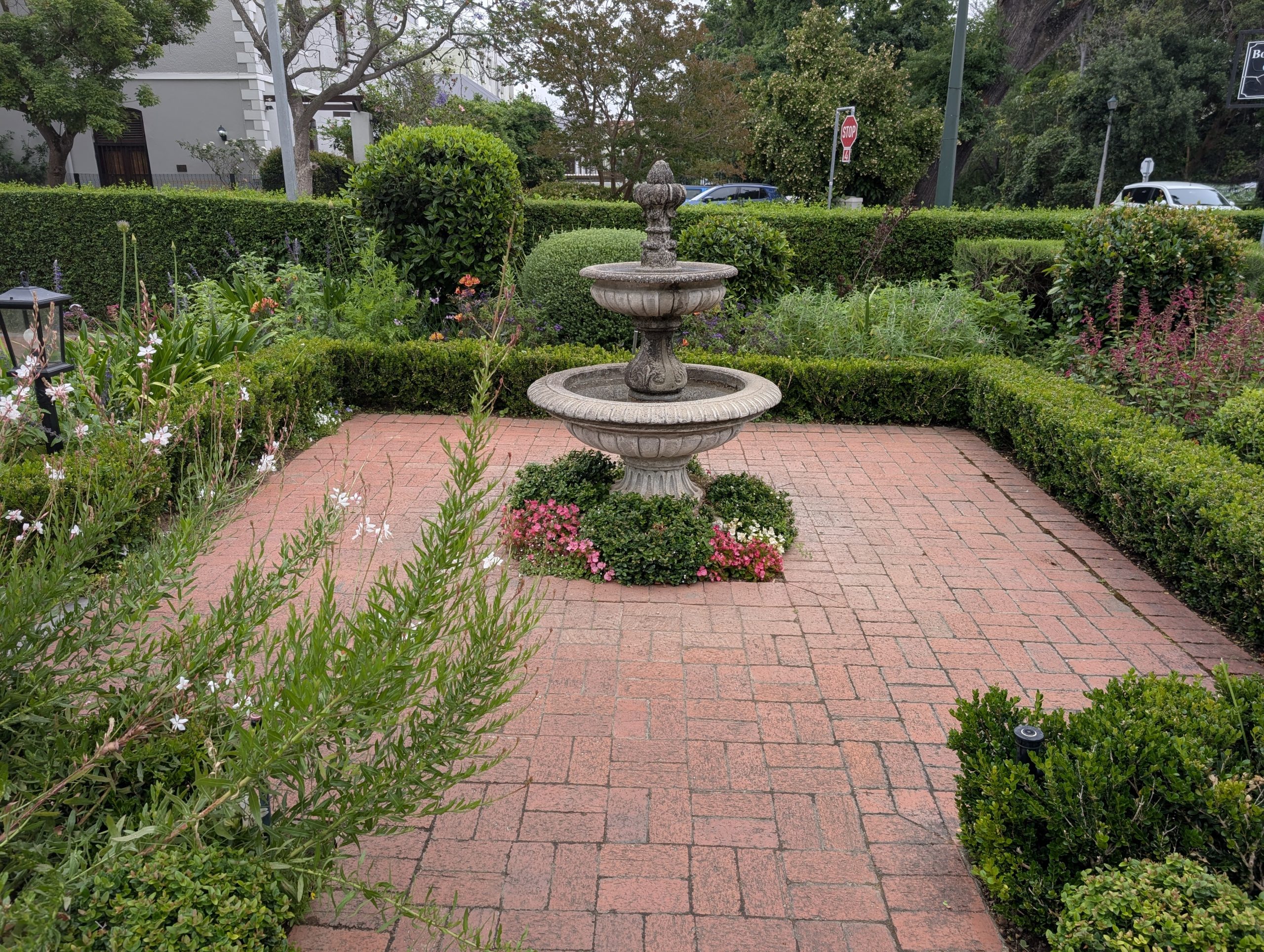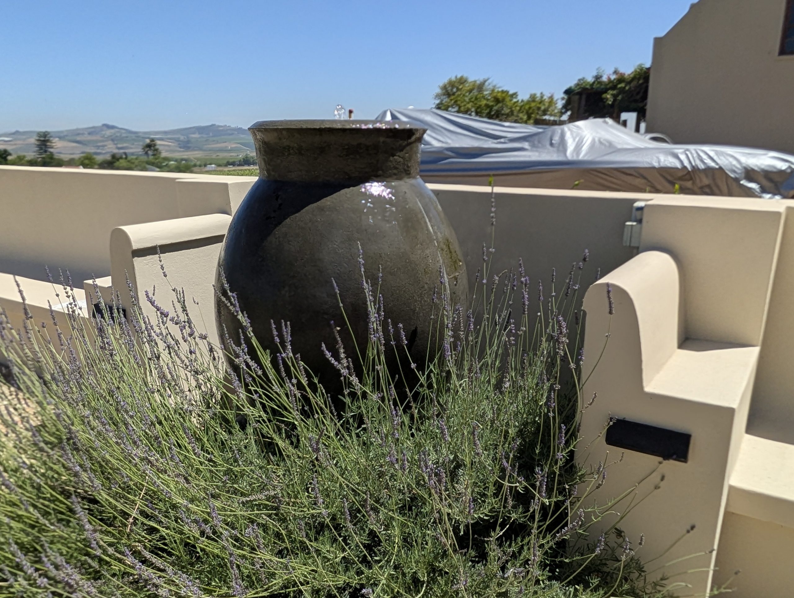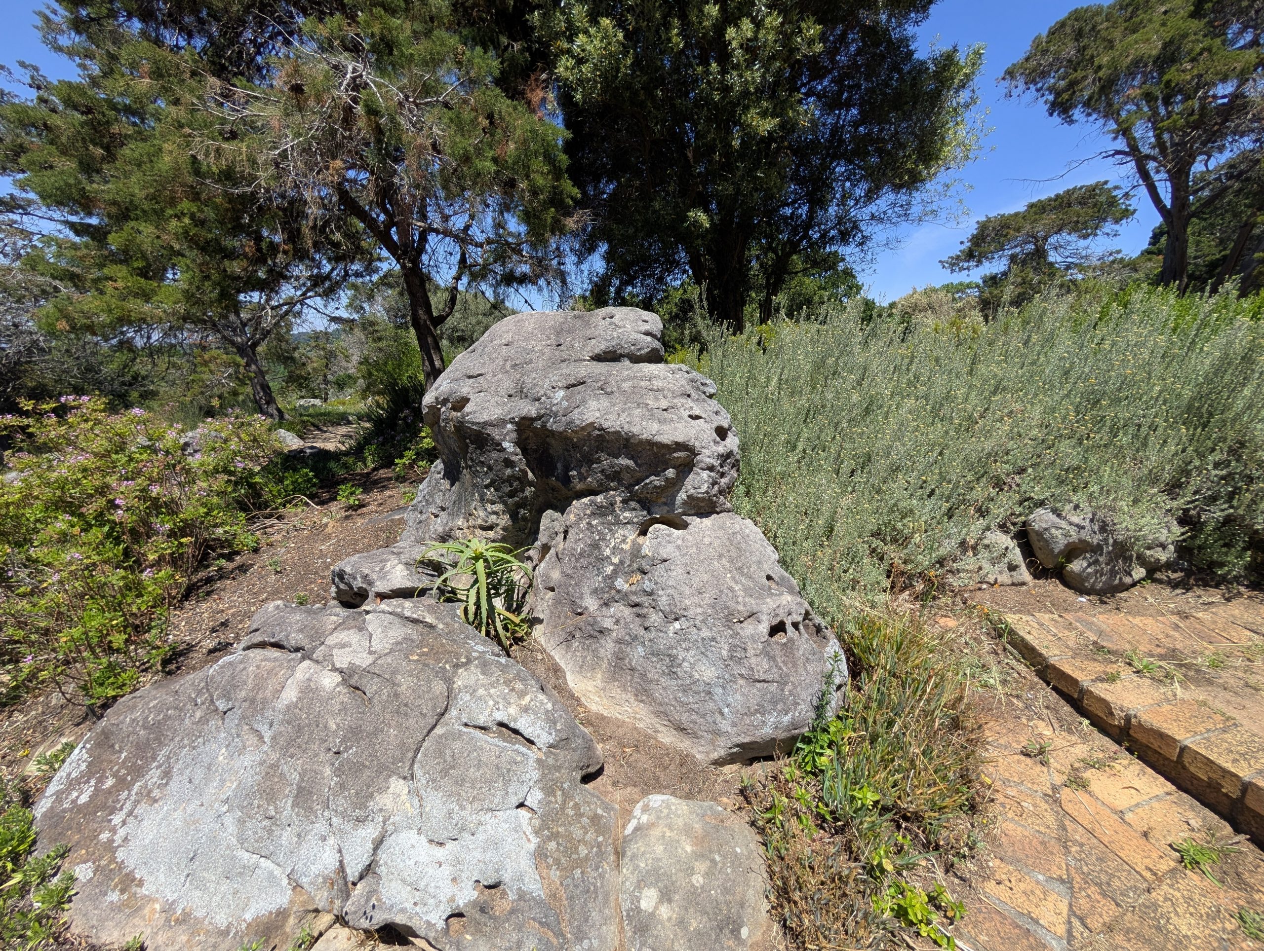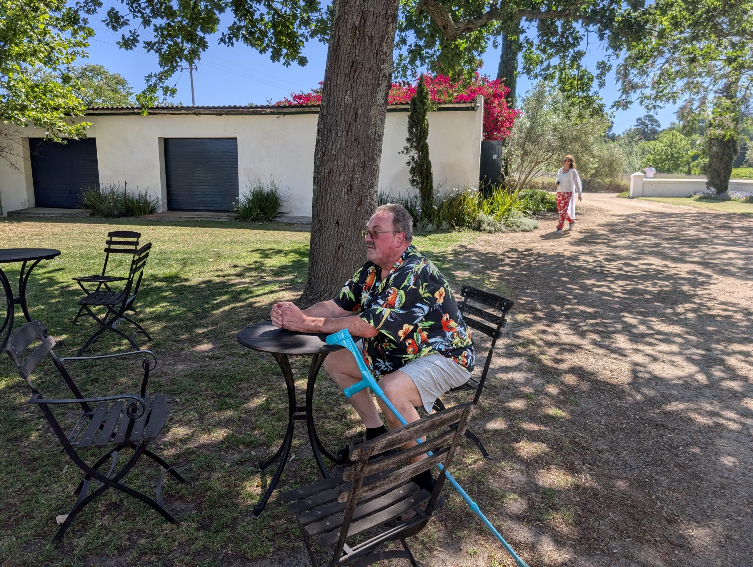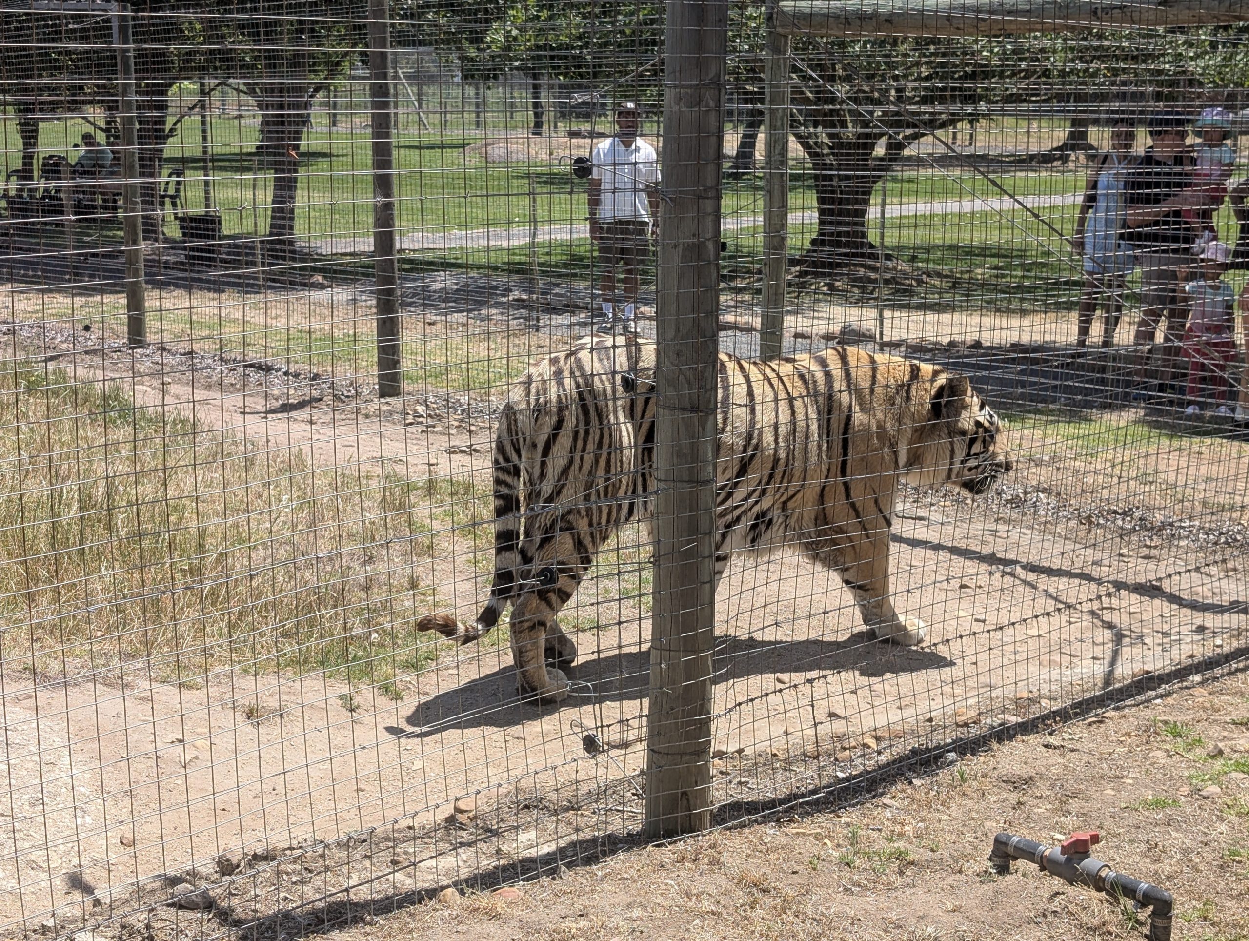 Melanie hat uns mitgeteilt, dass wir heute schon ¼ Stunde eher abgeholt werden. Leider haben wir es auch ein wenig verschlafen. Nun haben wir es eilig zum Frühstück zu kommen. Kaum haben wir uns gesetzt, kam einer auf mich zu. Ich fragte ihn, ob er unser Driver ist, er bejahte. Es war doch erst ¼ 10, also haben wir noch eine ½ Stunde. Das Frühstück war fantastisch. ¾10 kam ein weißer auf mich zu und fragte mich, ob ich Monika bin. Da habe ich ihn gefragt, ob er unser Driver ist und er hat ja gesagt. Wir fuhren zu einer anderen Lodge, die auch schon ein Weingut war. Dort stieg ein Ehepaar aus Hamburg ein, die auch mit Melanie unterwegs sind. Melanie hat im Vorfeld gefragt, ob wir was dagegen haben, wenn noch ein Paar mitfährt. Wir waren damit einverstanden und bekamen 40€ wieder zurück. Wir fuhren erstmal zum Weingut Grangehurst. Es war ein fantastisches Weingut. Wir bekamen 4 Weine zum probieren. Die Frau erklärte uns, dass in unmittelbarer Nähe in erster Linie der Pinotage angebaut wird, da er eine ganz besondere Note hat. Ich war eigentlich schon nach dem ersten Glas hin. Der letzte war 17 Jahre alt aus dem Jahr 2008. Dann ging es zum nächsten Gut, das, Reyneke. Es befindet sich gerade viel im Umbau, doch das Herrenhaus konnte Gäste zur Weinprobe empfangen. Hier baut man sehr auf Nachhaltigkeit und baut alles mit Hilfe von Tieren biologisch an. Von ihr haben wir erfahren, dass das Holz für die Weinfässer unbedingt französische Eiche sein muss. Die südafrikanische Eiche eignet sich dafür, weil sie zu schnell wächst. Auch hat die Kork Industrie Probleme, deswegen steigt man auf Glasverschlüsse um.