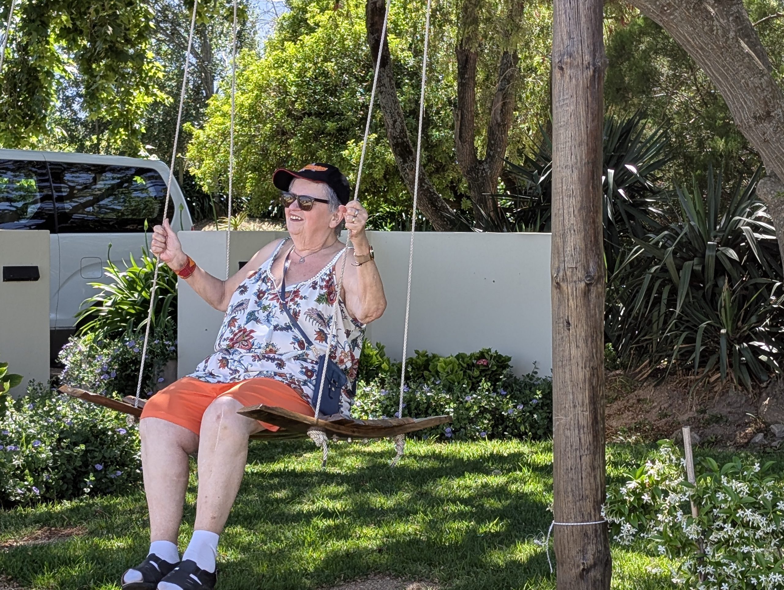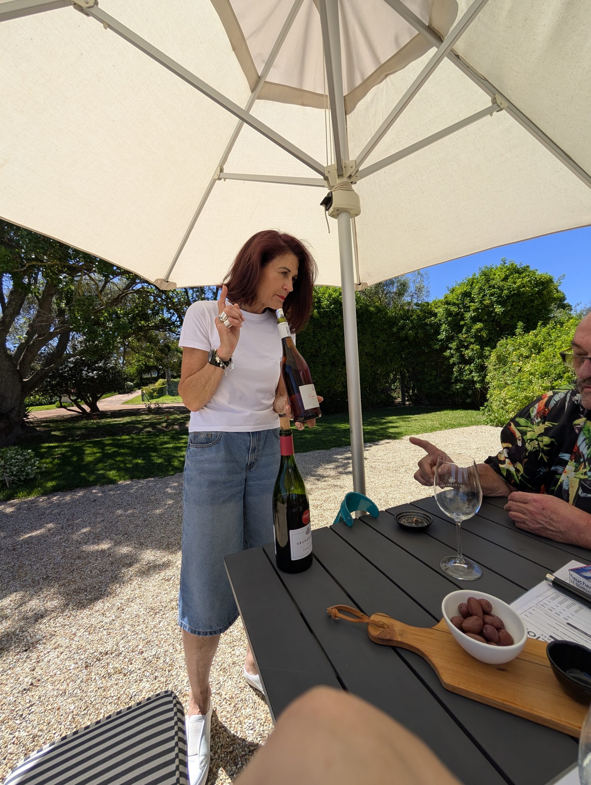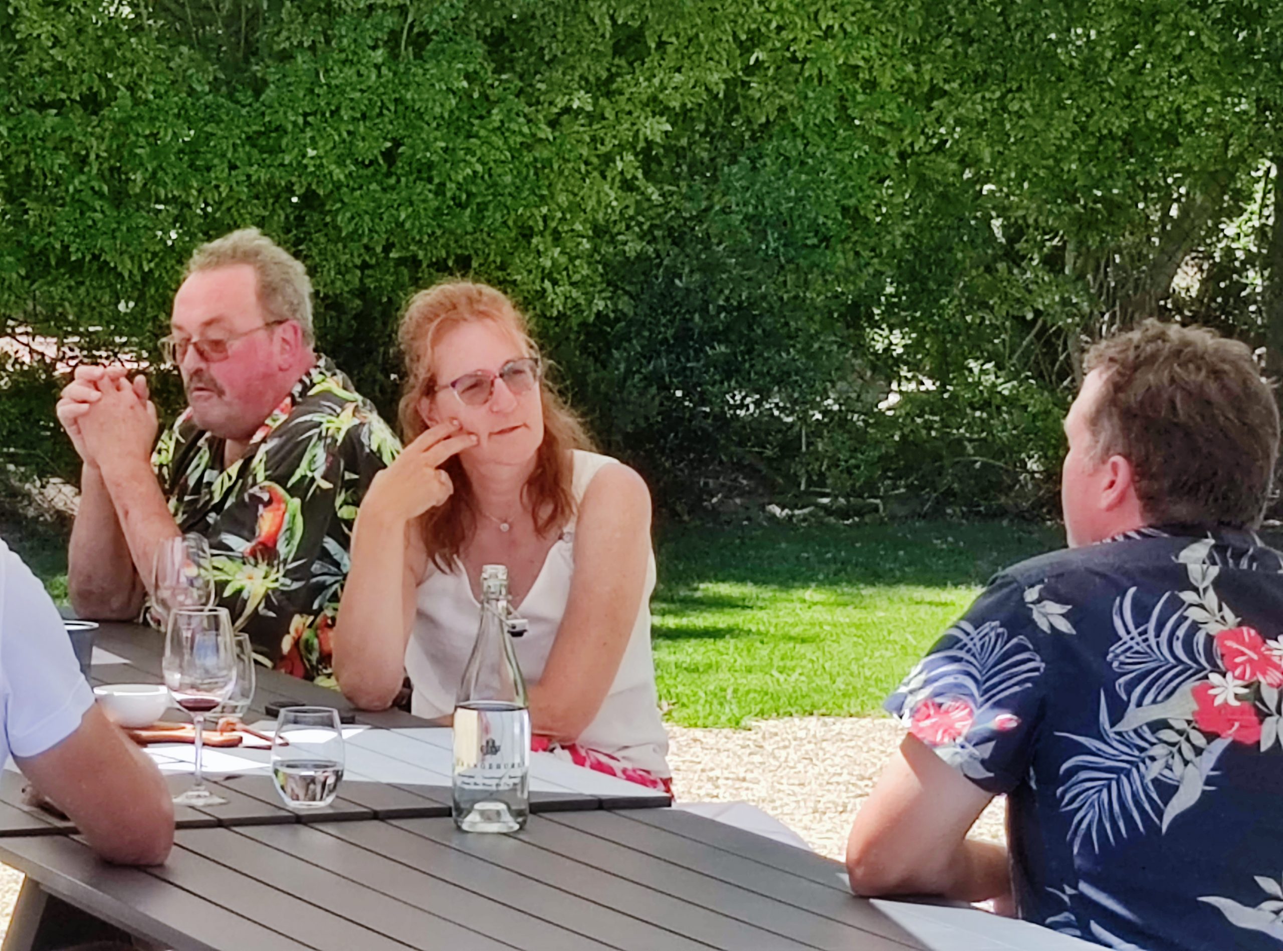 Nun ging es erstmal, zwar wieder ein Weingut, zum Mittagessen. Ich hatte erstmal genug vom Wein, die Hamburger haben sich zu Mittag wieder Wein bestellt. Sie haben zu zweit eine französische Käseplatte für 2 bestellt und wir jeder eine Pizza. Obwohl ich keine Pizza esserin bin, hat sie mir hervorragend geschmeckt. Das war aber soviel, dass wir sie uns einpacken ließen. Unser Fahrer war für 2 Stunden in seinem Büro verschwunden. Wir haben uns mit den Hamburgern über das Reisen ausgetauscht. Nach 2 Stunden ging es weiter zum letzten Weingut. Auch hier gab es 4 Proben. Langsam brauchte jeder zwischendurch viel Wasser. Der Wein kam langsam zum Ohren wieder raus. Nun war der Tag zu Ende. Wir wurden zuerst an unserer Lodge raus gelassen.