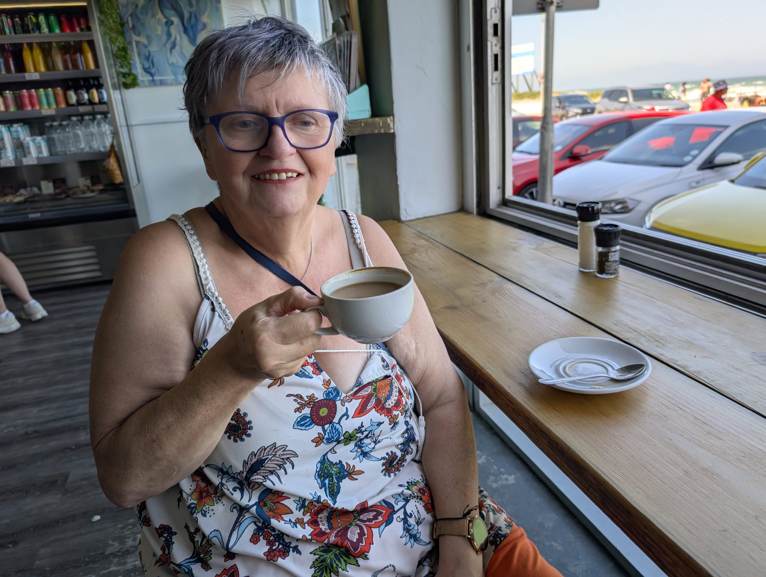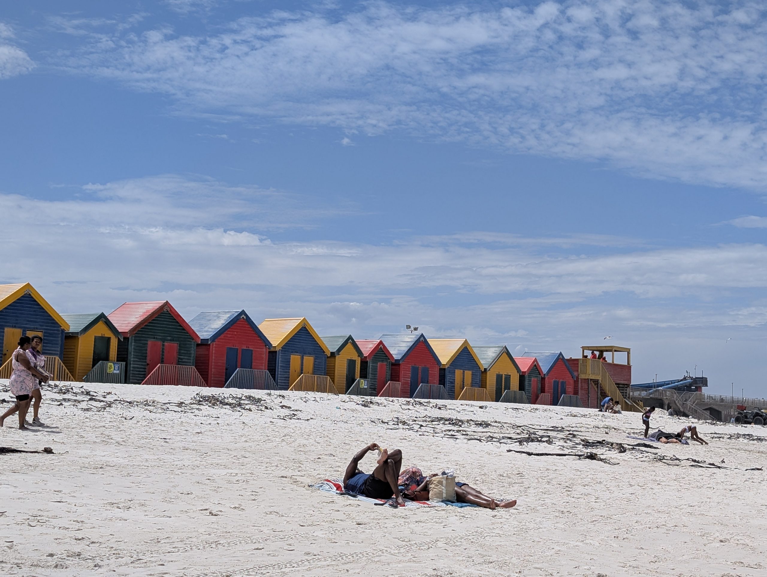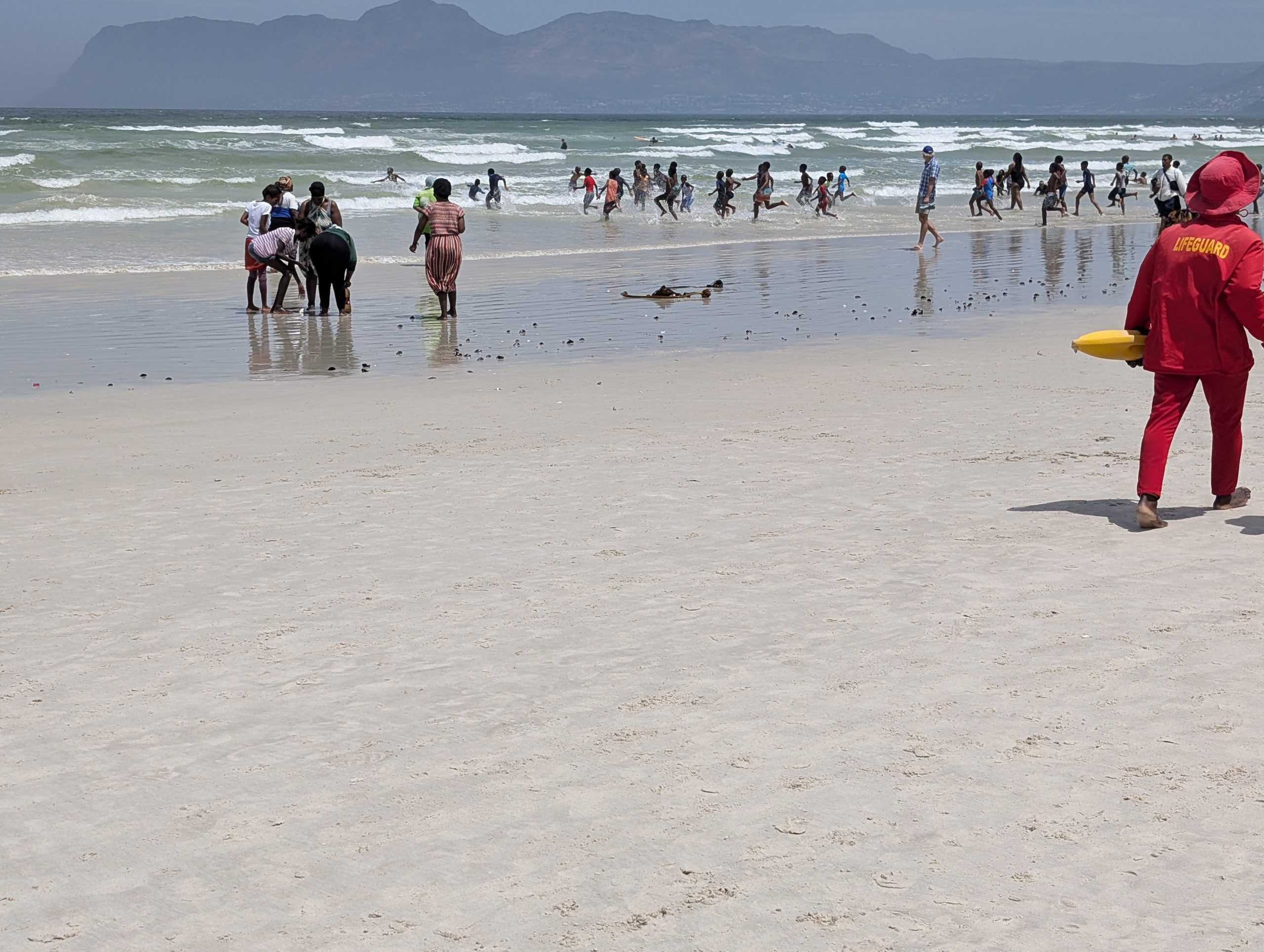 Am Nachmittag sind wir nach Kapstadt nach Muizenberg. Dort sind die alten bunten Badehäuser. Auf dem Weg dorthin haben wir schon Mal den berühmten Tafelberg gesehen, der allerdings sehr im Dunst war. In Muizenberg waren alle Parkplätze belegt. Eine Aufsicht gab uns trotzdem noch einen kleinen Platz, er war sehr nett. Auf den Weg zu den Badehäusern war ein Riesenschwimmbad, wo vor allem die Kinder Spaß hatten. Man brauchte nicht mal Eintritt bezahlen. Ich ging dann alleine zum Strand mit diesen Badehäusern. Die waren so schön. Das Meer hatte schöne Wellen, wo vor allem Surfer auf die Kosten kamen. Dann sind eine Meute Kinder angerannt kommen und rein in die Wellen gestürzt.Dann sind wir noch an die Promenade. Dort haben wir beide jeder ein Soft Eis gegessen und in der ältesten Surfschule ein Kaffee getrunken. Es war ein sehr schöner Tag. Nun ging es zurück nach Stellenbosch. Dort haben wir in einem beliebten Steakhouse zu Abend gegessen.