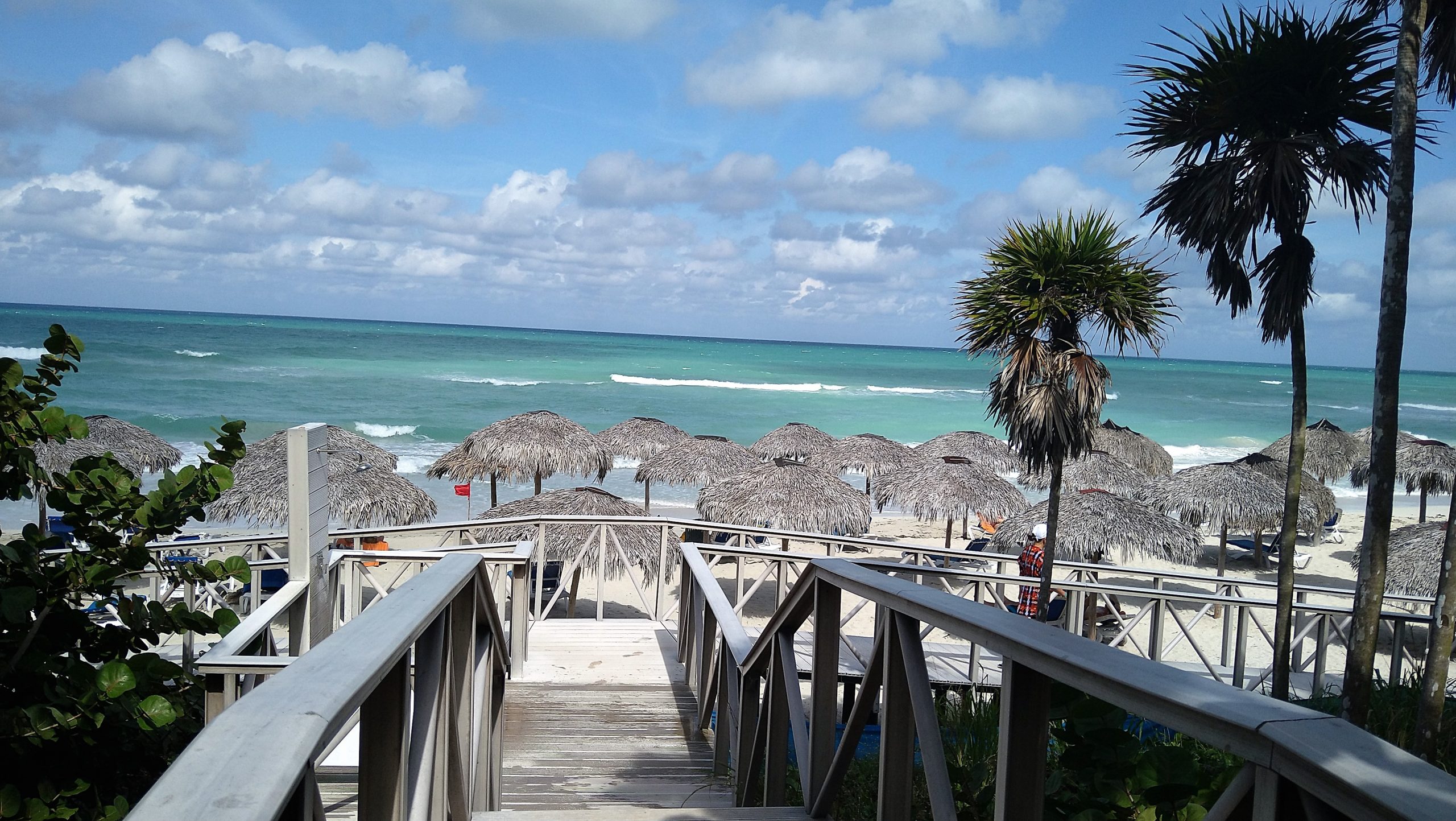 Nun endlich komme ich Mal wieder dazu, am Blog zu schreiben. Das kann man an ja gar niemanden sagen, man ist im Urlaub und hat keine Zeit. 🤪Aber man will ja was erleben und das haben wir wirklich. Aber schön der Reihe nach. Der Montag war gar nicht mein Tag. Man getraut es gar nicht zu erzählen. Als wir baden gehen wollten, waren so viele Wellen, vorallem ist die Brandung so schlimm. Wir halten uns auch immer gegenseitig fest. Die erste Welle überstanden puhhh…., die zweite Welle auch, aber die dritte hat mich dann umgehauen, sämtliche 🌊 über mich und ich fing an mit schlucken und kam einfach nicht mehr hoch. Ich hätte meine 2 Rettungsschwimmer Hanna und Philipp gebraucht, die waren aber nicht da. Norbert war auch nicht in der Lage, mir zu helfen, aber ein anderes Pärchen kam uns schnell zu Hilfe. Es gibt noch hilfsbereite Menschen. Wir haben das baden an diesem Tag sein gelassen. Ich war psychisch wieder etwas down, das Meer bedeutet uns alles und wir kommen nicht rein.🤨 Abends sind wir wieder auf Cocktail Jagd, erst an der Poolbar. Die beiden, die die Poolbar bedienen, sind auch unsere Betreuer im Speisesaal. Man kennt sich nun schon und es gibt Smalltalk. Dann sind wir auf die Dachterrasse, ich wollte noch einen Kaffee trinken, doch das Cafe hatte schon zu, da bin ich die 3 Treppen rein und wollte mir einen Tequila Sunrise holen. Doch beim Hochgehen ging die Schiebetür zu schnell zu und quetschte mich ein und ich konnte mich nicht mehr auffangen und stürzte mit Glas. Die Kanadier und eine Frau vom Personal stellte mich Ruck zuck wieder auf die Beine. Alle Barkeeper waren besorgt um mich, brachten gleich wieder einen Tequila Sunrise um die Ecke, der nächste verpflasterte mich. Ich werde jeden Tag nun nach meinem Befinden gefragt. Nun kam doch nach diesem Tag doch wieder ein Neuer. Zuerst haben wir für den Donnerstag eine Katamaran Fahrt zu den Cajo Blanco gebucht. Ich habe das im Reiseführer gelesen, soll ein absolutes Muss sein. Wir lassen uns überraschen. Dann sind wir mit einem kleinen Zug durch die gesamte Anlage, da haben wir erst gemerkt, wie groß die ist, zu einem kleinen Einkaufszentrum, das Plaza Americana. Dort haben wir noch ein paar Souvenirs gekauft und Norbert ein paar dünne kurze Hosen. Es waren kleinere Bars und Cafés. Da hat eine kubanische Band sehr schöne Musik gemacht und wir haben noch jeder einen Cocktail getrunken und sind dann wieder zurück gefahren. Ich bin noch Mittagessen gegangen und habe mir anschließend eine schöne Massage gegönnt. Norbert hatte einen anderen Tag den Termin. Gemeinsam sind wir noch baden gegangen. Es war heute nicht mehr so schlimm, konnten aber trotzdem noch mit den Wellen spielen. Am Mittwoch habe ich endlich ein paar Karten geschrieben und bin erstmal alleine zum Strand und Norbert hatte seine Massage. Ansonsten läuft der Urlaub im All inklusive Hotel jeden Tag gleich ab. Morgen ist nun die Katamaran Fahrt mit schnorcheln und schwimmen mit Delfinen. Wir können alle gespannt sein.