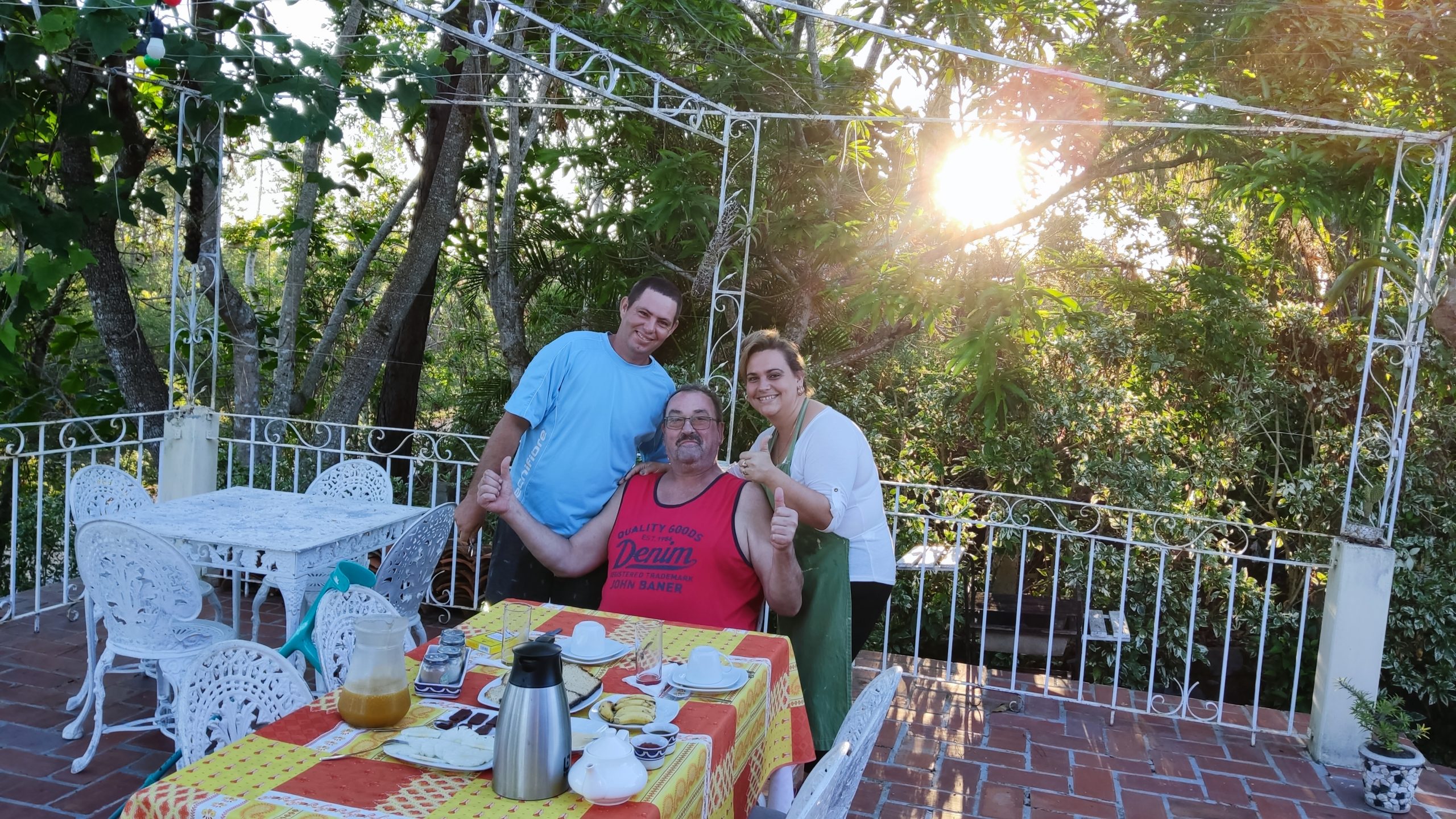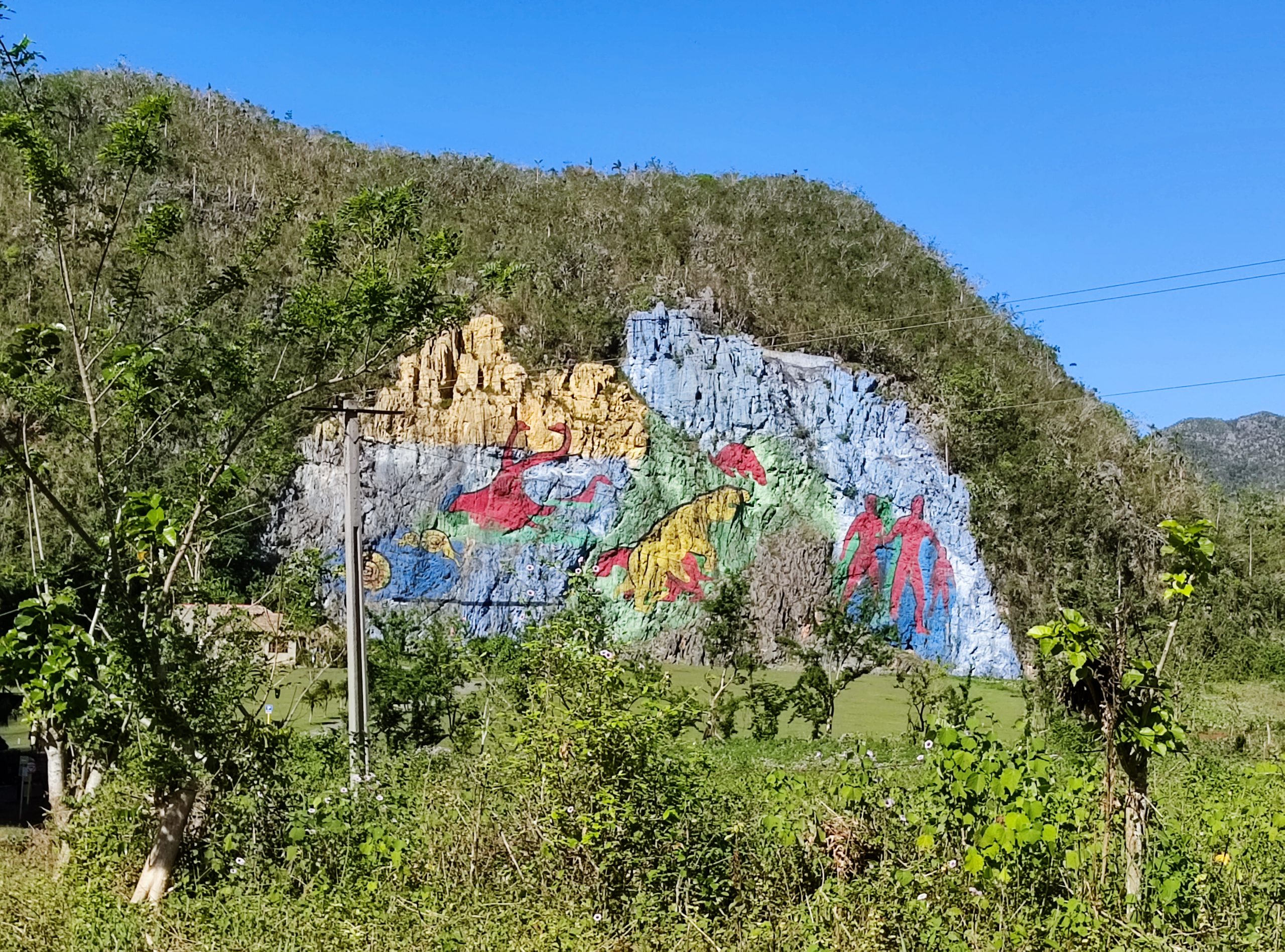 Heute sind wir gegen 10 Uhr in Havanna gestartet. Wir haben uns ziemlich schnell an den Verkehr in Havanna gewöhnt. Unser Ziel ist der Westen der Insel. In Havanna waren die Straßen schlecht, aber außerhalb wurde es immer schlimmer. Die Schlaglöcher waren zum Teil 50 cm tief. Auf der Autobahn trieb sich alles rum. Die Menschen liefen, versuchten per Anhalter vorwärts zu kommen, manche versuchten Geld zu tauschen. Sie versuchen an harte Währung zu kommen, bieten einen unheimlichen Kurs, man weiß aber nicht, ob das Geld auch echt ist. Jeder versucht an harte Währung zu kommen, in der Hoffnung, das Land zu verlassen. Sie leben in ärmlichen Verhältnissen. Die nächsten Menschen standen mit Zwiebelzöpfen, dann fuhren Fahrradfahrer, Pferdegespanne, es liefen sämtliche Tiere. Es war total interessant. Auf einmal stoppte uns die Polizei. Hatten wir was falsch gemacht, sind wir zu schnell gefahren? Nichts von dem. Der Polizist überprüfte die Papiere, dass wir das Auto nicht geklaut haben und bat uns einen Mann mit nach Vinales zu nehmen. Als er sah, dass wir nicht begeistert waren, da gab der Polizist uns seinen Ausweis, den sollten wir ihm dann in Vinales zurück geben. Also nahmen wir ihn mit, zwar mit gemischten Gefühlen, es war dann doch ein angenehmes Gespräch zustande gekommen. Viele Kubaner können sich kein Auto leisten. Er hat seine Mama und Papa besucht und nun muss er wieder zur Arbeit auf eine Kaffeeplantage. Je weiter wir nach Vinales kamen, umso mehr sah man die Verwüstungen, die der Hurrikan vor 4 Wochen hinterlassen hatte. Unseren Mitfahrer fuhren wir zu der Tabakplantage, wo er arbeitete. Sein Vorarbeiter kümmerte sich um uns und zeigte, wie man Zigarren dreht. Man stelle uns auch ein Getränk hin. Von unserem Mitfahrer sah man nichts mehr. Gut, wir kauften 2 Zigarren, doch als wir die Getränke noch bezahlen sollten, fand ich das frech, immerhin haben wir den Arbeiter bis hierher gefahren. Wir fuhren zurück nach Vinales und holten an einem ATM Geld und fuhren zu unserer Unterkunft, sehr schön gelegen auf einem Hang mit Blick zu den Bergen, die Mogotes heißen, sehr schön gepflegt und 1 Swimmingpool, den ich auch gleich probierte. Am Abend verwöhnte man uns mit einem sehr leckeren Abendessen. Norbert hatte Fisch und ich Hühnchen. Pünktlich um 9 Uhr war unser Guide da. Er sah gleich, dass es mit der Wanderung nichts wird. Wir einigten uns aber schnell, was wir uns anschauen wollen und wir fuhren mit dem Auto. Zuerst geht es zu der Höhle Indio. Unterwegs unterhalten wir uns und es stellte sich heraus, dass er in den 80ern auch in Thüringen war und hat in Ilmenau studiert, er kannte auch Aue und Bad Schleema in Sachsen. Wir erzählten ihm, was uns gestern passiert ist. Da sagte er uns, dass das falsche Polizisten waren, sie Schlepper sind, um Touristen zu den Tabakplantagen locken. Die auch in unserer Casa waren, ist dasselbe passiert. Naja, ist nun passiert. Der Besuch in der Höhle war fantastisch. Wir sind mit einem Boot durch die Höhle geschippert worden. Danach sind wir in eine andere Richtung gefahren, herrlich durch die herrliche Bergwelt Vinales. Dabei kamen wir an einem Berg vorbei, wo ein Maler mit Pinsel den Berg eine Zeichnung versehen hat. Weiter ging es zu einem Kaffeebauern. Dort war der Hurrikan extrem schlimm und hat manche Existenz oder Hausteile verwüstet. Sie bauen das immer wieder auf. Eine andere Wahl haben sie auch nicht. Der Kaffeebauer hat eine sehr gute Sorte. Geerntet wird alles mit der Hand, dann in der Sonne getrocknet. Dann wird der äußere Kern abgemacht und da kommen 2 Kerne, die Bohnen zum Vorschein. Auch diese müssen getrocknet werden und dann werden diese über Feuer ca. ½ Stunde geröstet. Sie dürfen aber nicht verbrennen. Diese Kaffeepflanzen auf Kuba wurden einst aus Brasilien mitgebracht und es ist Kaffee Arabica. Man servierte uns gleich ein Tässchen und gab uns Babybananen, die auch auf der Farm wachsen. Natürlich haben wir auch ein Gastgeschenk. Es war ein sehr schöner Tag und wir bedankten uns herzlich bei unserem Guide. Nachmittag hielten wir uns noch in Vinales auf. Es ist eine sehr schöne Stadt. Zum Schluss hatte unser Guide noch einen Hinweis, wo wir Abendbrot essen sollten und dieses Restaurant suchten wir auch auf, ziemlich weit oben auf dem Berg, das Paraiso hieß und es hatte eine traumhafte Aussicht auf die Mogotes. Es gab ein Menü mit Suppe, Salat, Süßkartoffeln, Reis, schwarzen Bohnen, Fisch, Hühnchen, Schwein und ein Expresso. Nun lassen wir diesen schönen Tag auf der Veranda ausklingen.